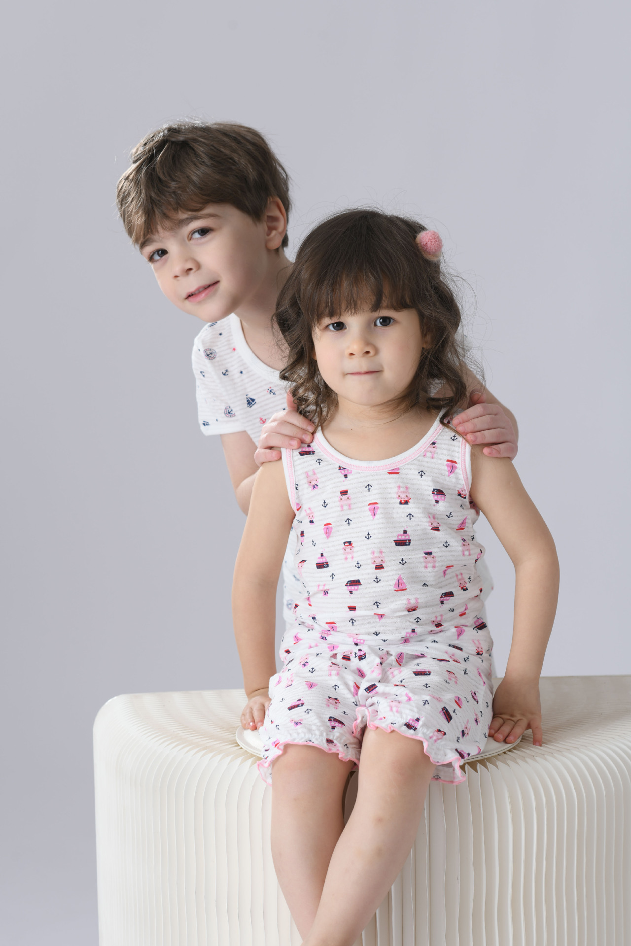 • 자카드 계단 블루 세일링 베어 반팔 (3 팩)