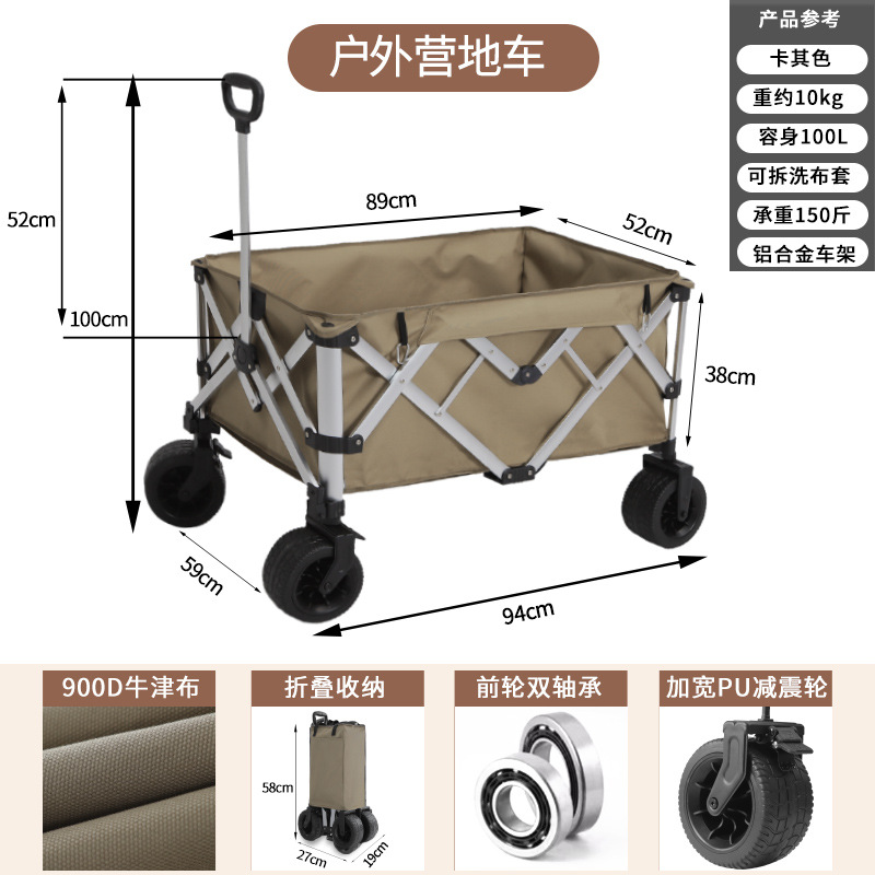 야외 캠핑 카트 캠핑 트레일러 핸드 푸시로드 대형 캠핑 카트 테이블 피크닉 접이식 휴대용 소형 트레일러스토어 가기