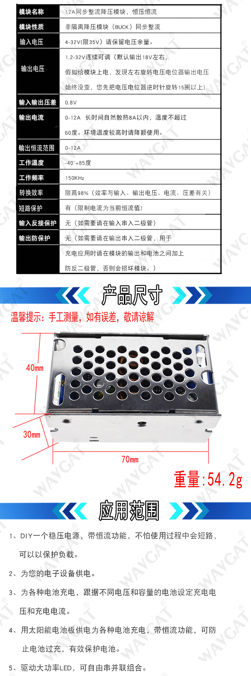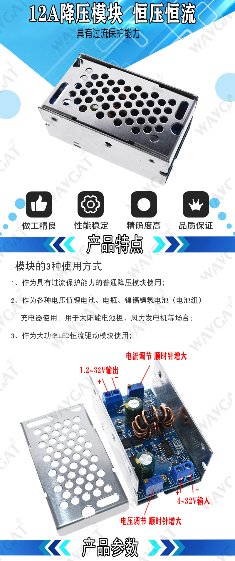 12A 강압 모듈 보드 정전압 정전류 모듈 DC-DC 태양 전지 패널 리튬 배터리 충전 LED 전원 공급 장치스토어 가기