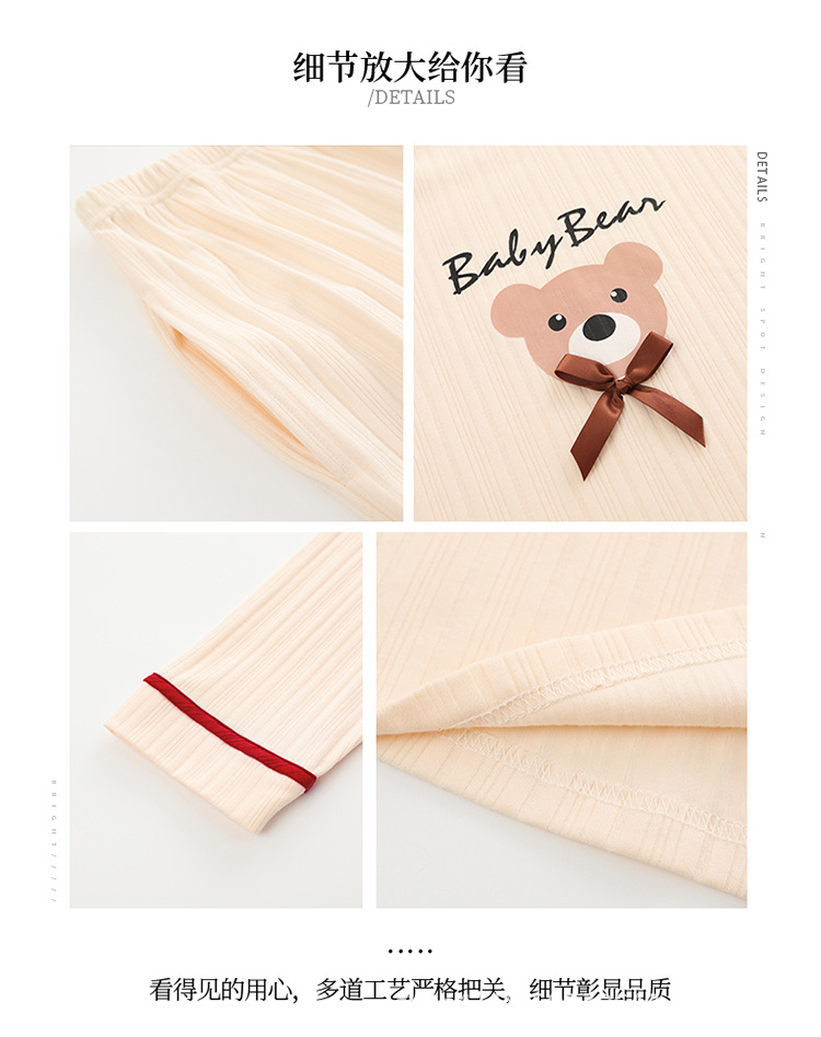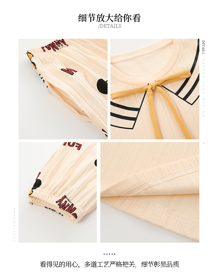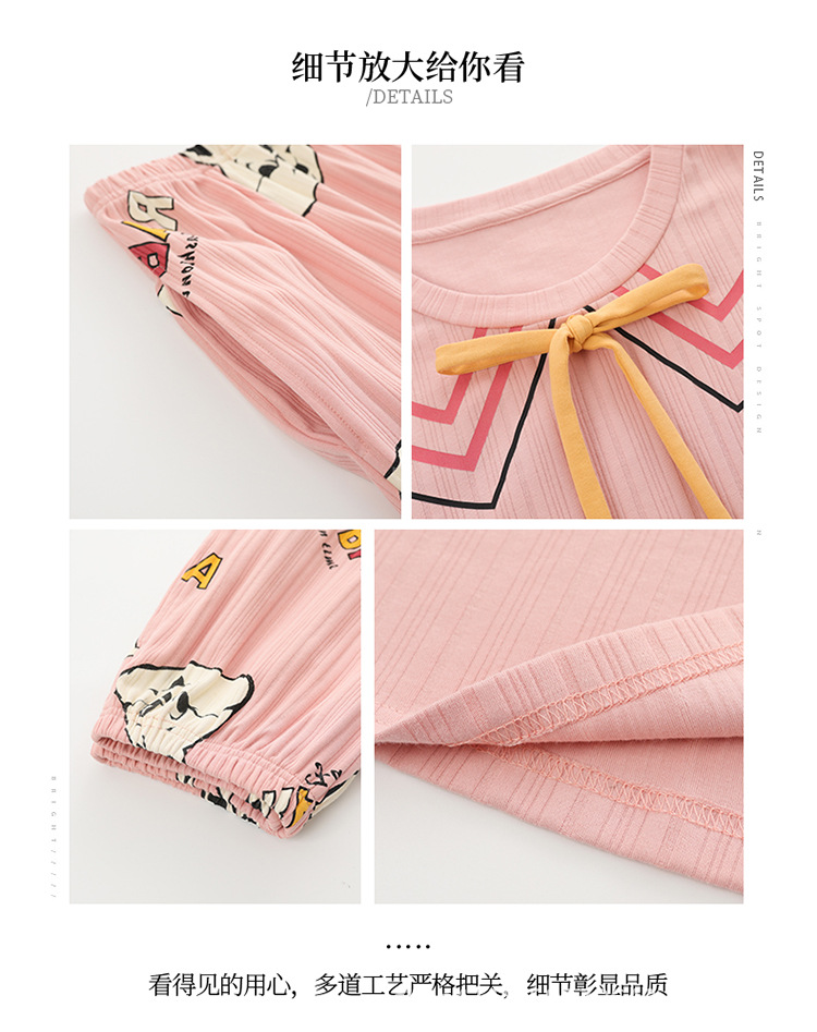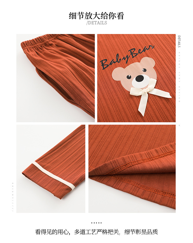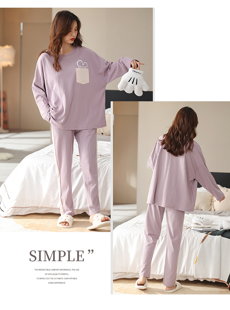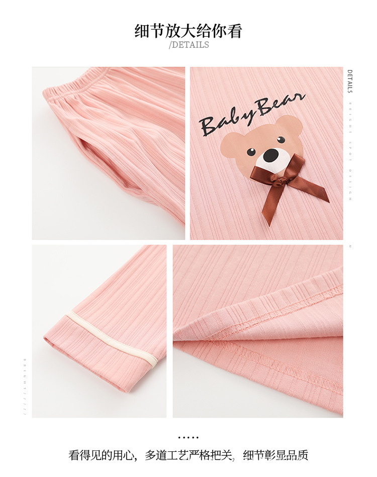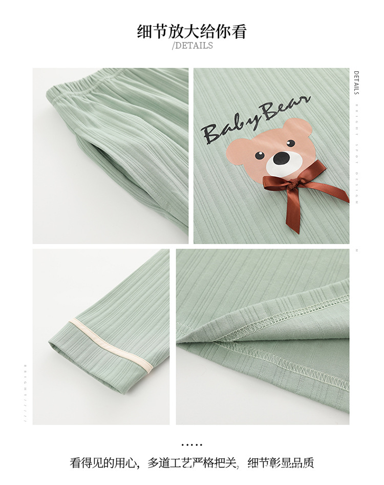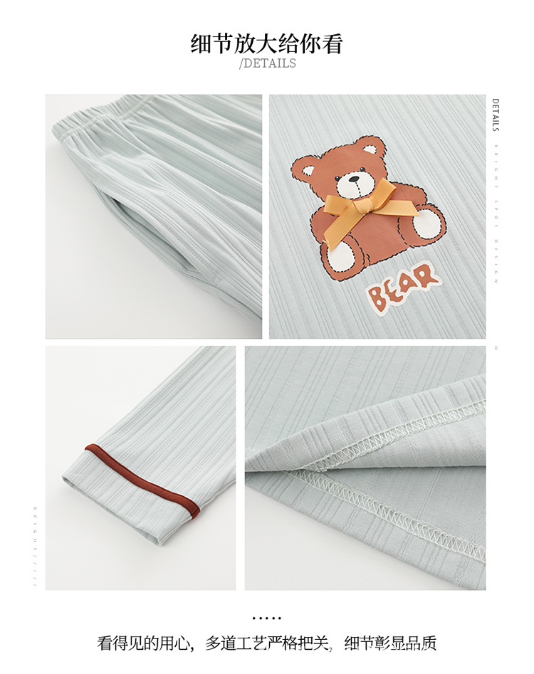 봄과 가을 잠옷 여성용 면 V-넥 긴팔 바지 세트 단색 곰 느슨한 플러스 사이즈 가정 의류 여성의 겉옷