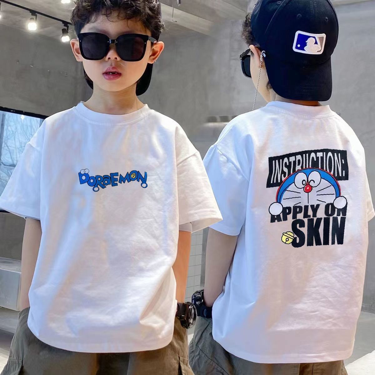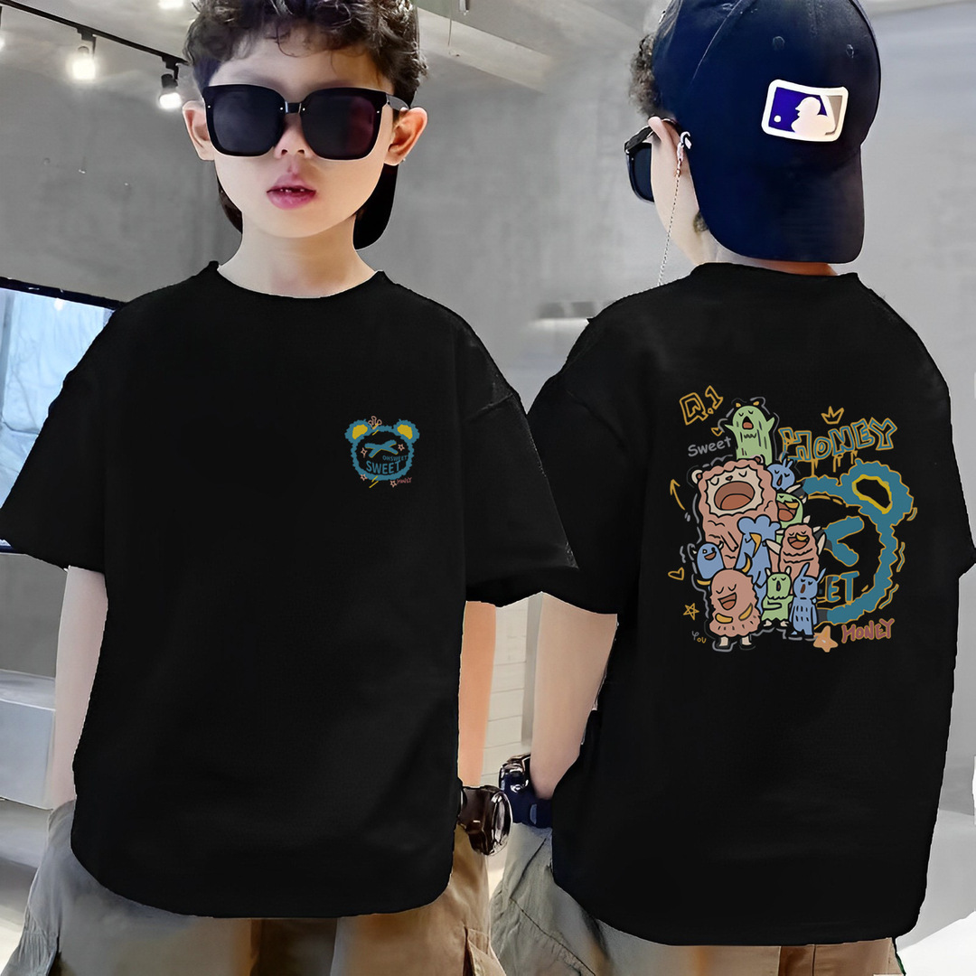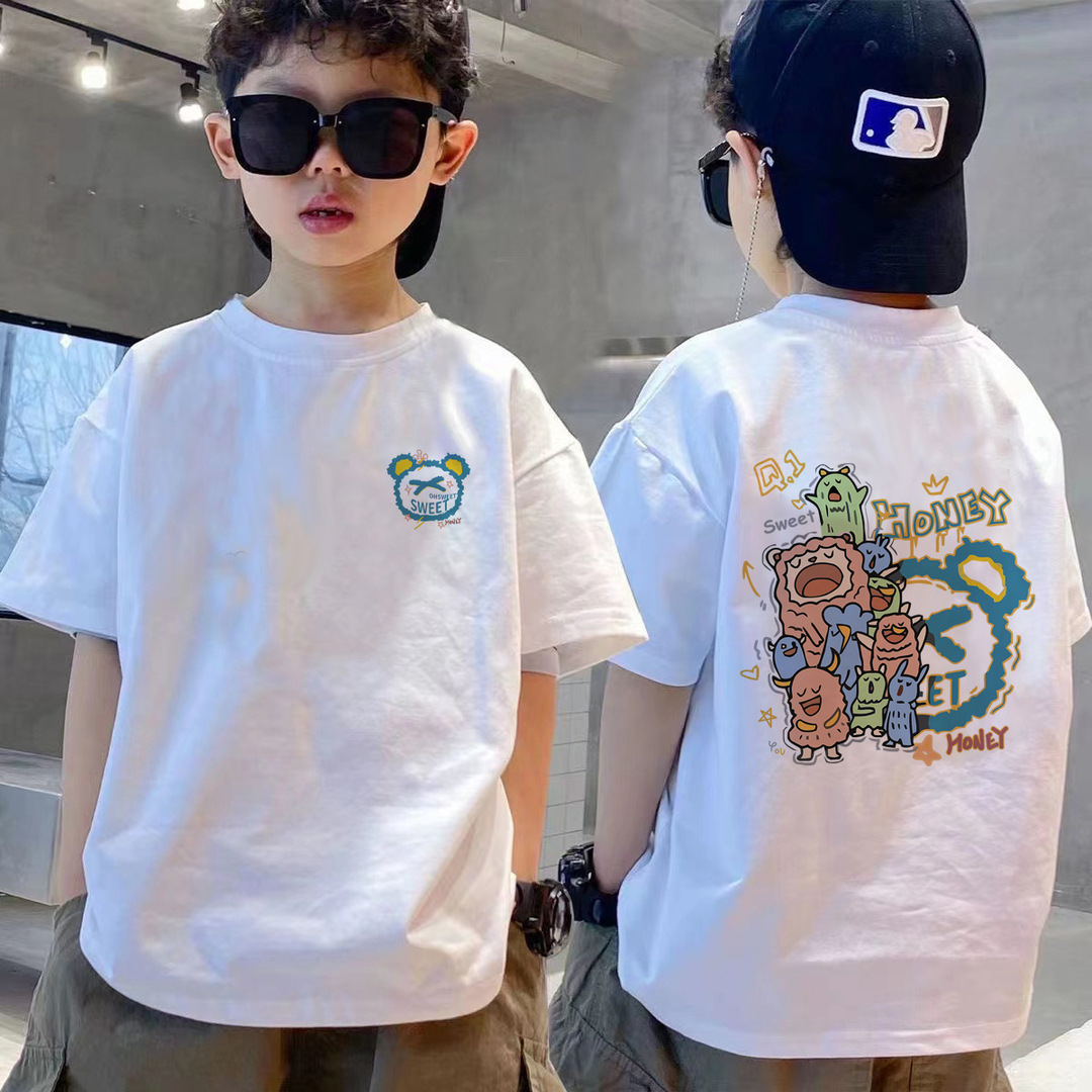 跨境纯棉男童短袖t恤新款夏季儿童男孩中大童夏装洋气卡通上衣潮