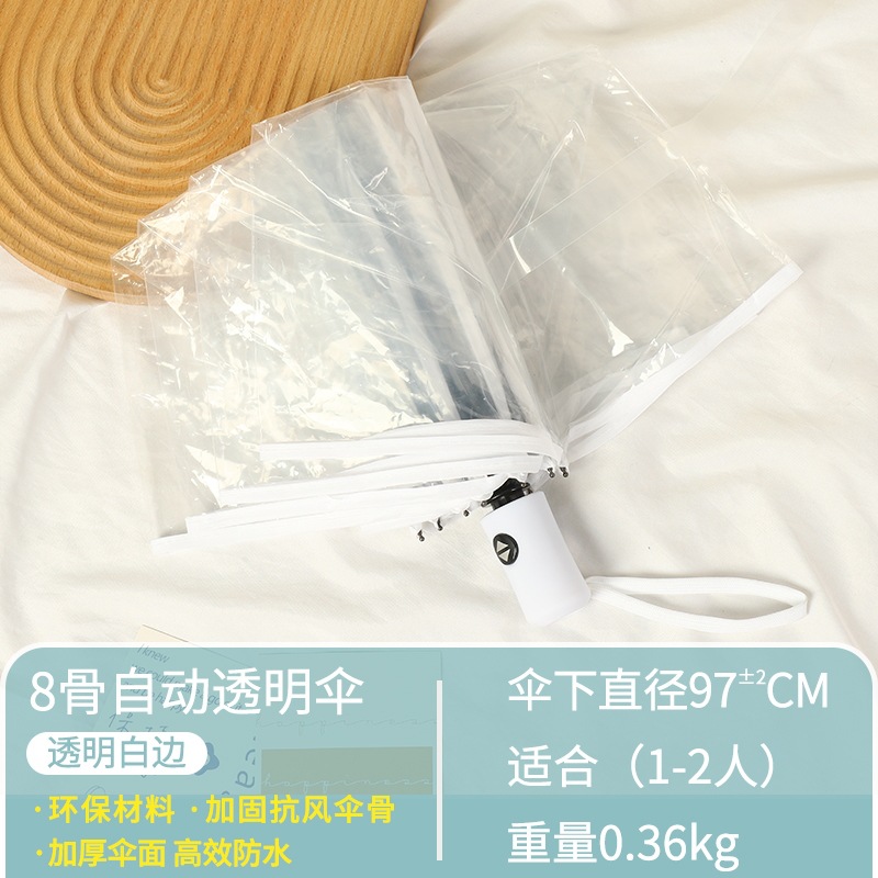 • 8 뼈 자동 투명 우산 "화이트 에지"