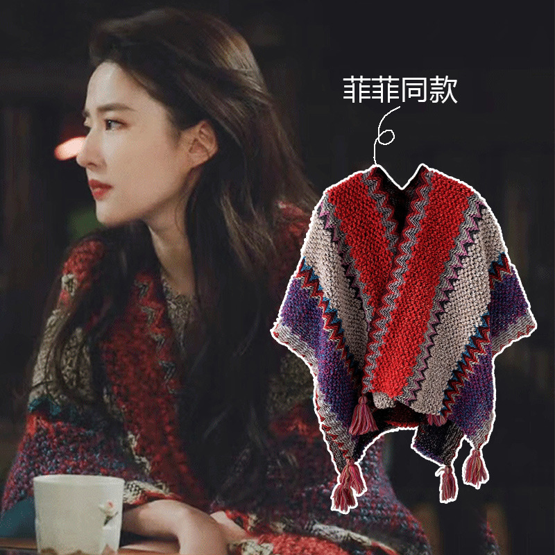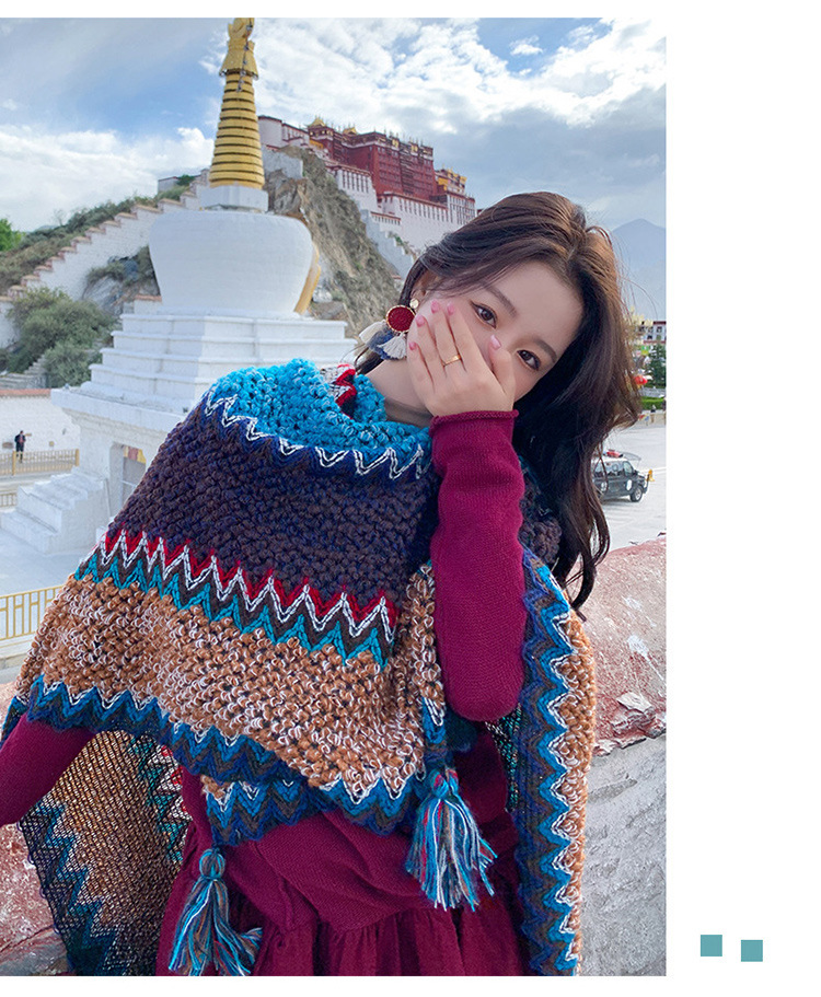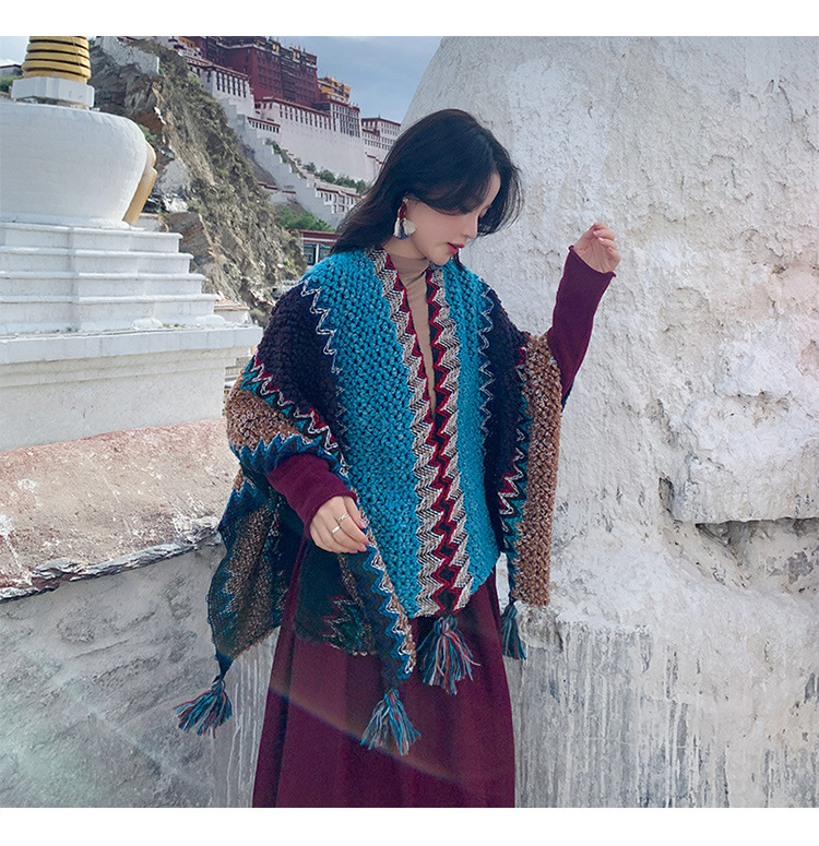에스닉 스타일 목도리 케이프 여성 Xu Hongdou 윈난 리장 여행 사진 케이프 두꺼운 패션 스타일스토어 가기