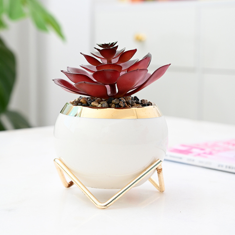 북유럽 다육 화분 인공 꽃 녹색 식물 선인장 철 세라믹 화분 용기 홈 오피스 장식