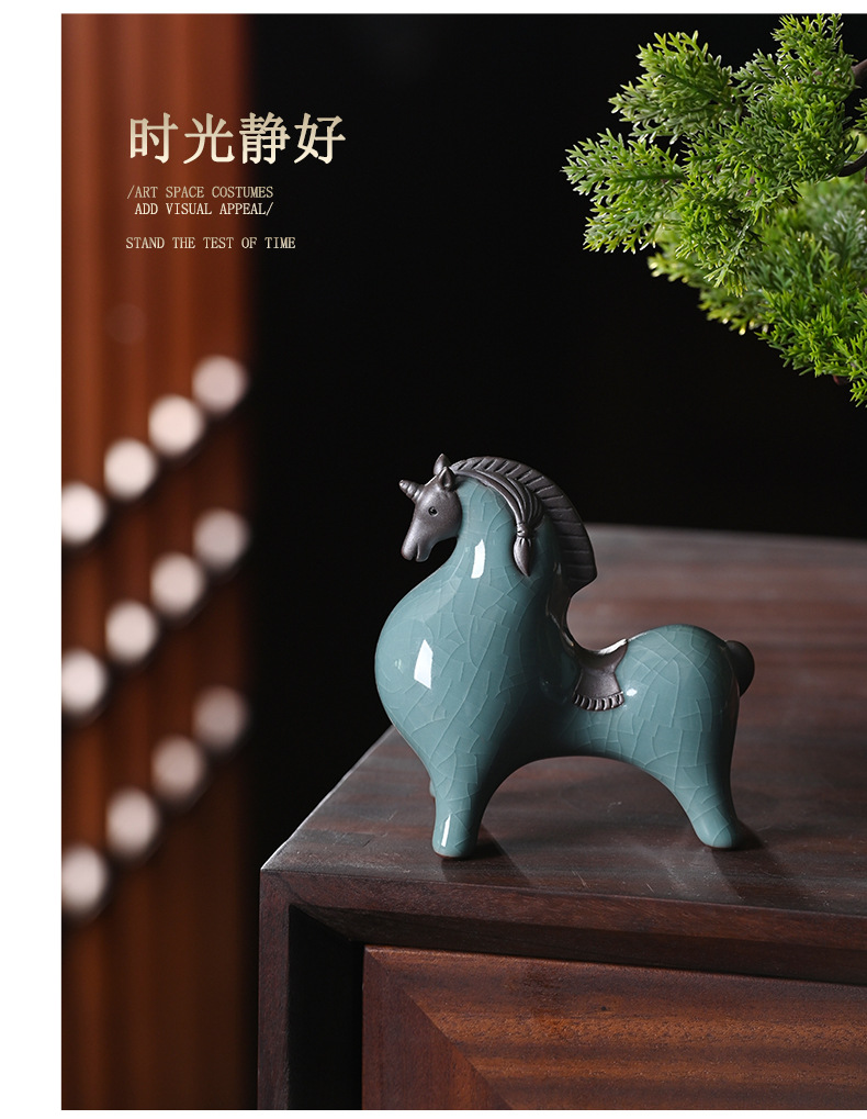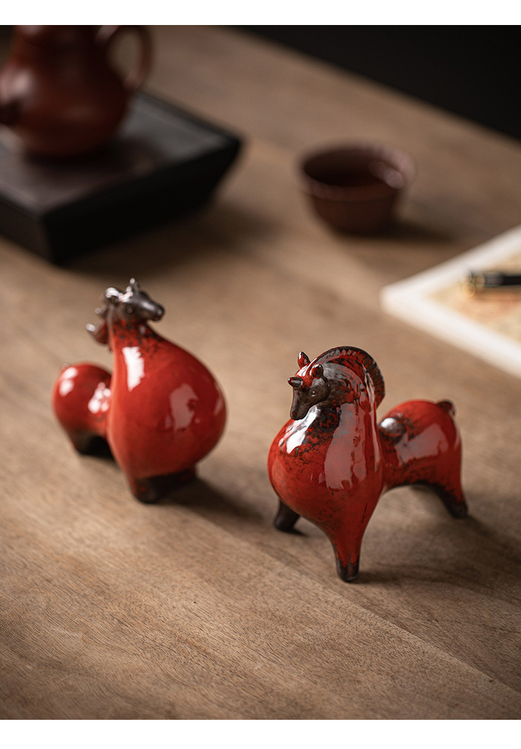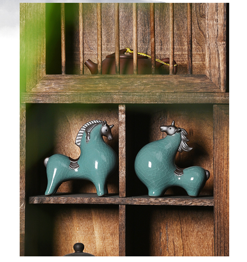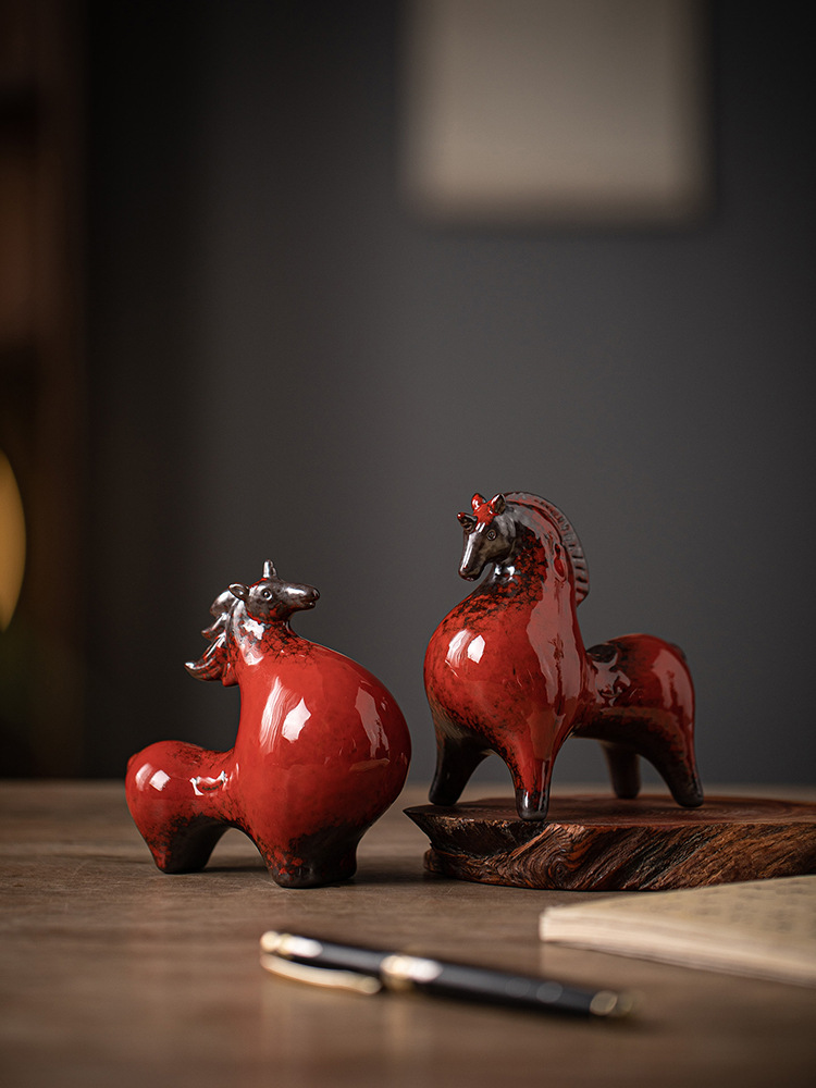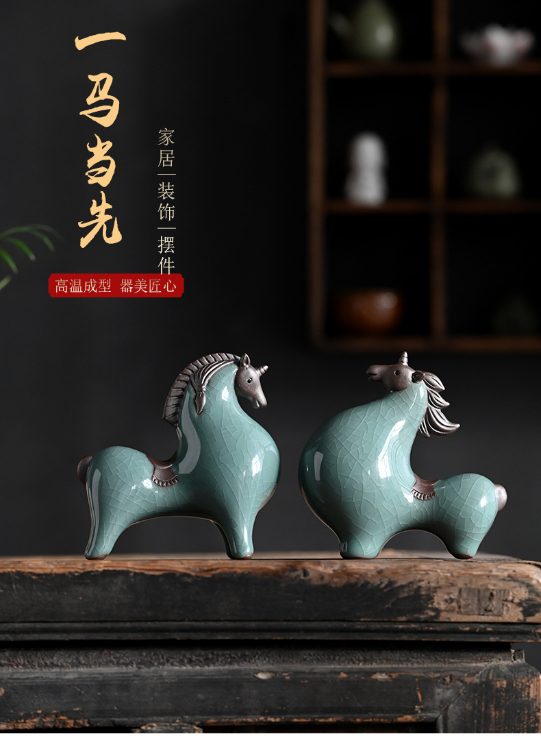세라믹 탱 말 장식 스몰 사이즈 행운의 거실 입구 와인 캐비닛 데스크탑 장식 책상 조디악 말 장식스토어 가기