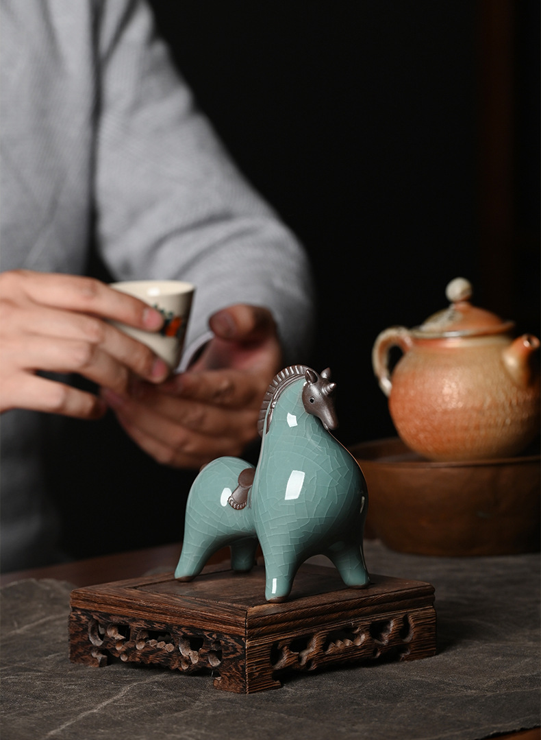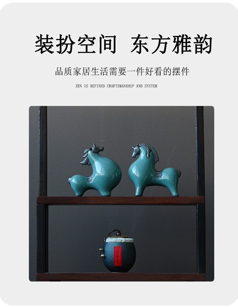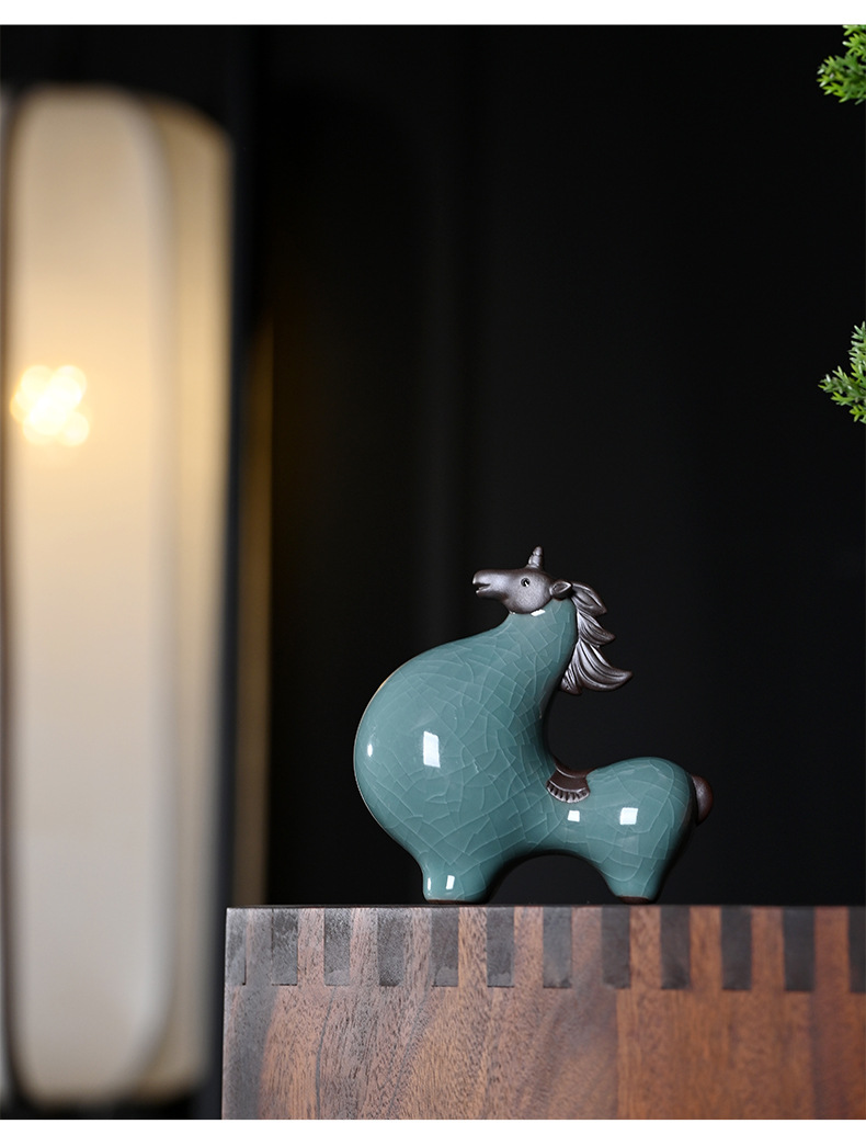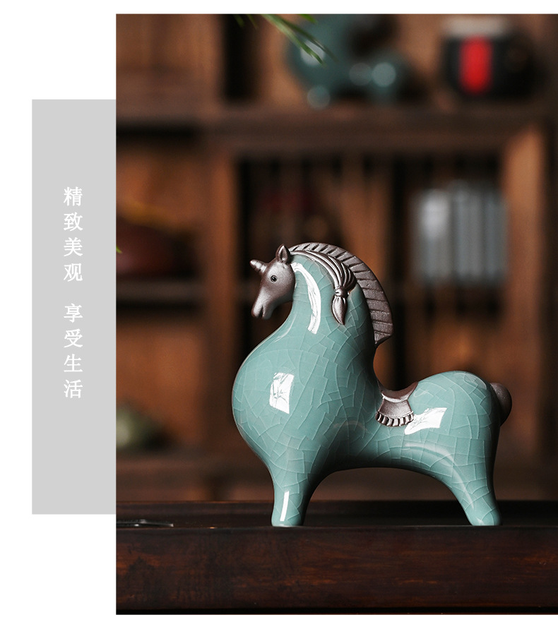 세라믹 탱 말 장식 스몰 사이즈 행운의 거실 입구 와인 캐비닛 데스크탑 장식 책상 조디악 말 장식스토어 가기