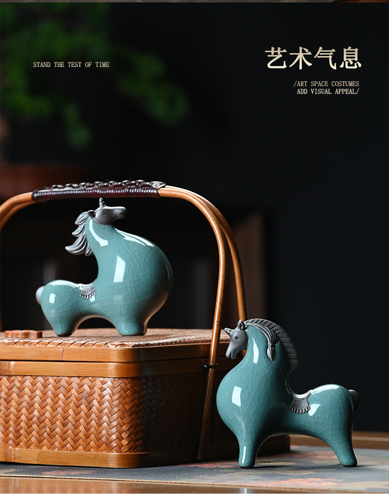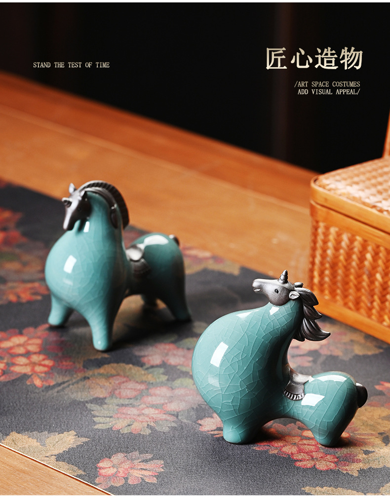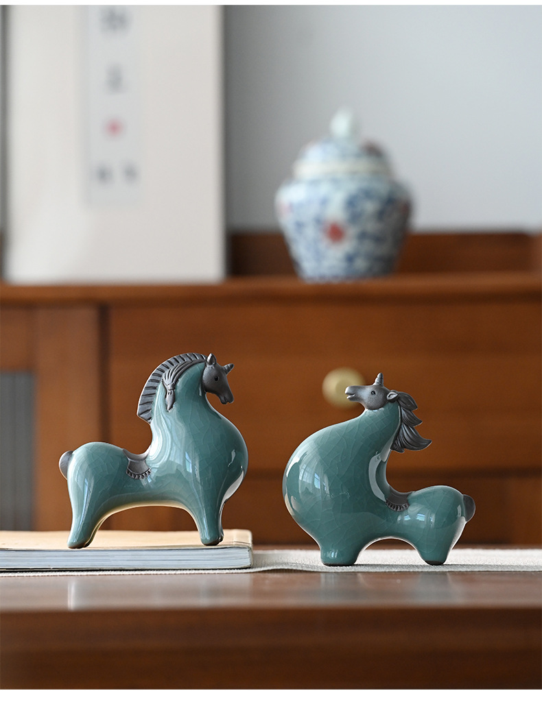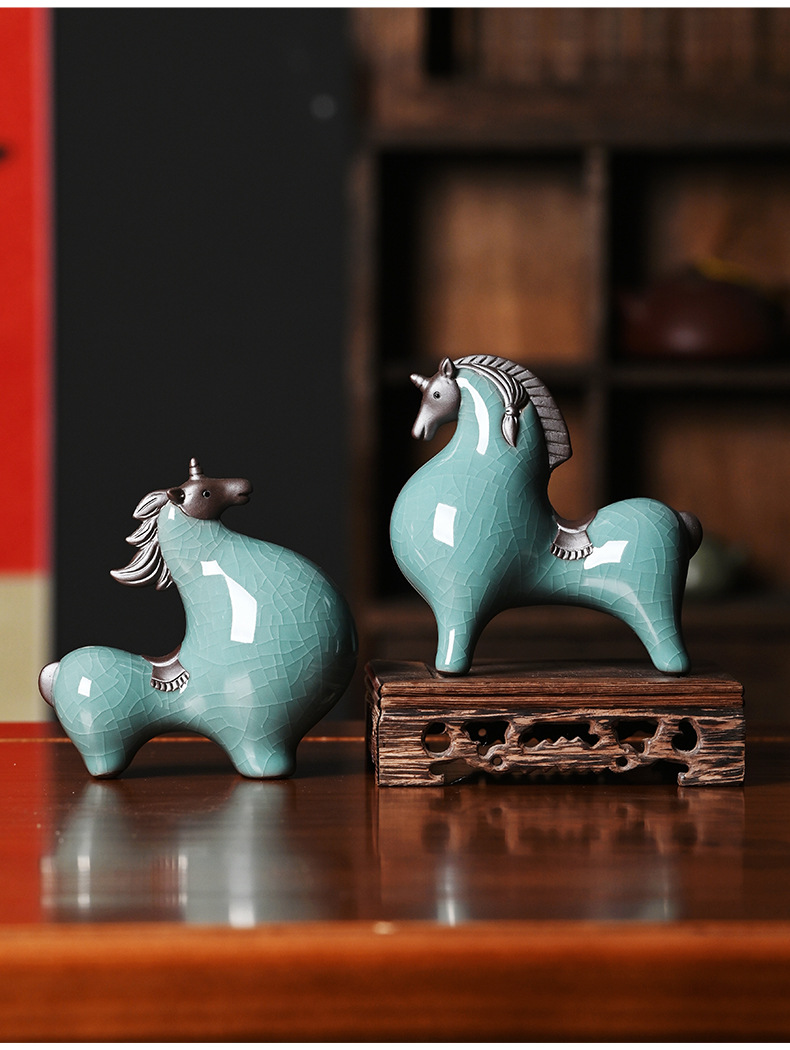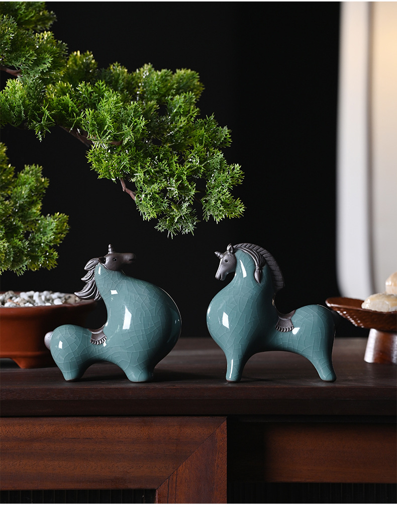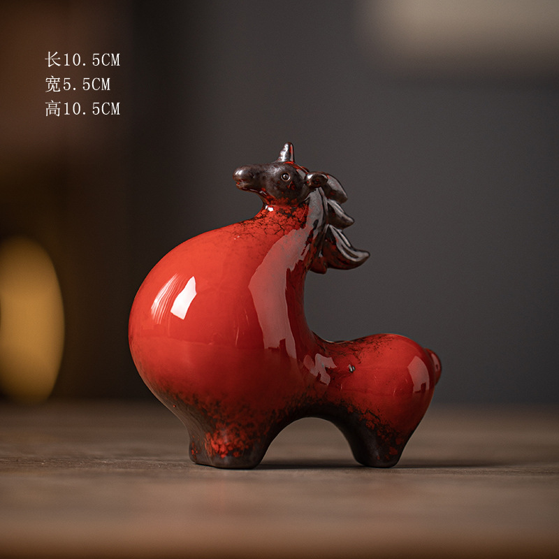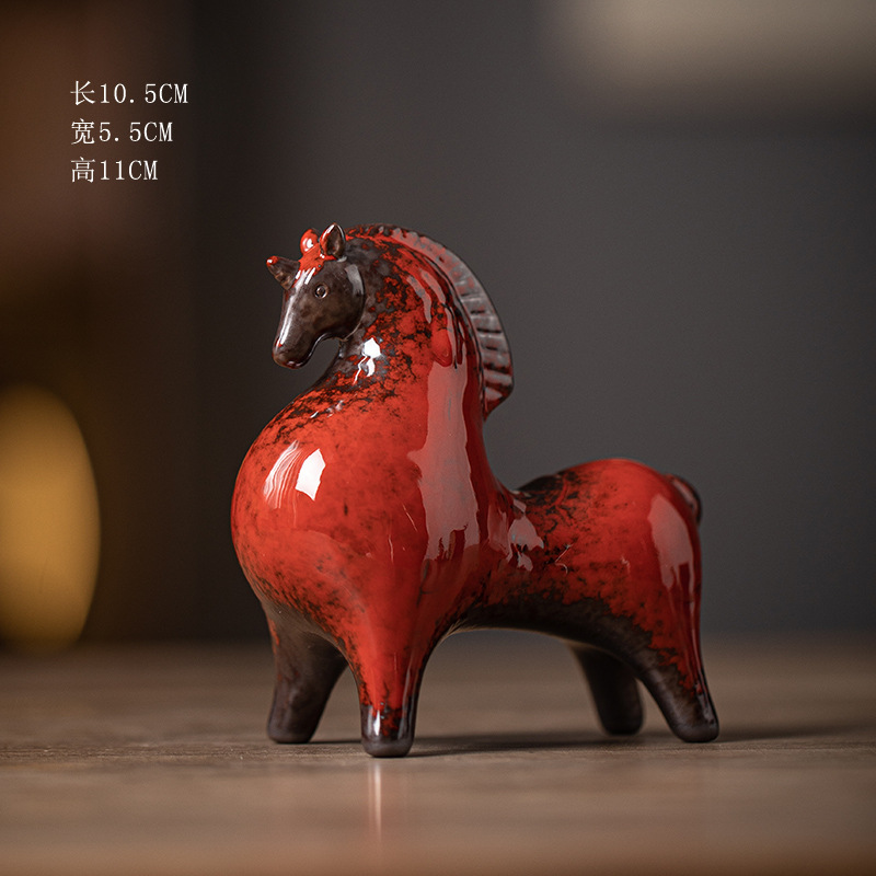 세라믹 탱 말 장식 스몰 사이즈 행운의 거실 입구 와인 캐비닛 데스크탑 장식 책상 조디악 말 장식