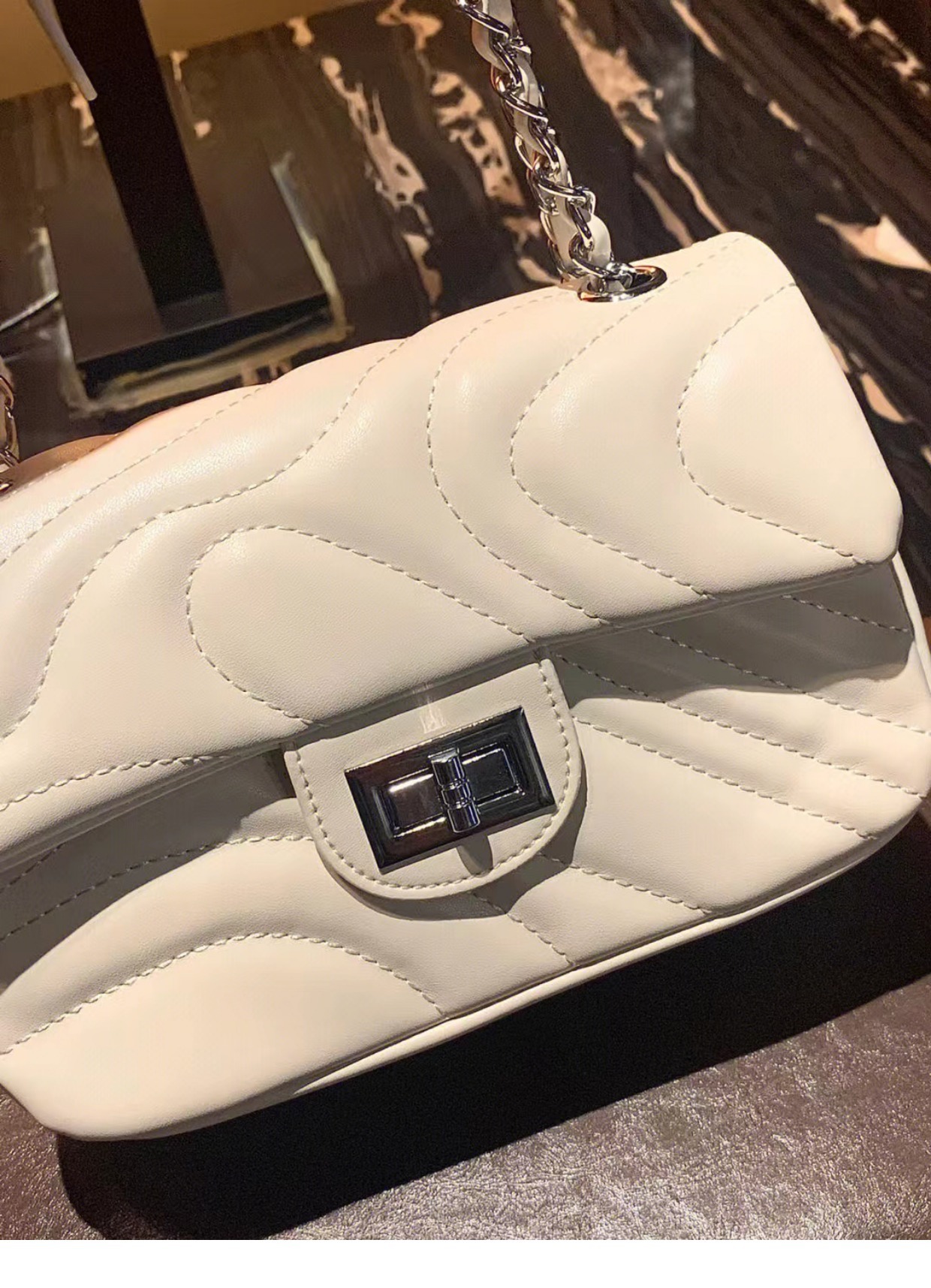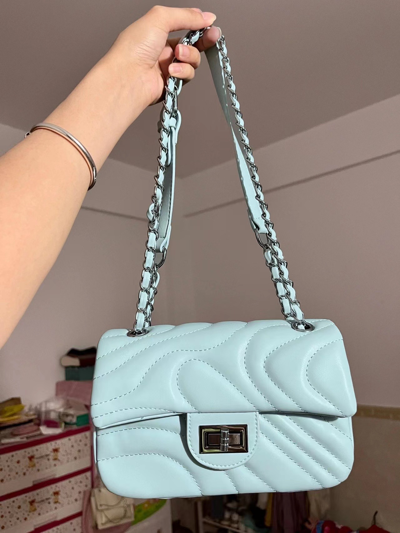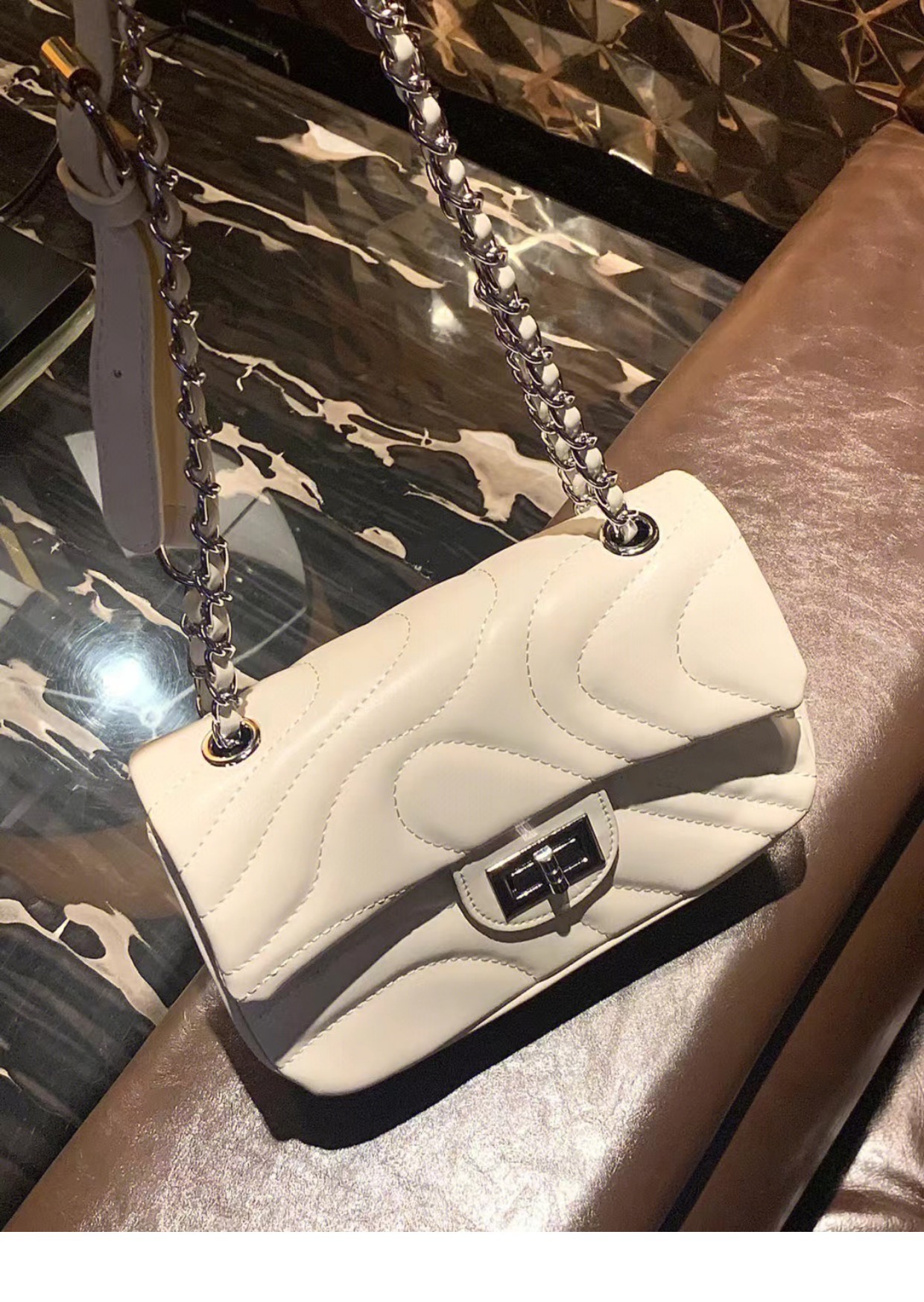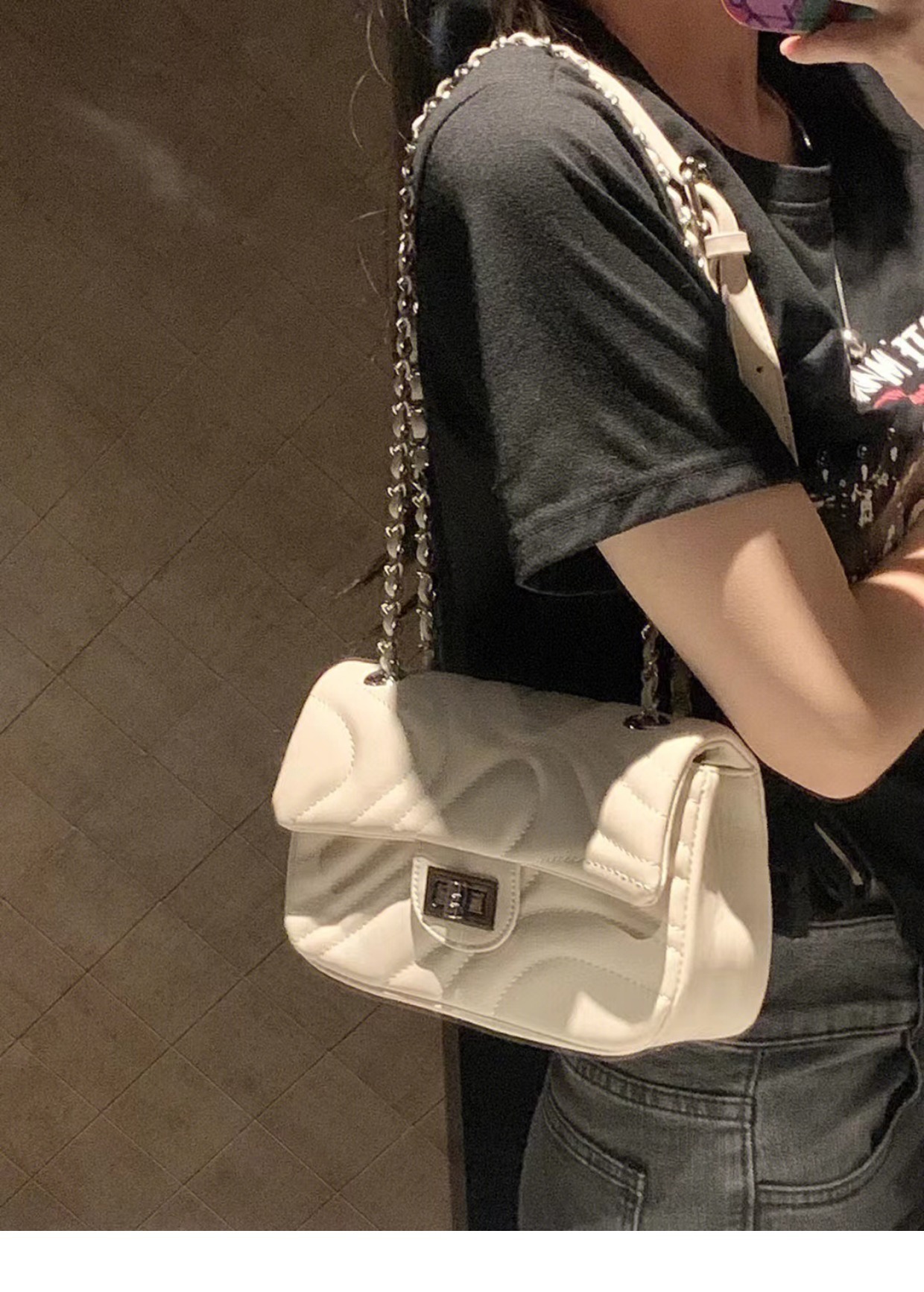 2025 봄 신상품, 산뜻한 자수 잠금장치 가방, 여성용 작은 향수풍 체인백, 패셔너블하고 다재다능한 숄더백 및 크로스백스토어 가기