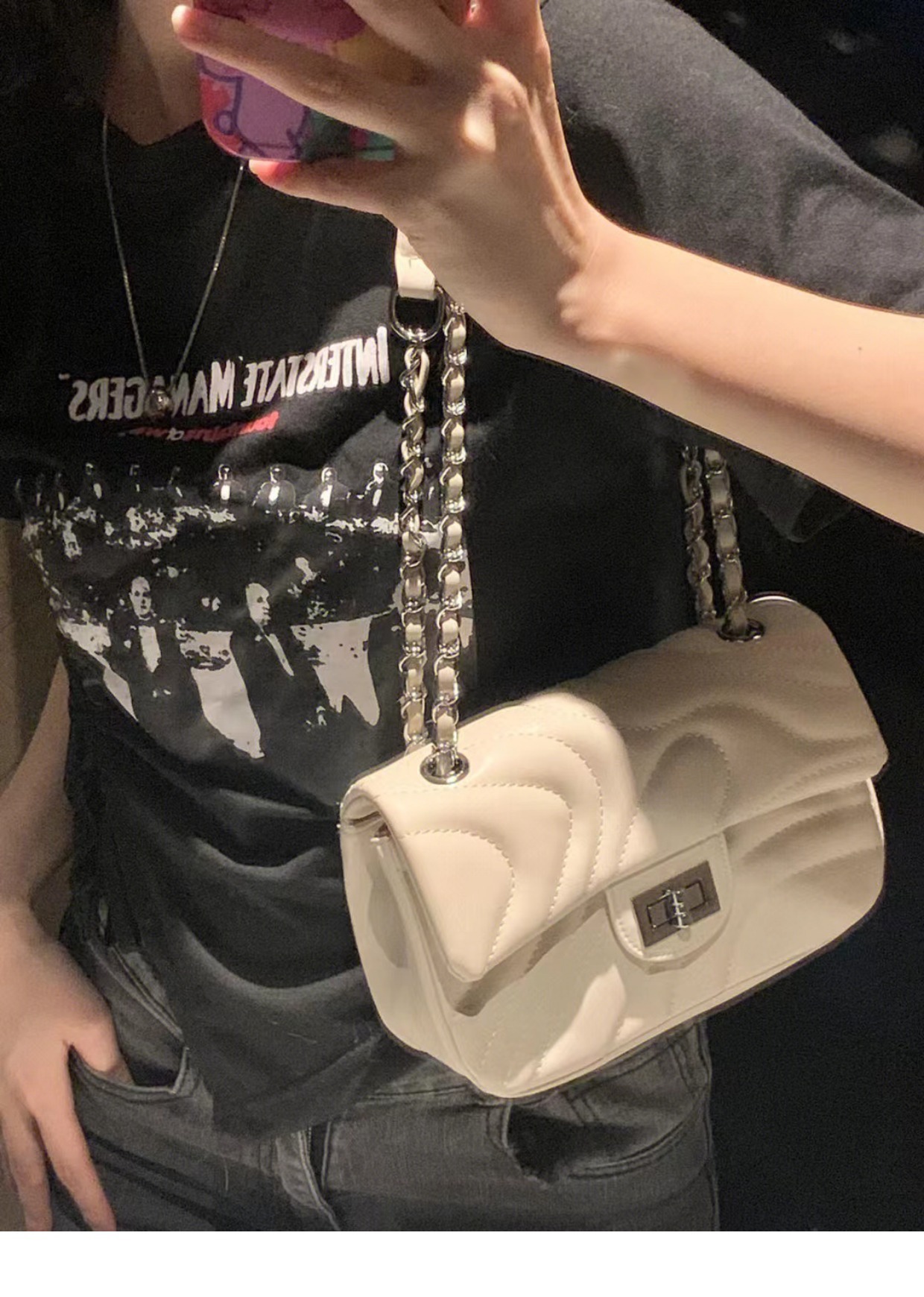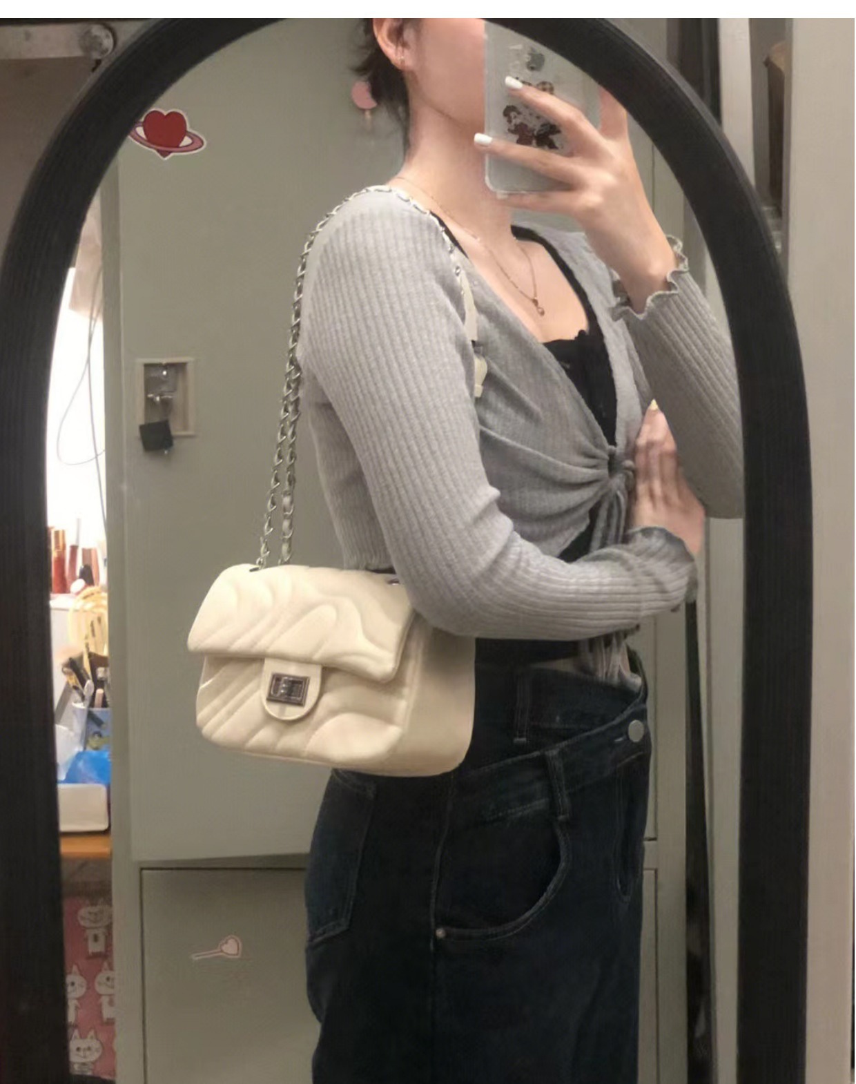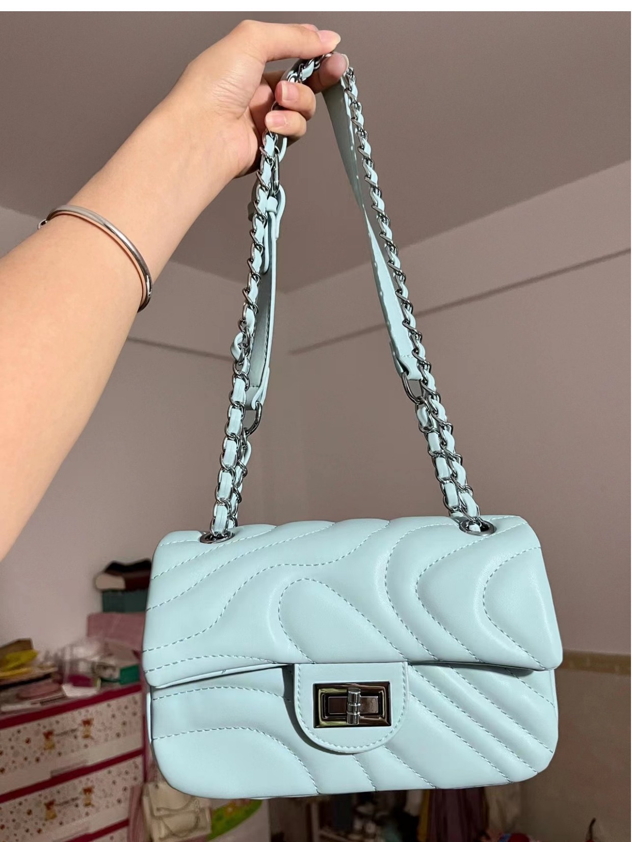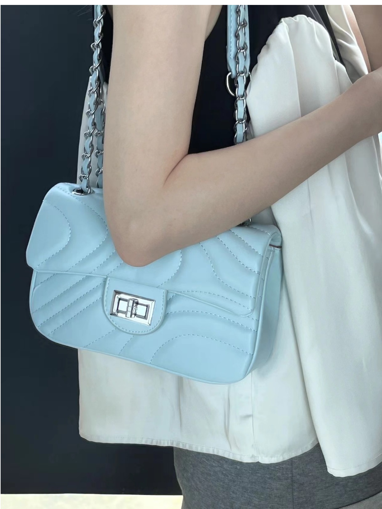 2025 봄 신상품, 산뜻한 자수 잠금장치 가방, 여성용 작은 향수풍 체인백, 패셔너블하고 다재다능한 숄더백 및 크로스백스토어 가기