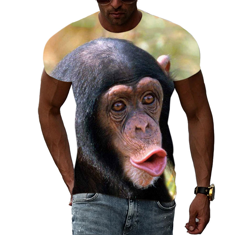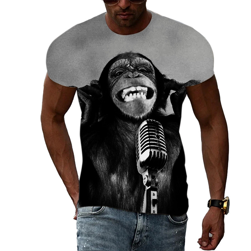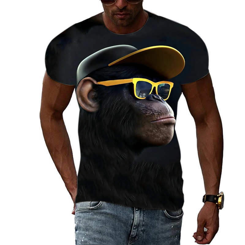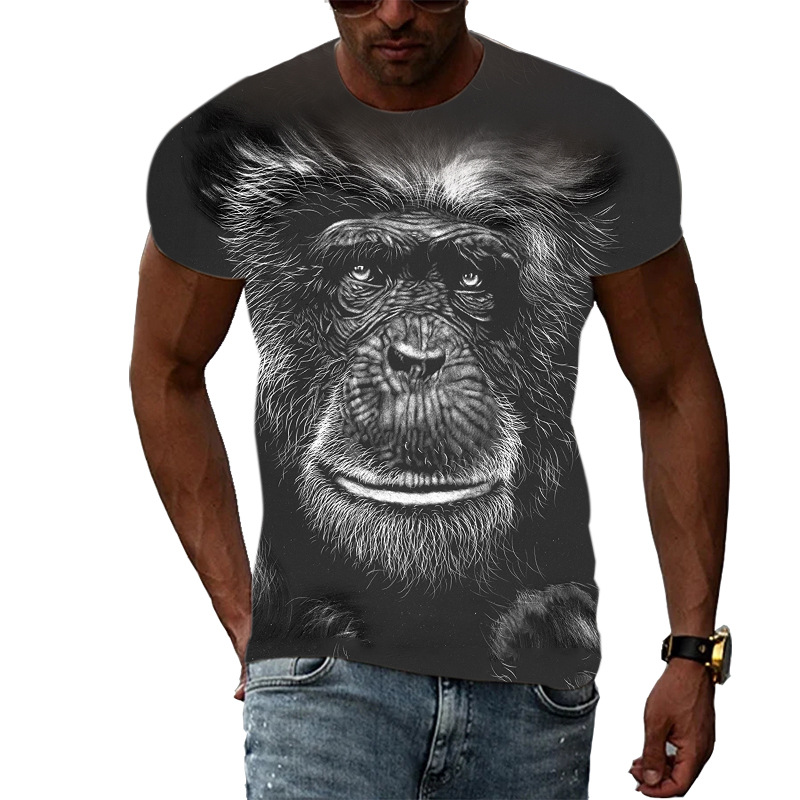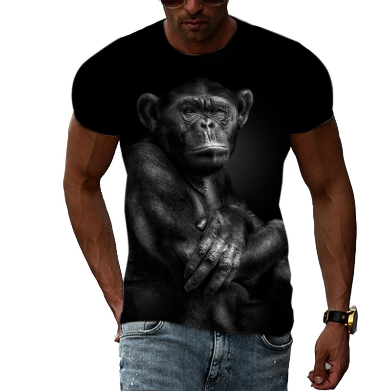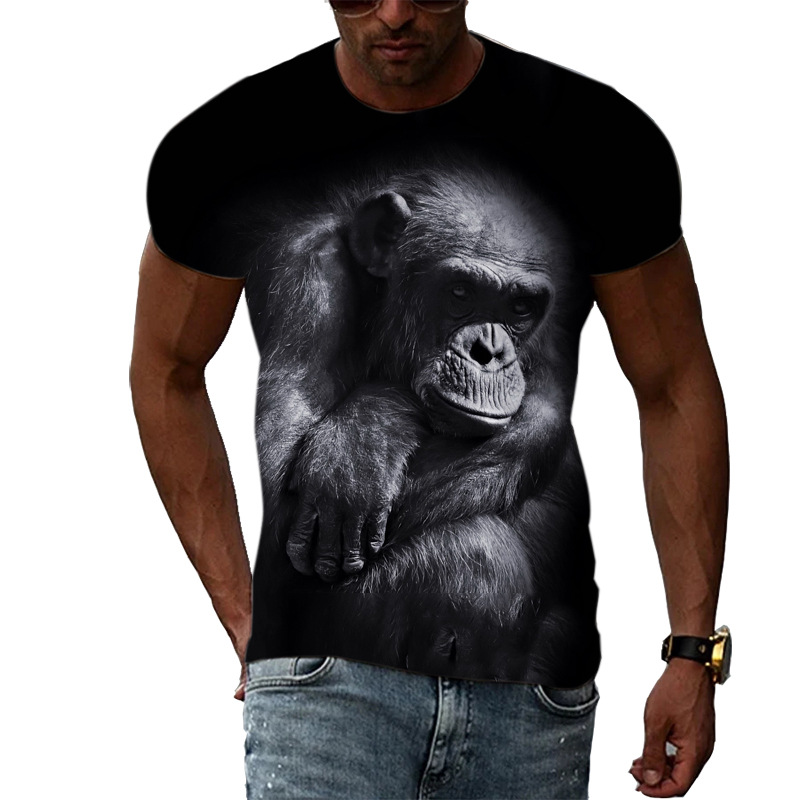 여름 국경 남성 인쇄 3D 고릴라 반팔 티셔츠 원피스 배송은 아동복에 사용할 수 있습니다.스토어 가기