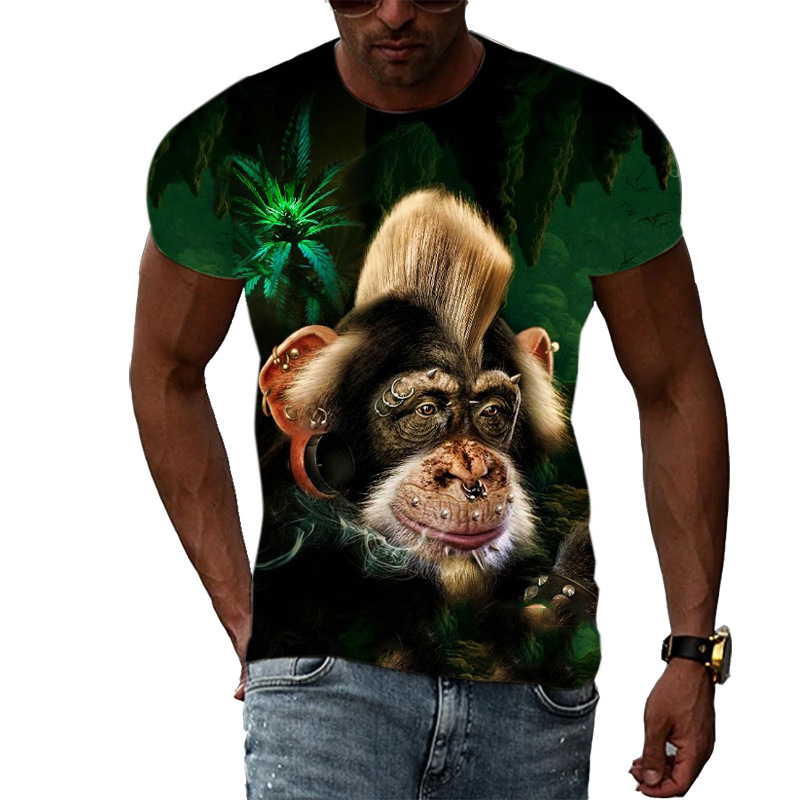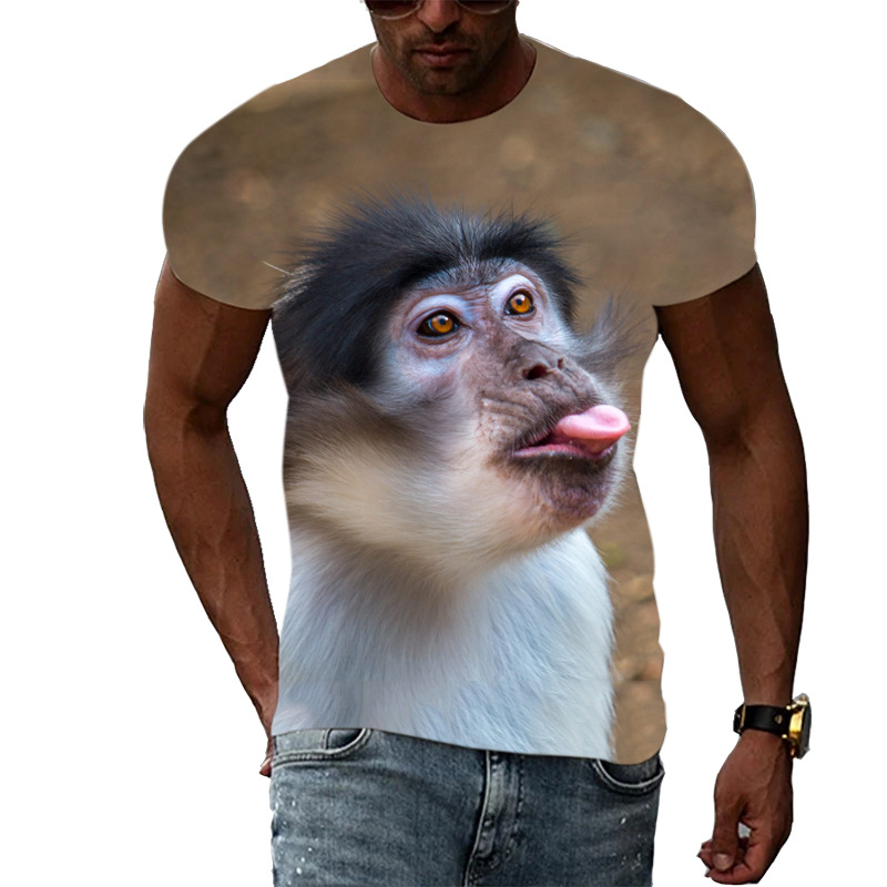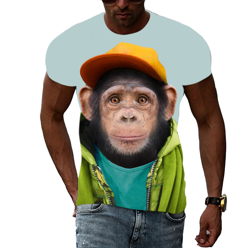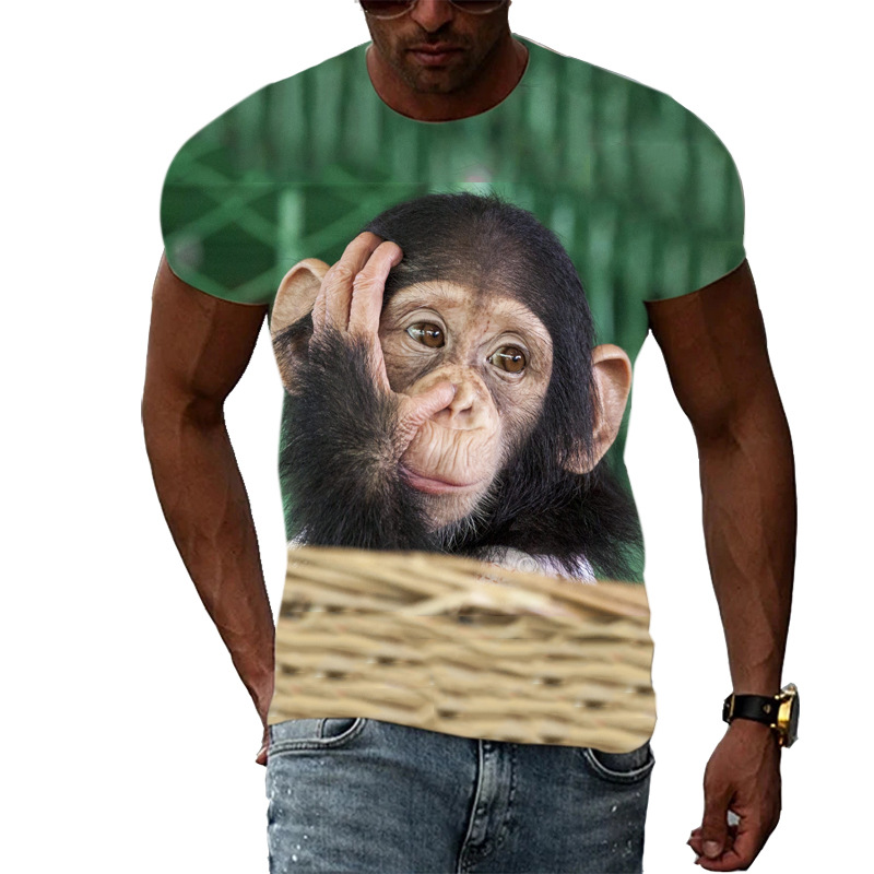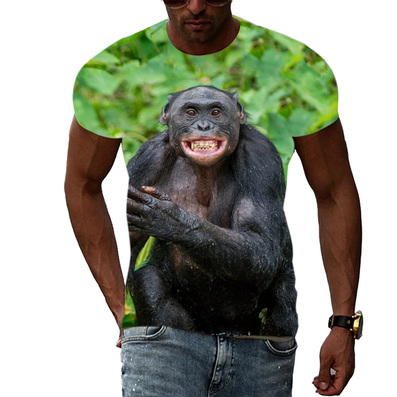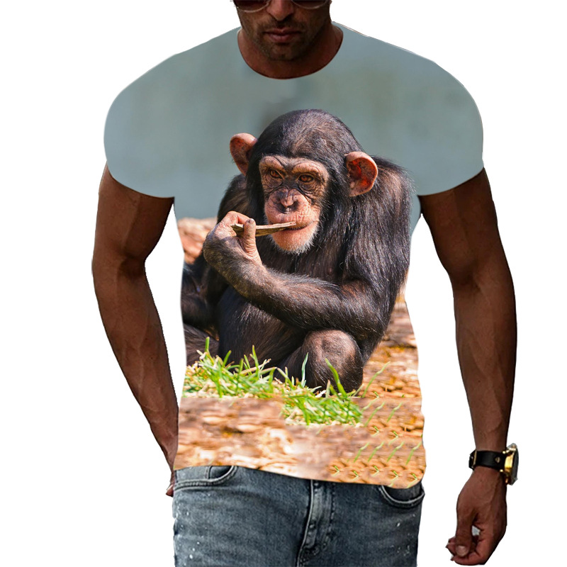 여름 국경 남성 인쇄 3D 고릴라 반팔 티셔츠 원피스 배송은 아동복에 사용할 수 있습니다.스토어 가기