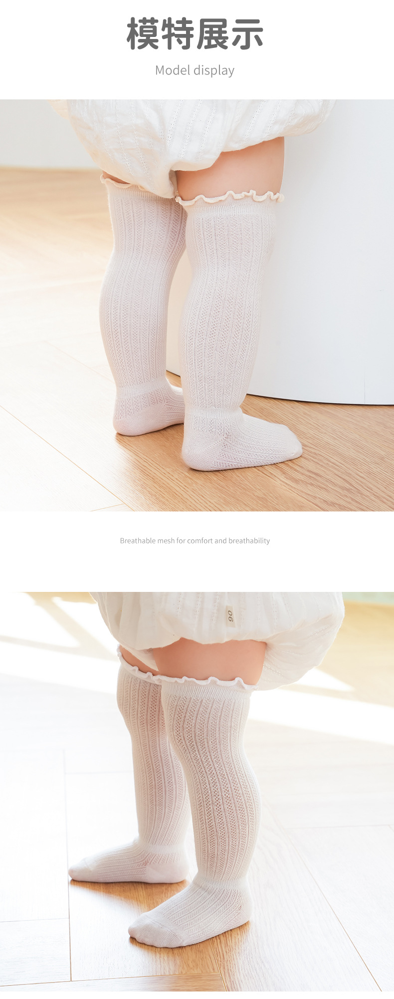 24 여름 얇은 면 솔리드 컬러 아기 뼈없는 느슨한 통기성 양말 무릎 위에 신생아 유아를위한 긴 메쉬 안티-모기 양말