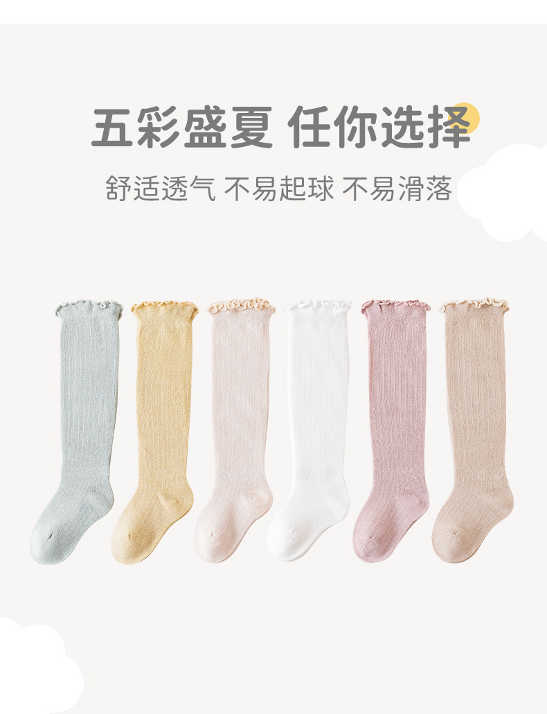 24 여름 얇은 면 솔리드 컬러 아기 뼈없는 느슨한 통기성 양말 무릎 위에 신생아 유아를위한 긴 메쉬 안티-모기 양말스토어 가기