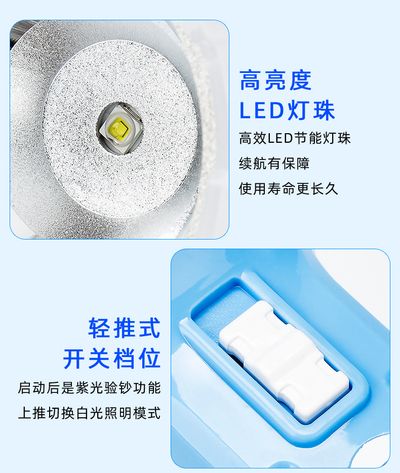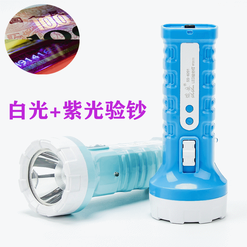 Susen 손전등 강한 빛 충전식 가정용 미니 편리한 소형 다기능 보라색 빛 돈 탐지기 자외선
