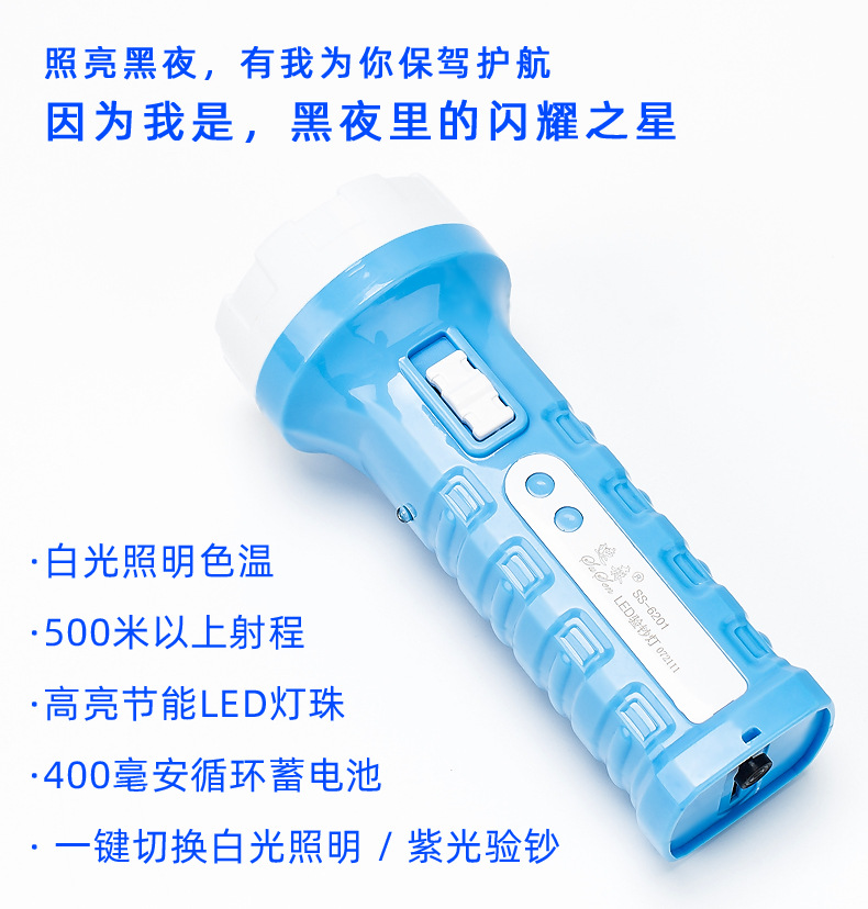 Susen 손전등 강한 빛 충전식 가정용 미니 편리한 소형 다기능 보라색 빛 돈 탐지기 자외선스토어 가기