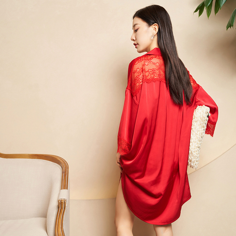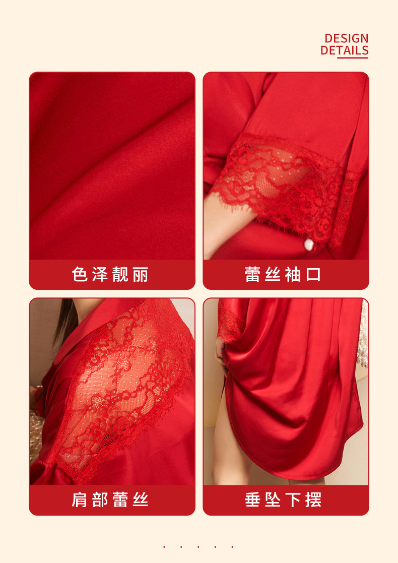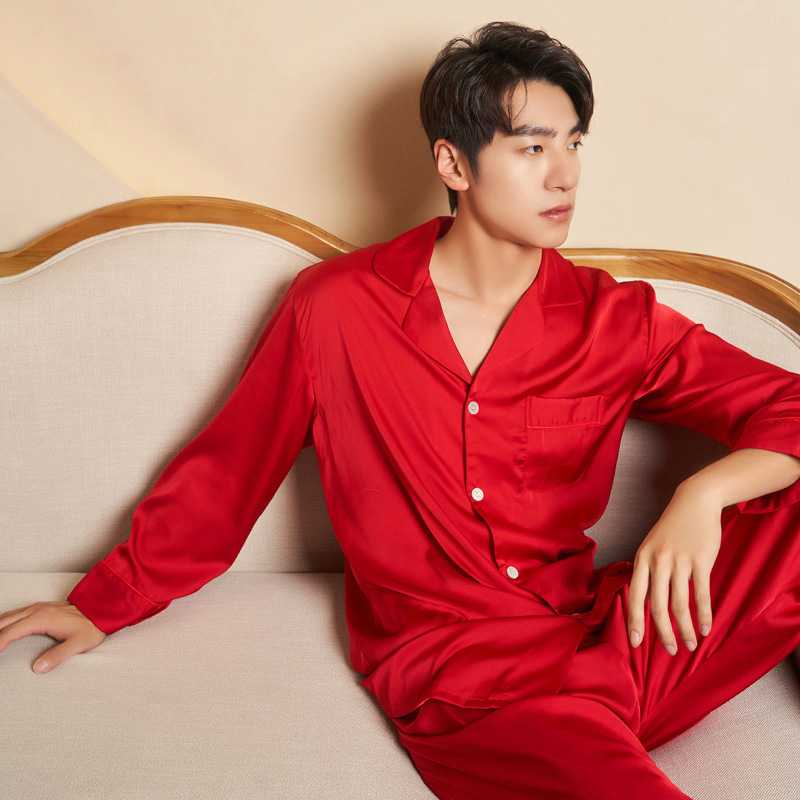 Jiangnan wo 2023 봄 새싹 실크 속이 빈 잠옷 커플 빨간 긴 소매 잠옷 얼음 실크 가정 옷의 세대 세트