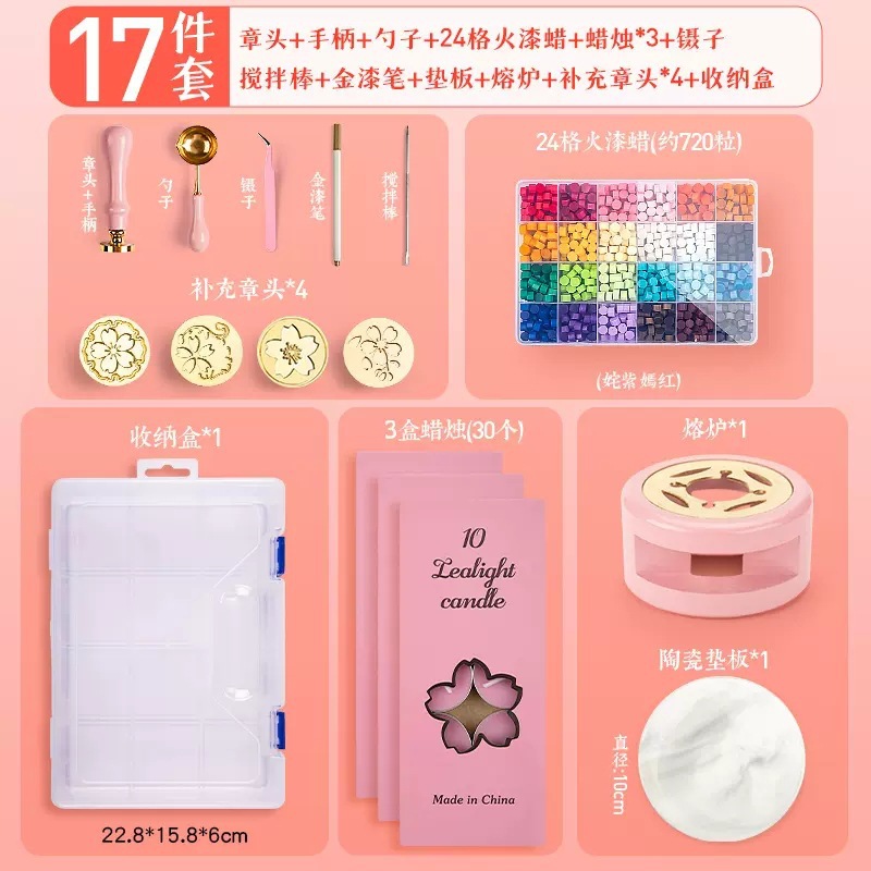 화재 페인트 인감 세트 촛불 왁스 곡물 씰 헤드 구 카드의 전체 세트 초보자 왁스 인쇄 총기 스푼 장난감 제조 업체 도매