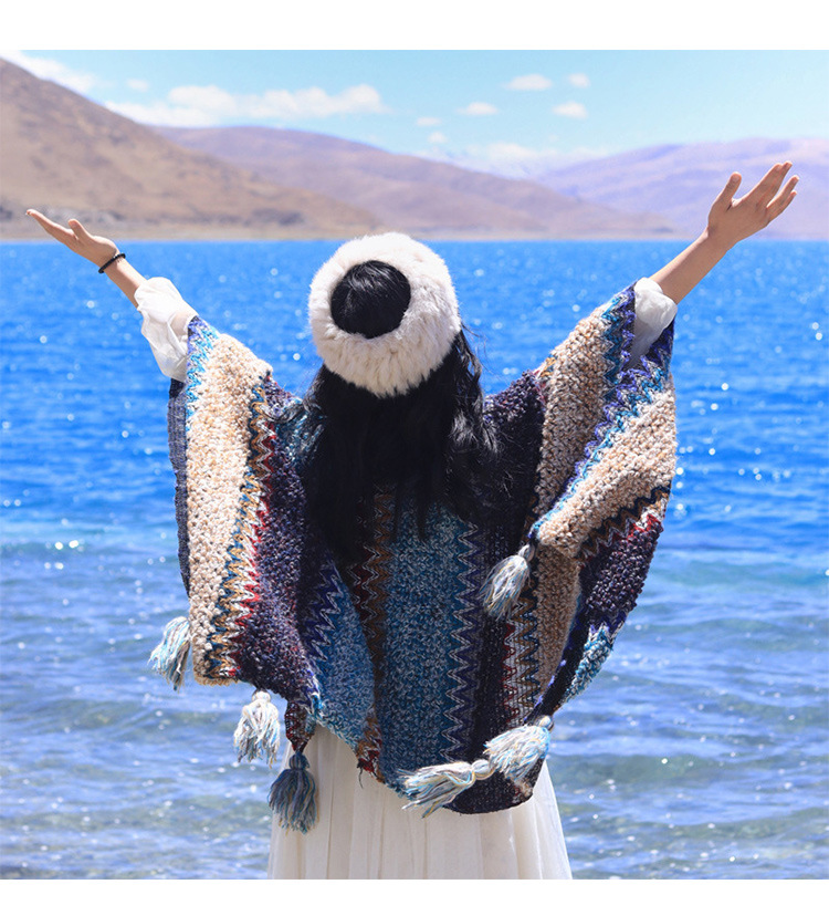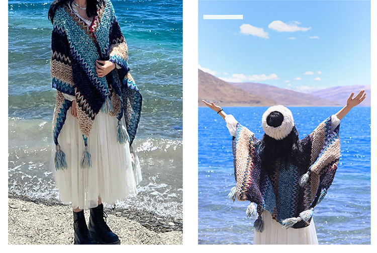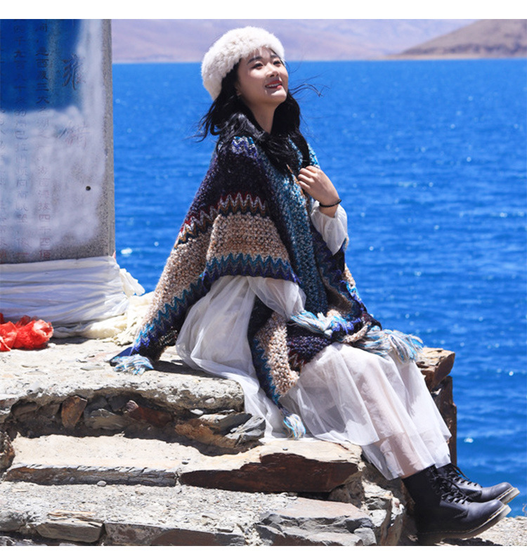 윈난 리장 숄 리우 이페이 같은 스타일 달리 관광 인터넷 연예인 에스닉 스타일 숄 케이프 스카프 아우터 착용 망토
