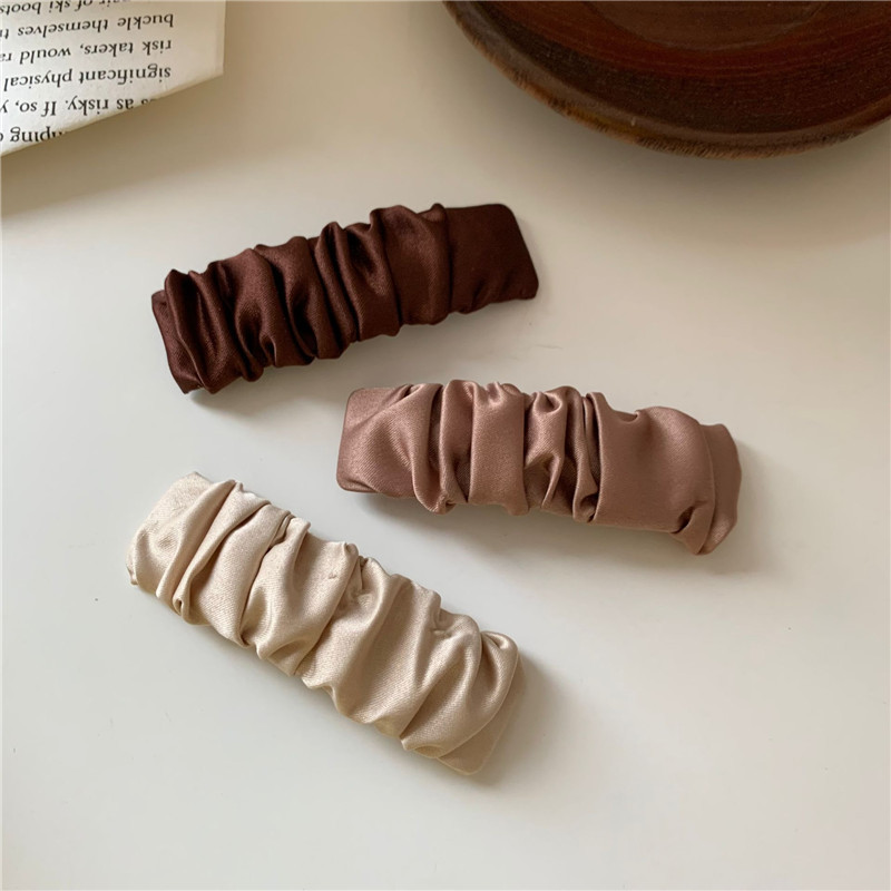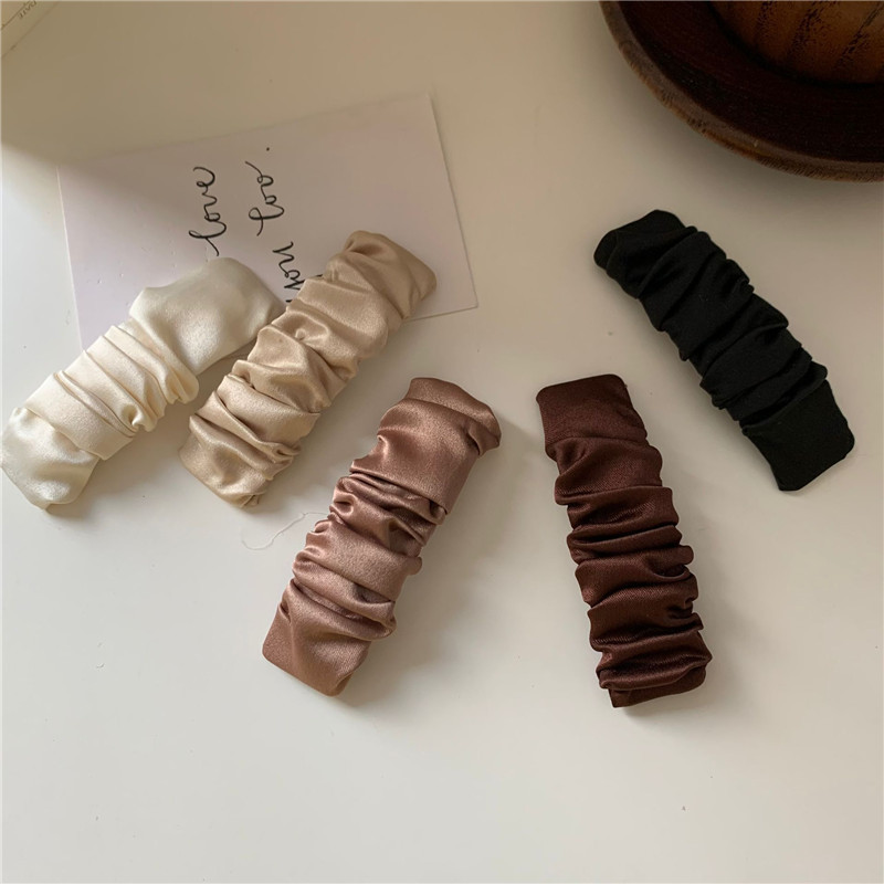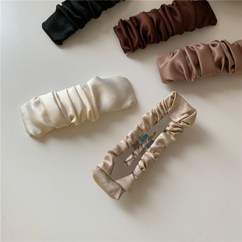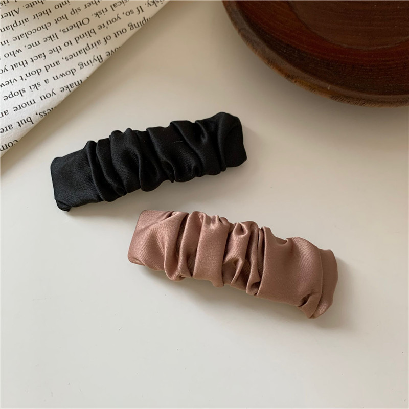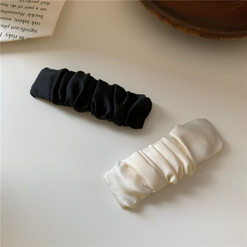 한국 인 하이 엔드 실크와 새틴 주름 앞머리 머리핀 기질 패브릭 아트 복고풍 블랙 프랑스 BB 사이드 클립