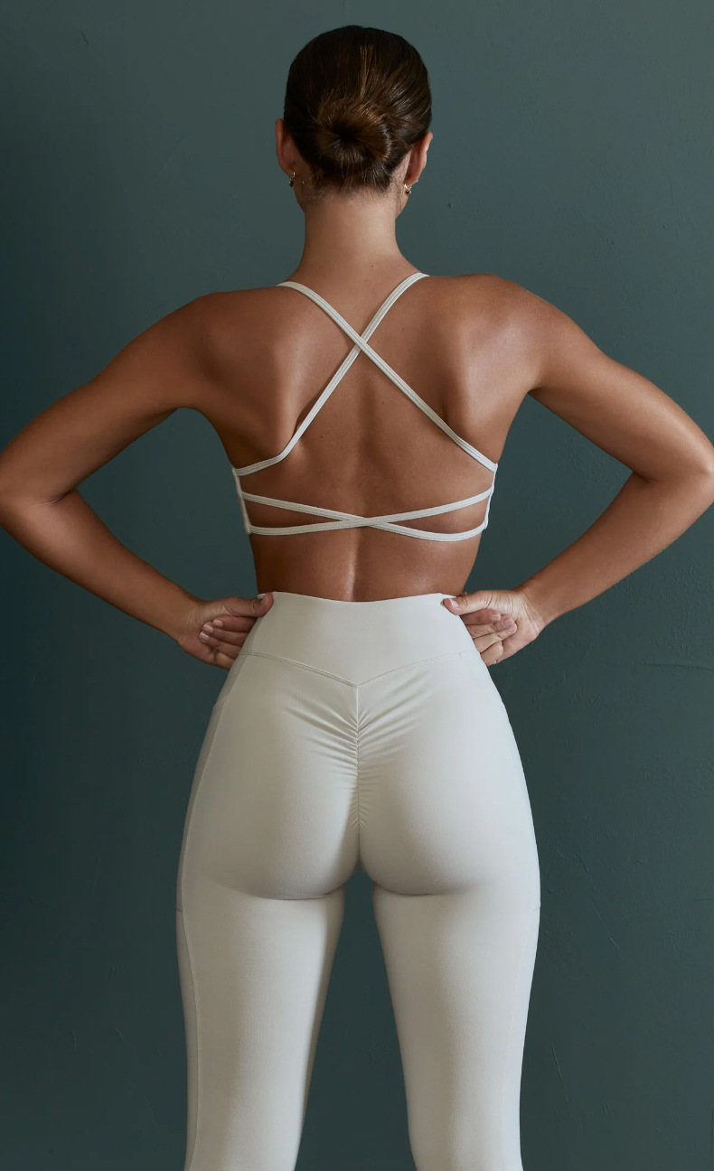 여성용 국경을 넘는 인기 요가복 세트 속옷, 충격 방지 고강도 서스펜더, 크로스백 디자인, 원피스 요가 탑스토어 가기