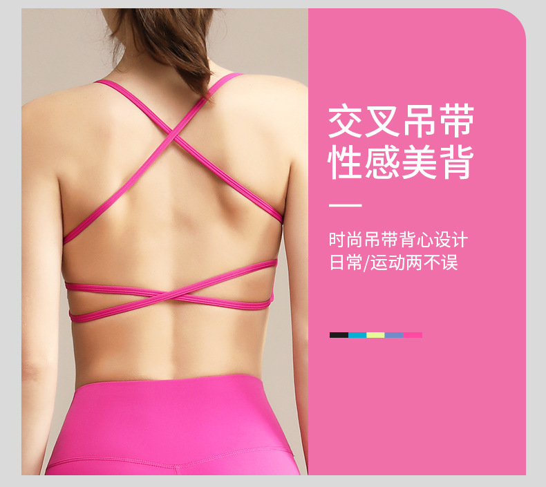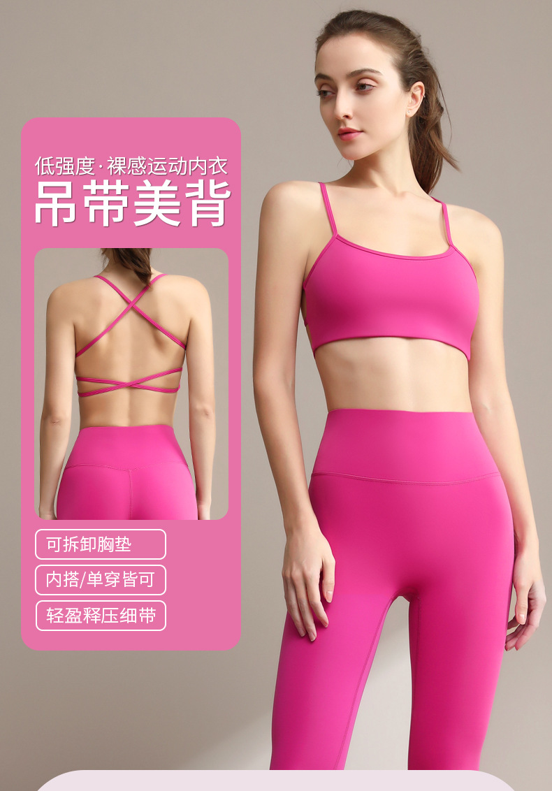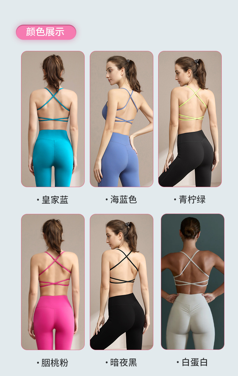 여성용 국경을 넘는 인기 요가복 세트 속옷, 충격 방지 고강도 서스펜더, 크로스백 디자인, 원피스 요가 탑