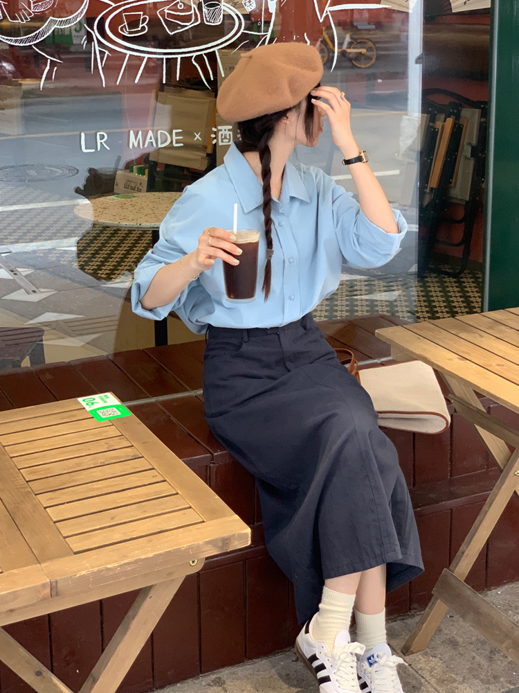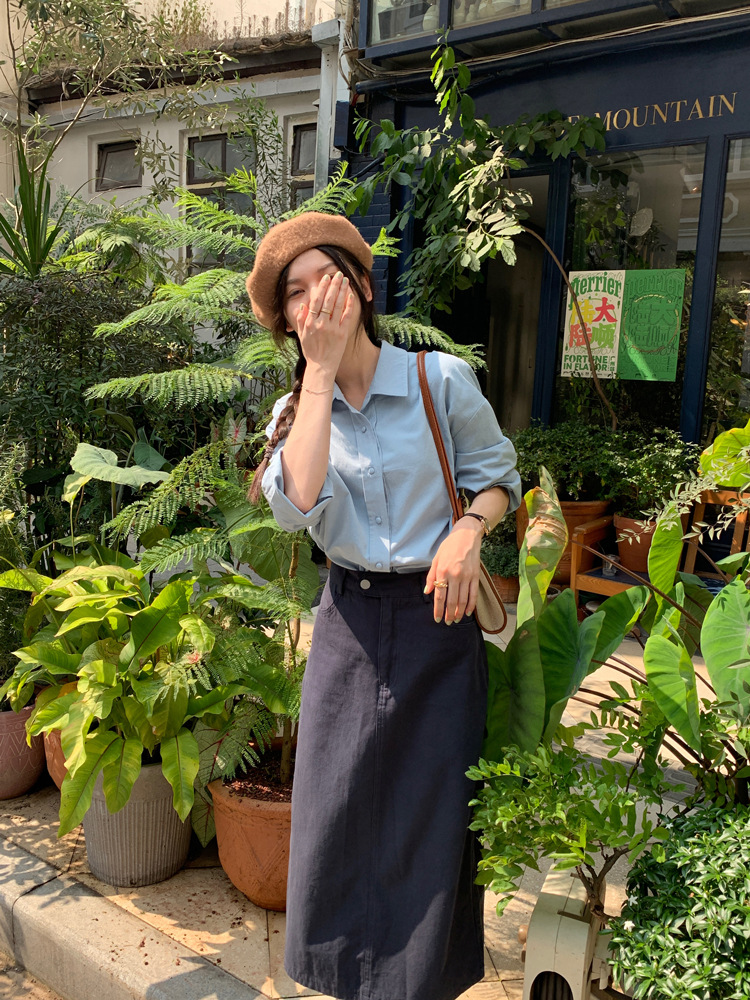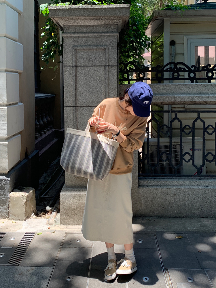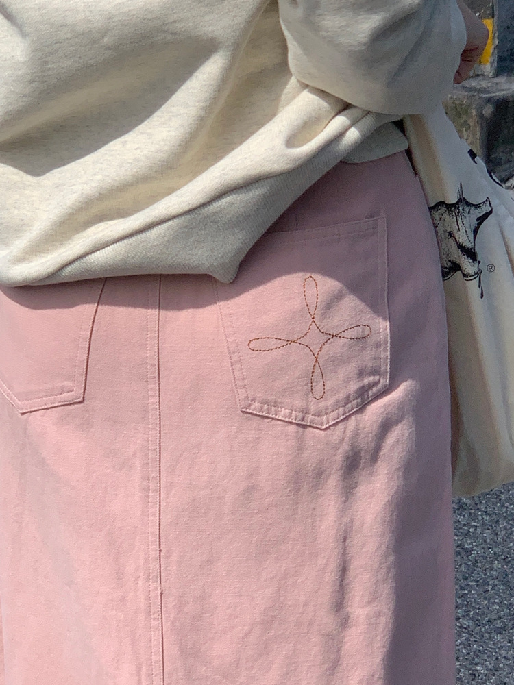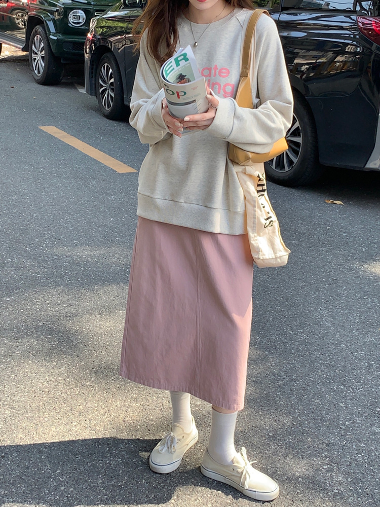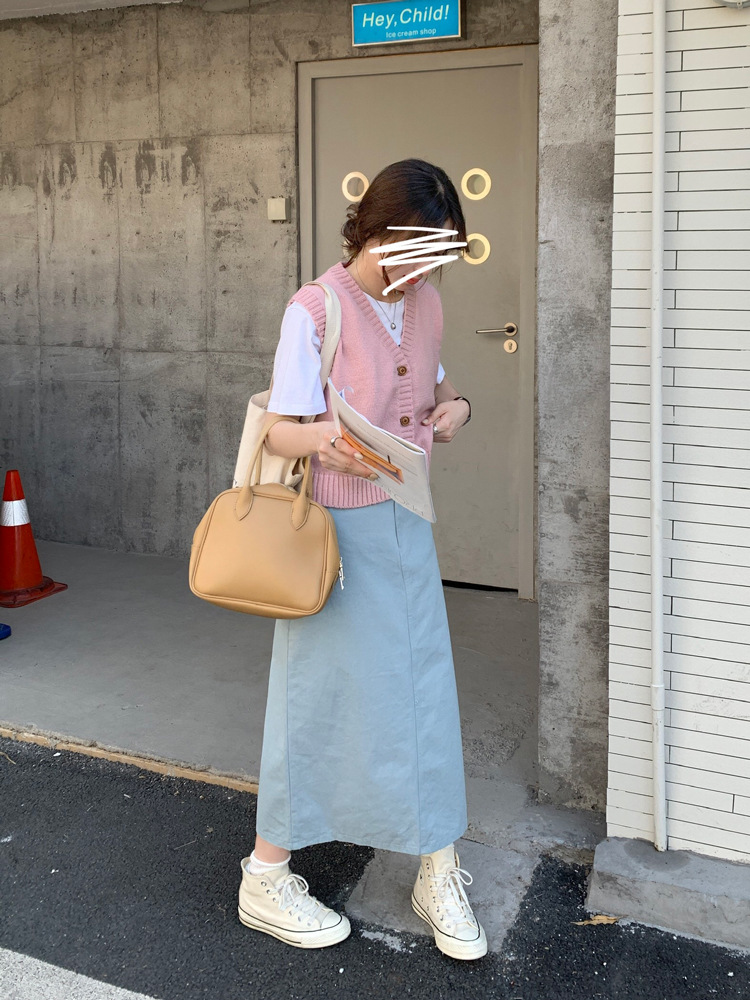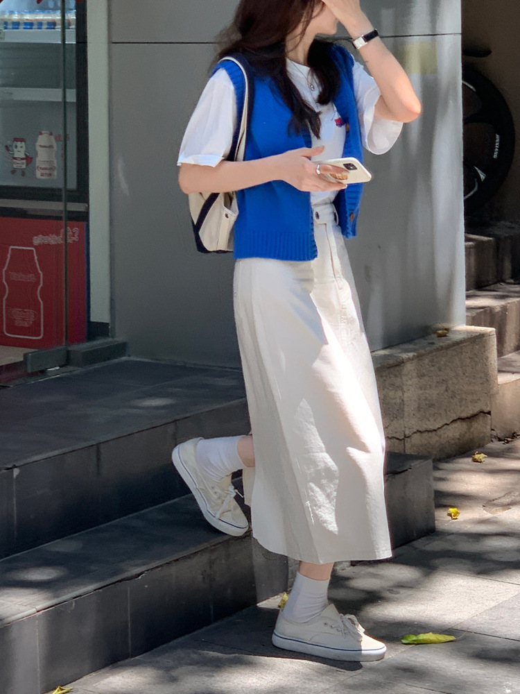 리얼 샷 2023 디자인 센스 리어 스플릿 스트레이트 스커트 여성용 초봄 하이 웨이스트 슬리밍 미드 길이 원 스텝 스커트스토어 가기