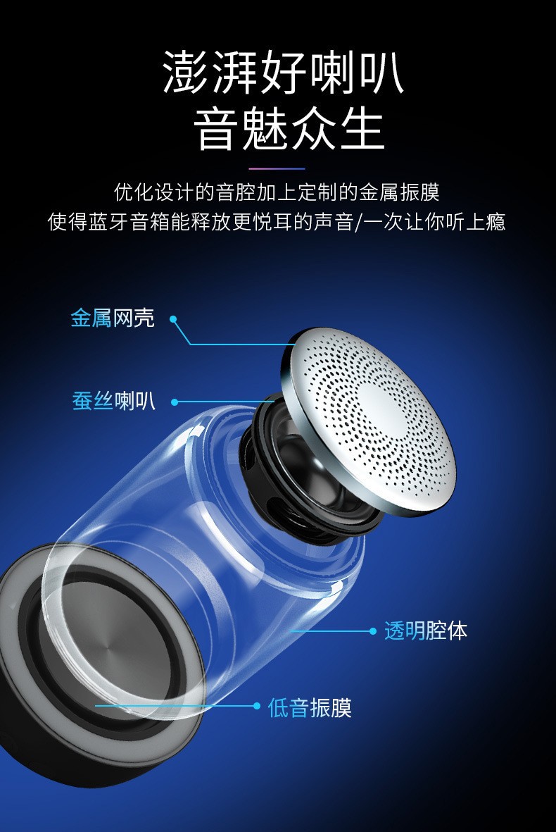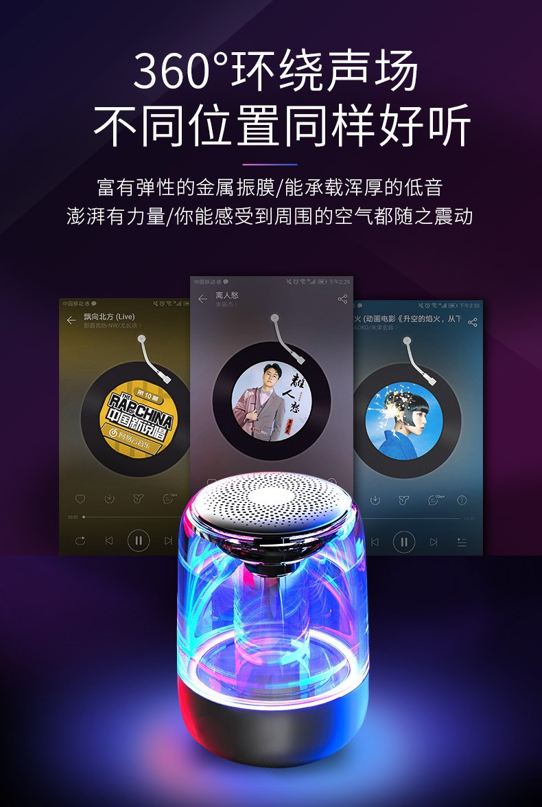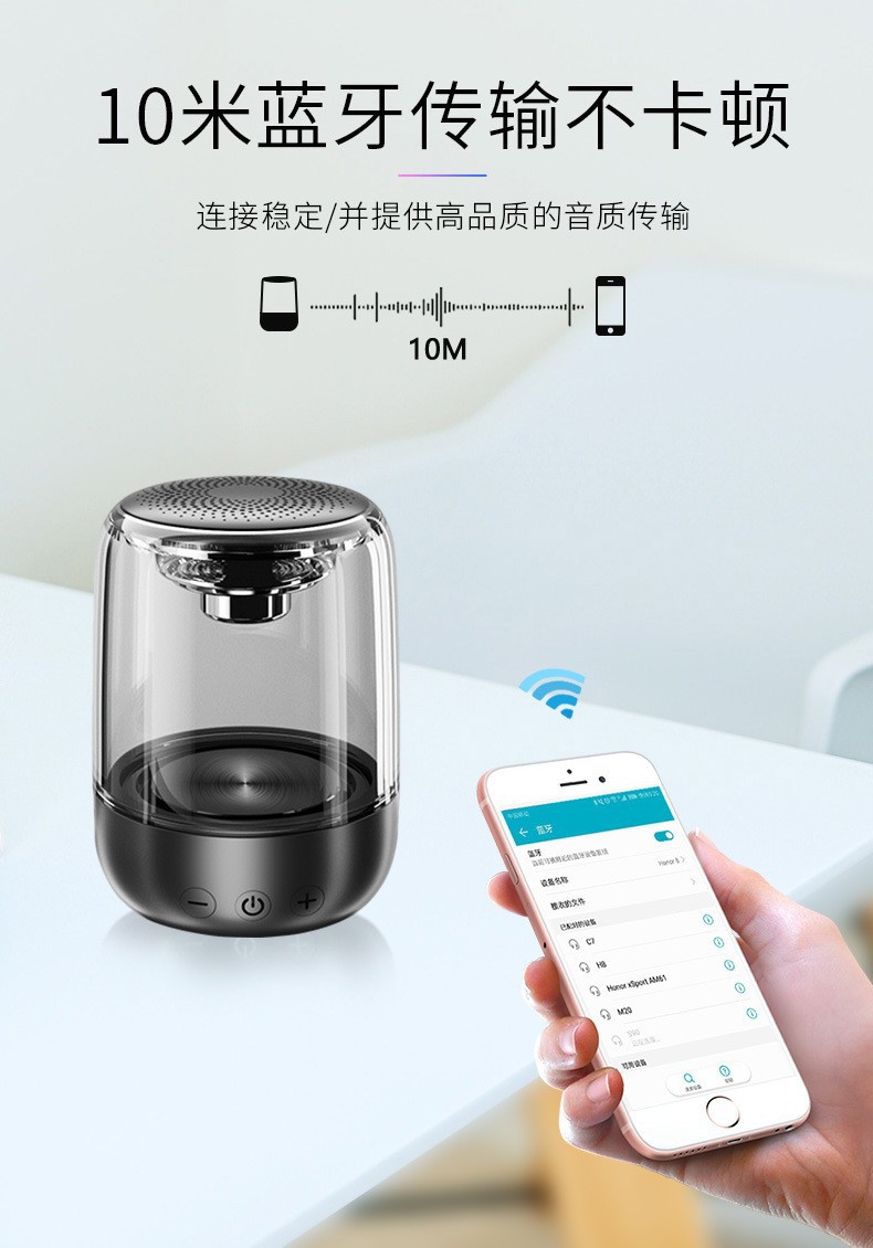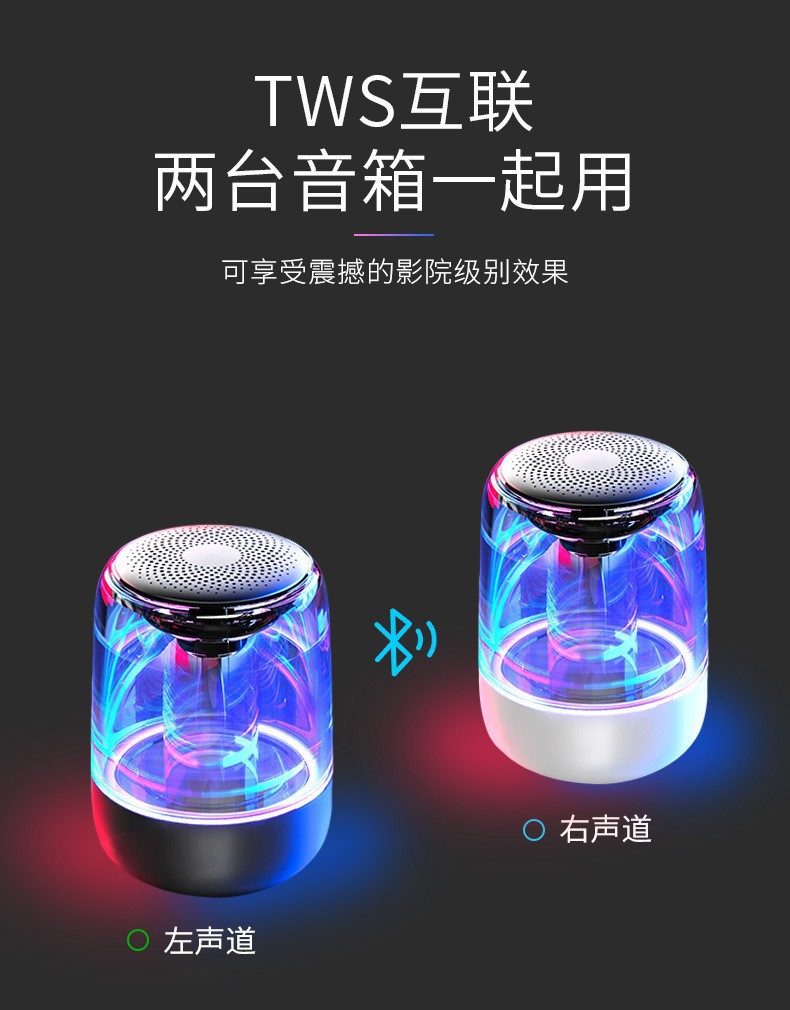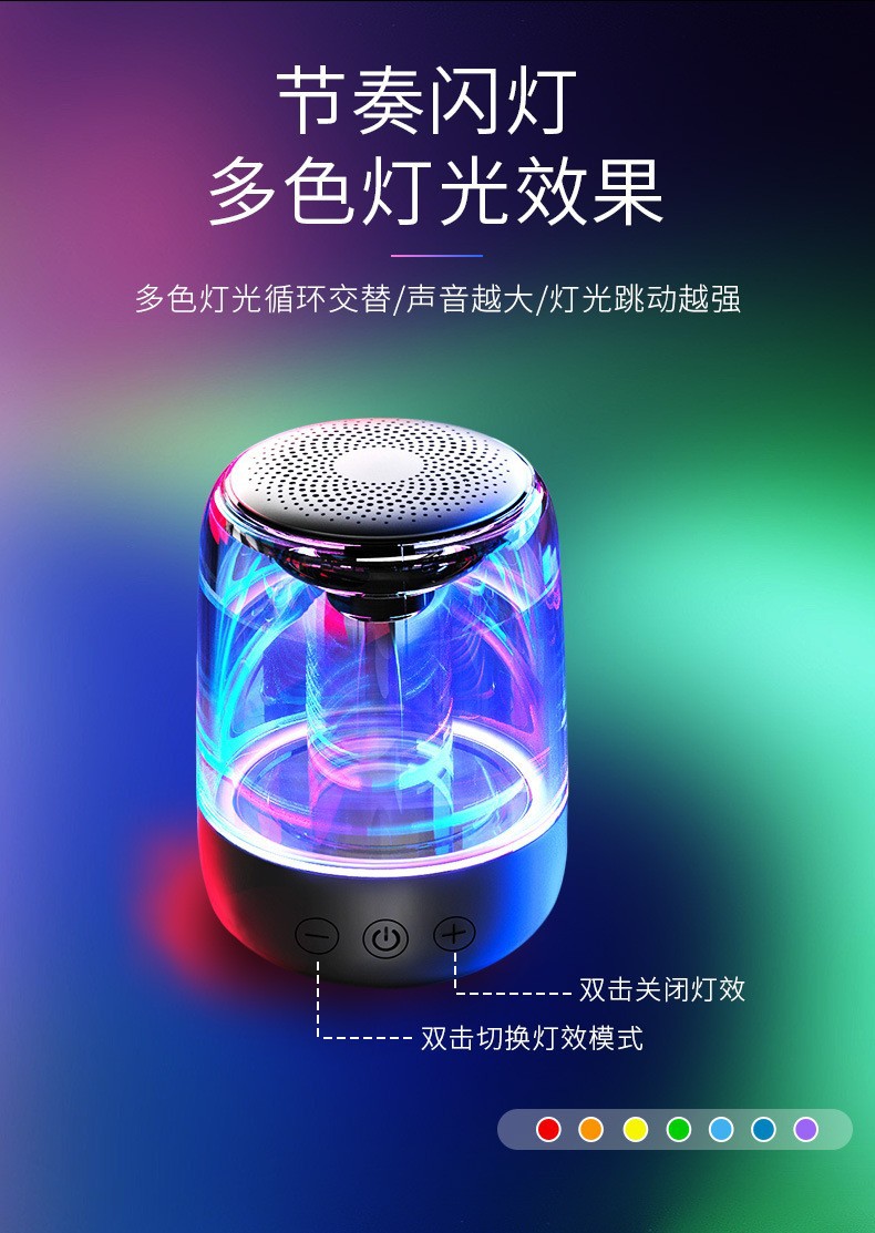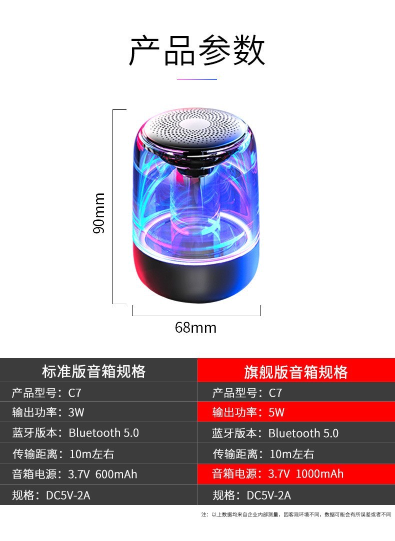 C7 블루투스 스피커 서브우퍼 휴대용 다채로운 조명 차량용 크리스탈 글라스 오디오 스테레오 다채로운스토어 가기