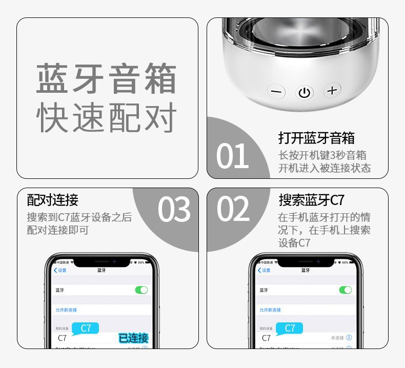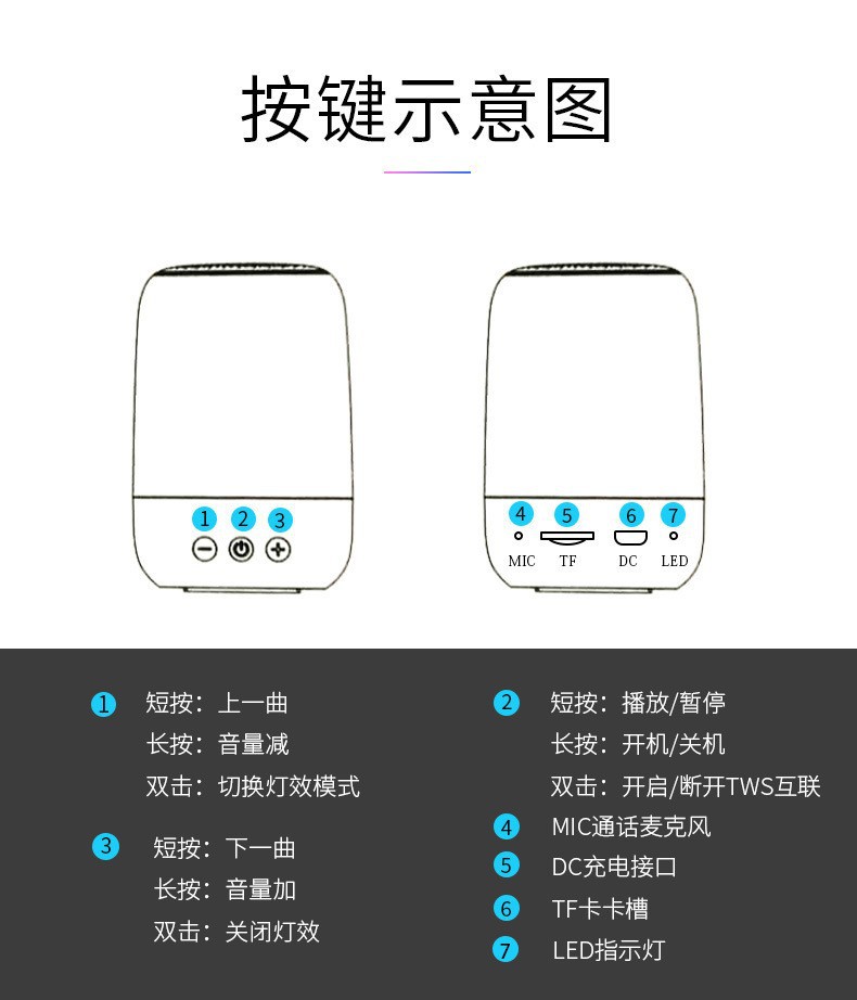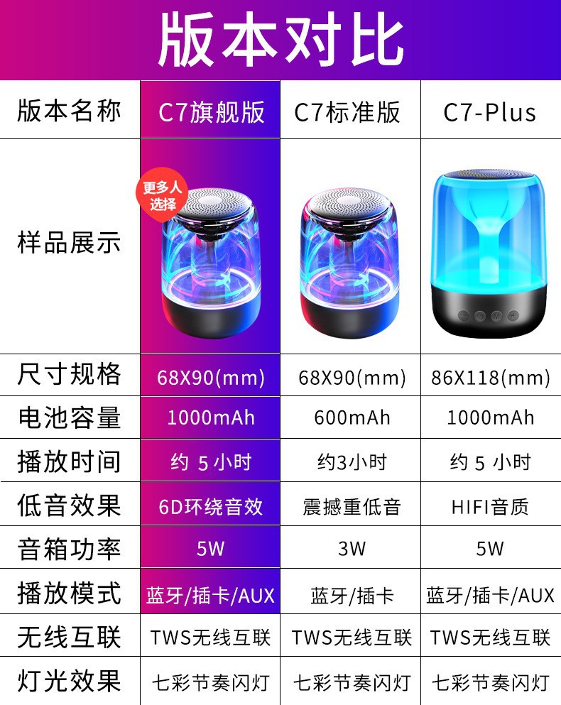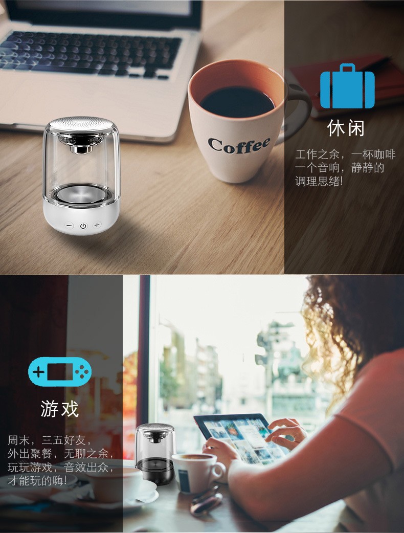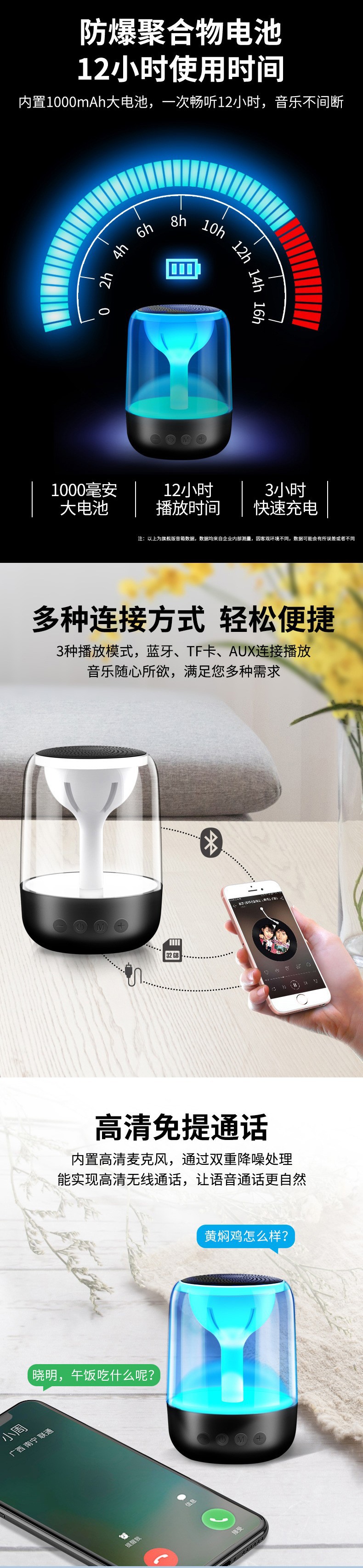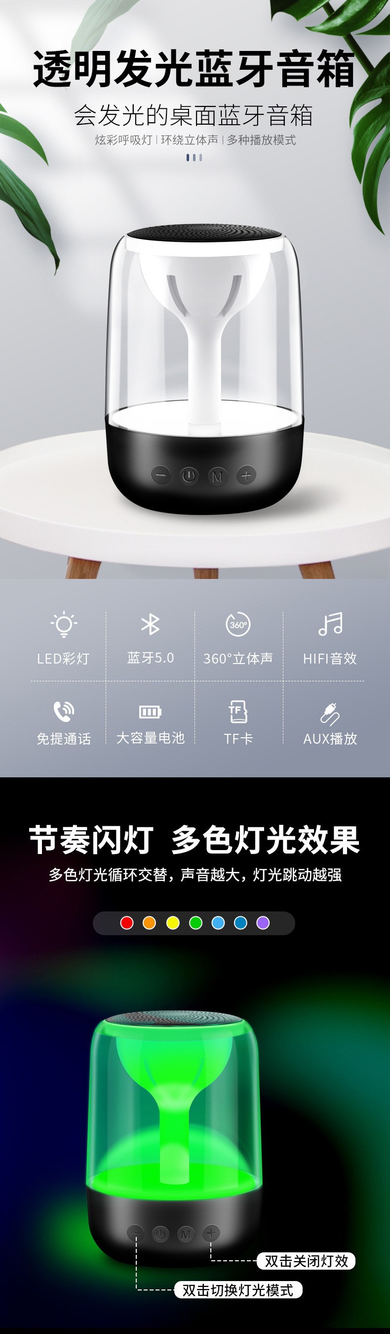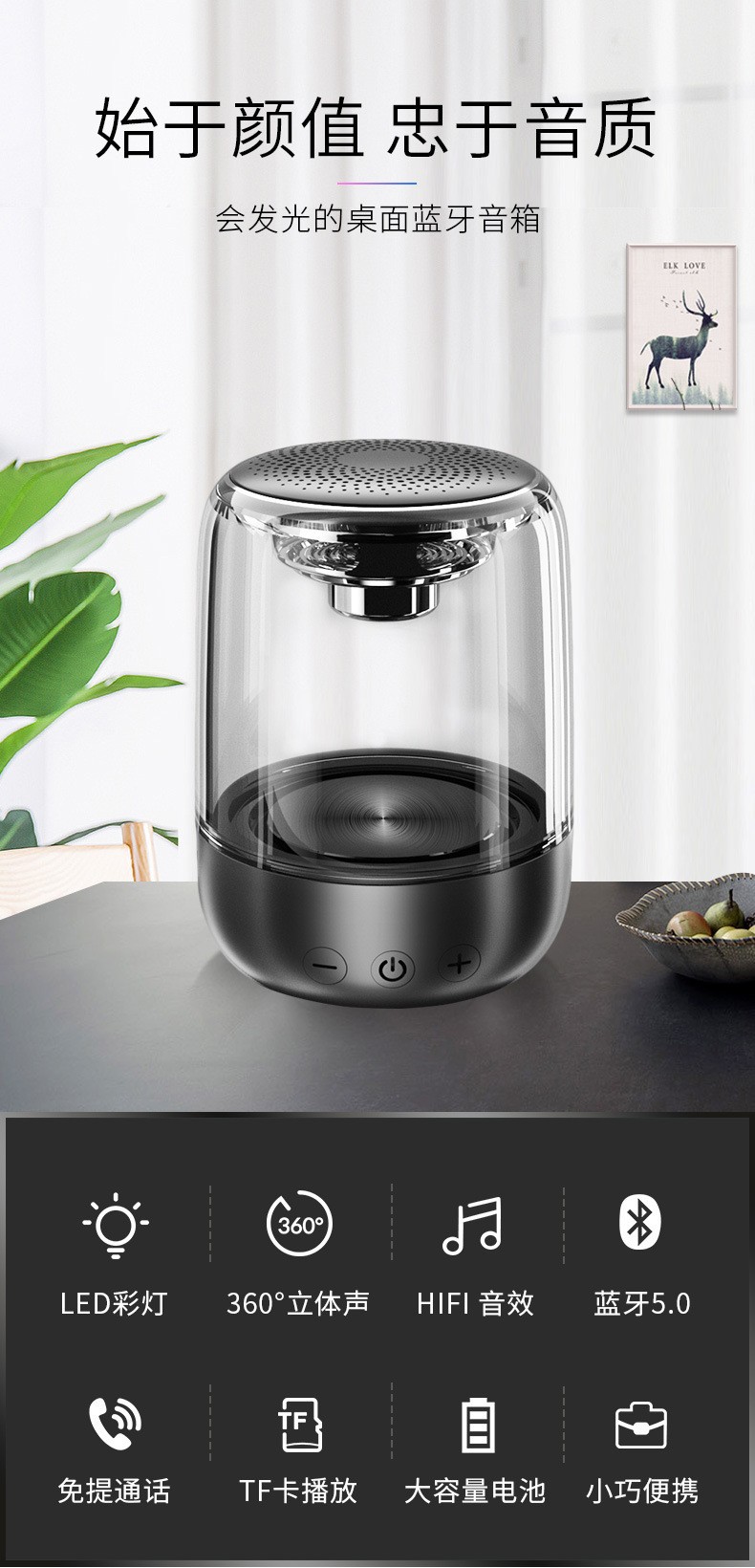 C7 블루투스 스피커 서브우퍼 휴대용 다채로운 조명 차량용 크리스탈 글라스 오디오 스테레오 다채로운스토어 가기