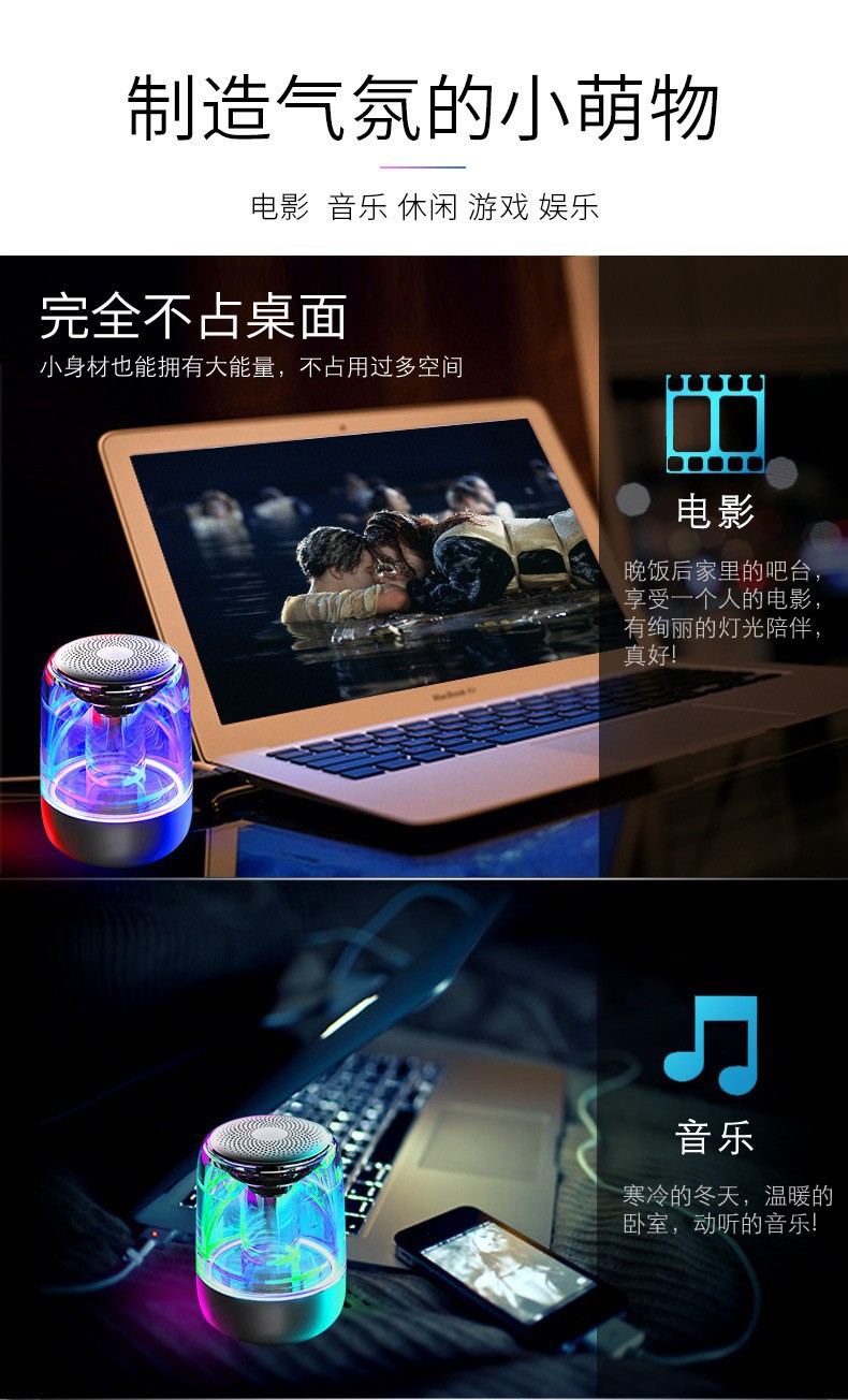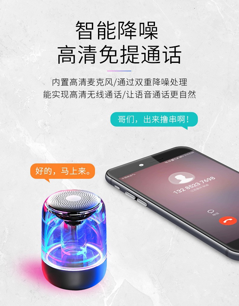 C7 블루투스 스피커 서브우퍼 휴대용 다채로운 조명 차량용 크리스탈 글라스 오디오 스테레오 다채로운