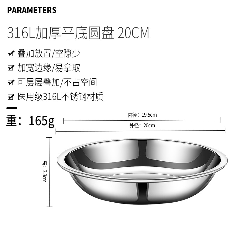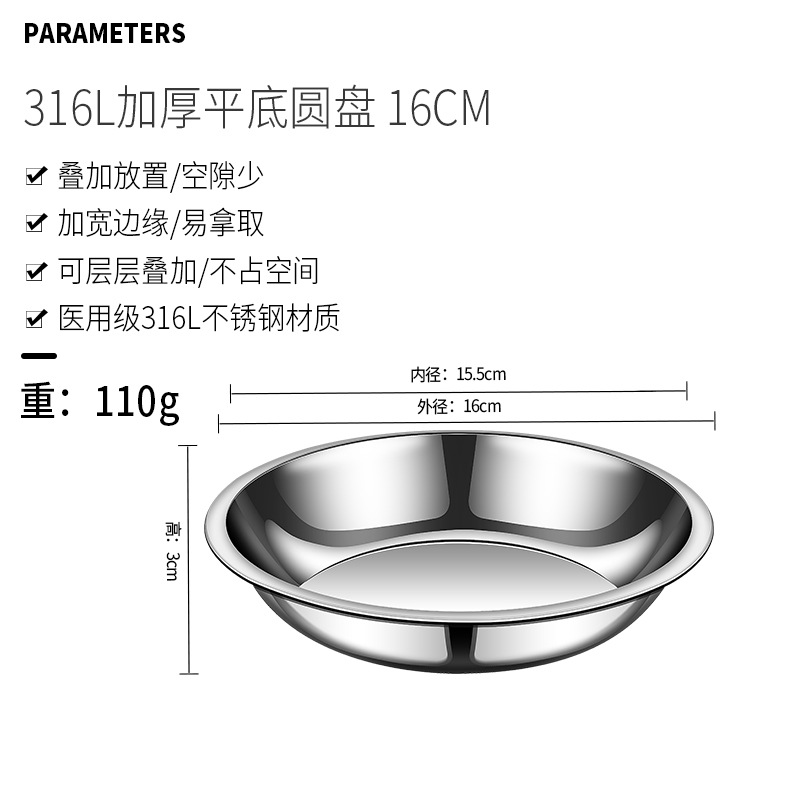 316 스테인레스 스틸 플레이트 가정용 두꺼운 플랫 바닥 플레이트 디스크 뼈 침 접시 요리 음식 학년 디너 플레이트