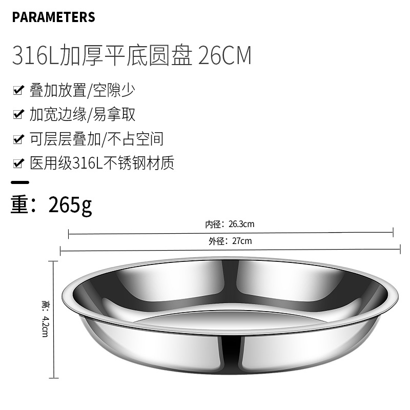 316 스테인레스 스틸 플레이트 가정용 두꺼운 플랫 바닥 플레이트 디스크 뼈 침 접시 요리 음식 학년 디너 플레이트스토어 가기