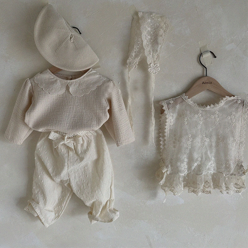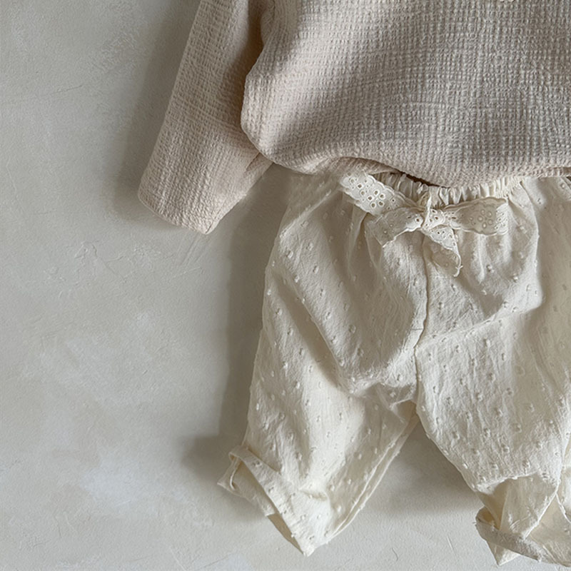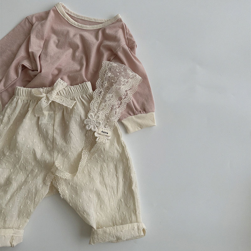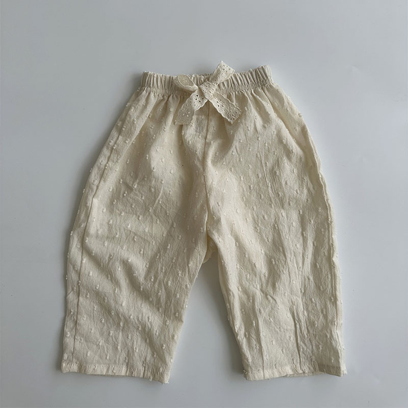 한국식 아동복 봄과 여름 아기 소녀의 서양식 레이스 보우 꽃 스트레이트 캐주얼 바지 아기 유행 어린이 바지스토어 가기