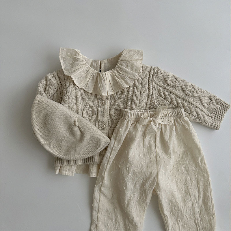 한국식 아동복 봄과 여름 아기 소녀의 서양식 레이스 보우 꽃 스트레이트 캐주얼 바지 아기 유행 어린이 바지
