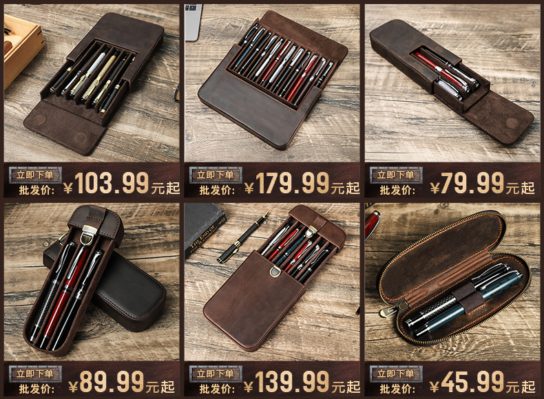 미친 말 가죽 펜 케이스 2 팩 수제 서랍형 분리형 학생 사무실 펜 보관함 재고스토어 가기