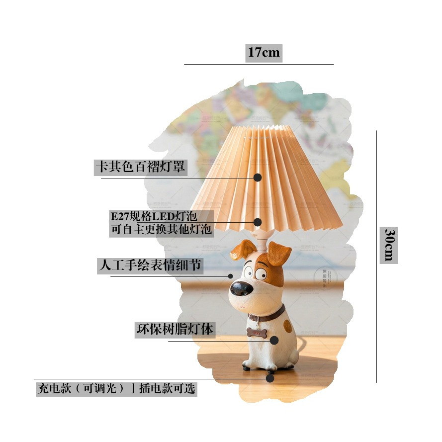 강아지 테이블 램프 소년의 생일 선물 어린이 방 귀여운 개 만화 개 수리 LED 아기 침실 침대 옆 램프