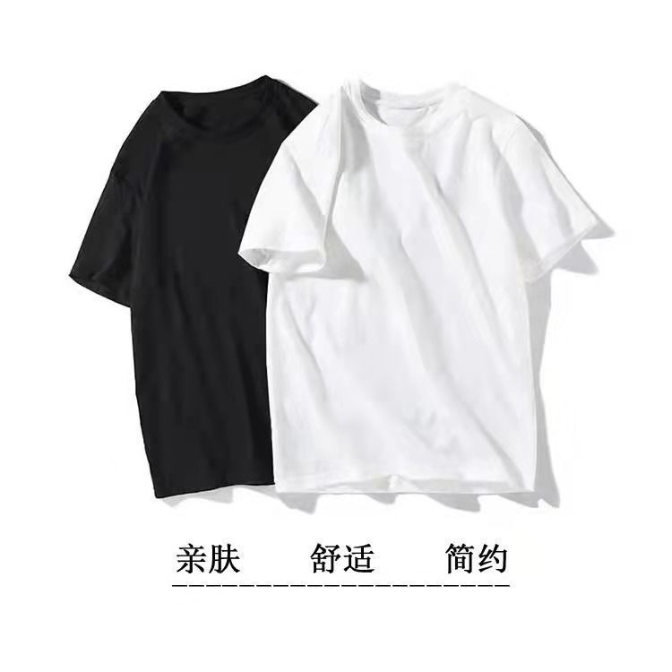 재고 직판 180g 면 느슨한 남성 반팔 풀오버 라운드 넥 티셔츠 문화 광고 단색 반팔스토어 가기