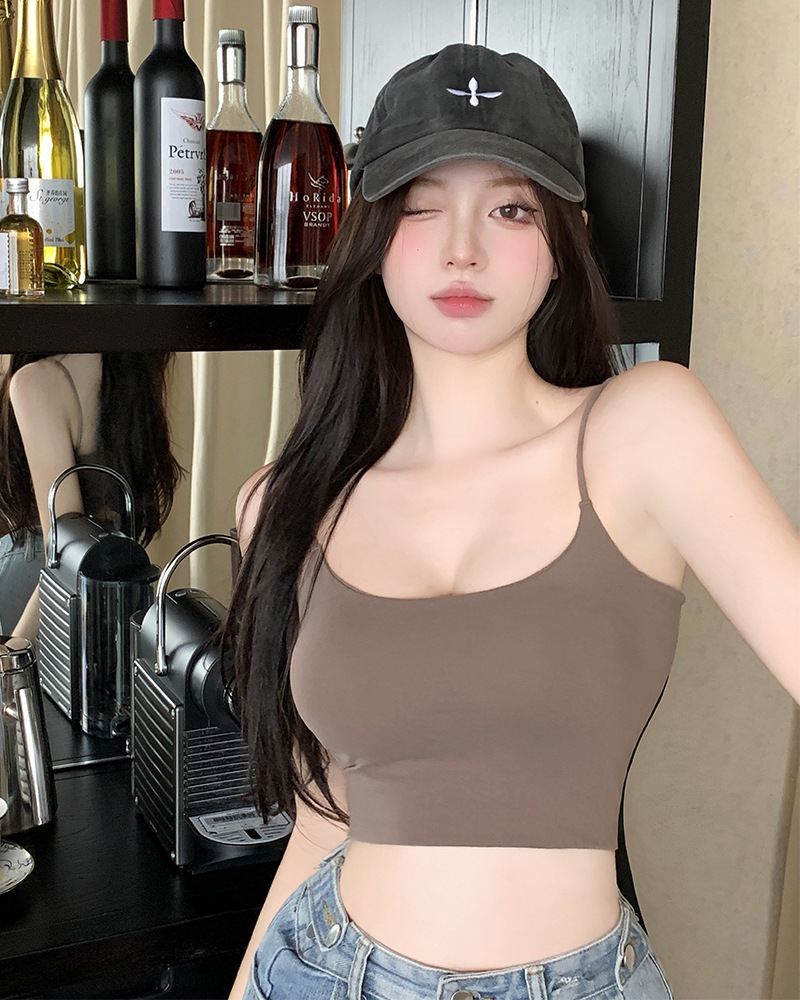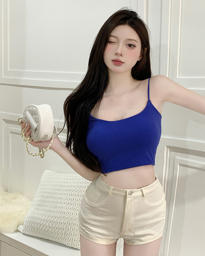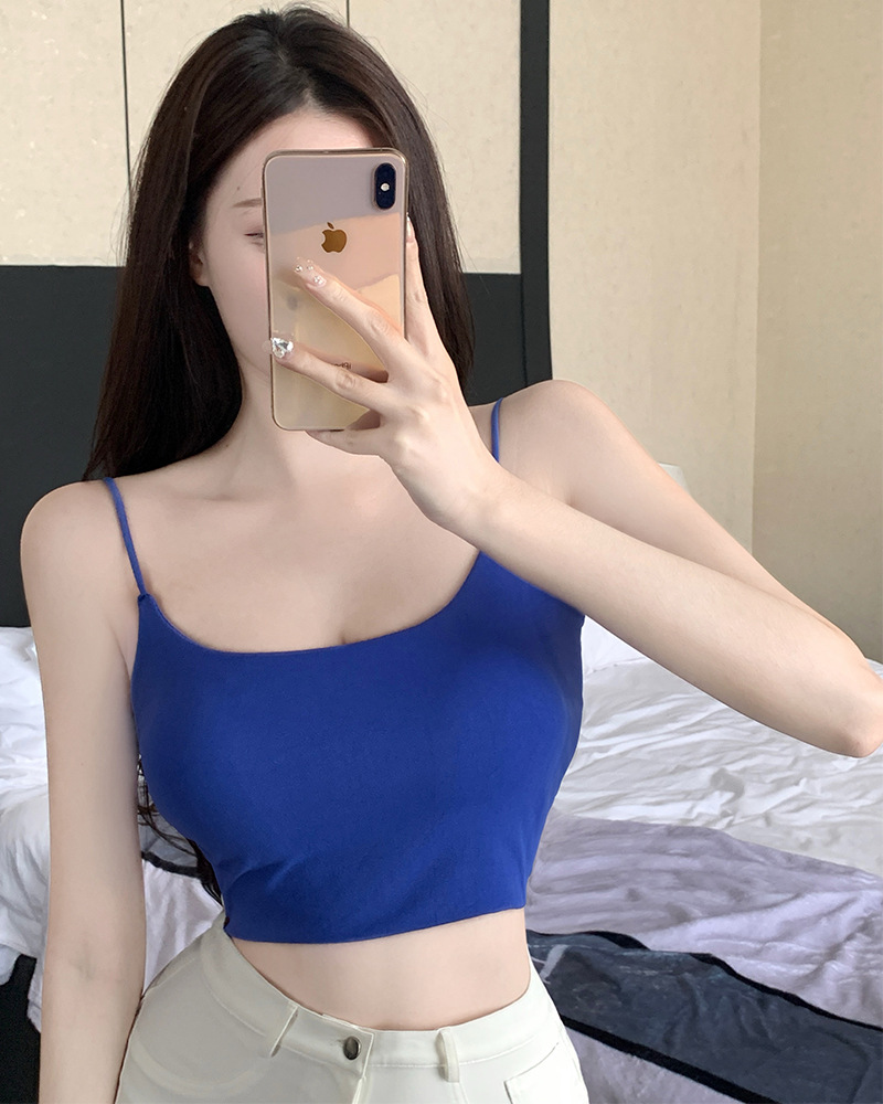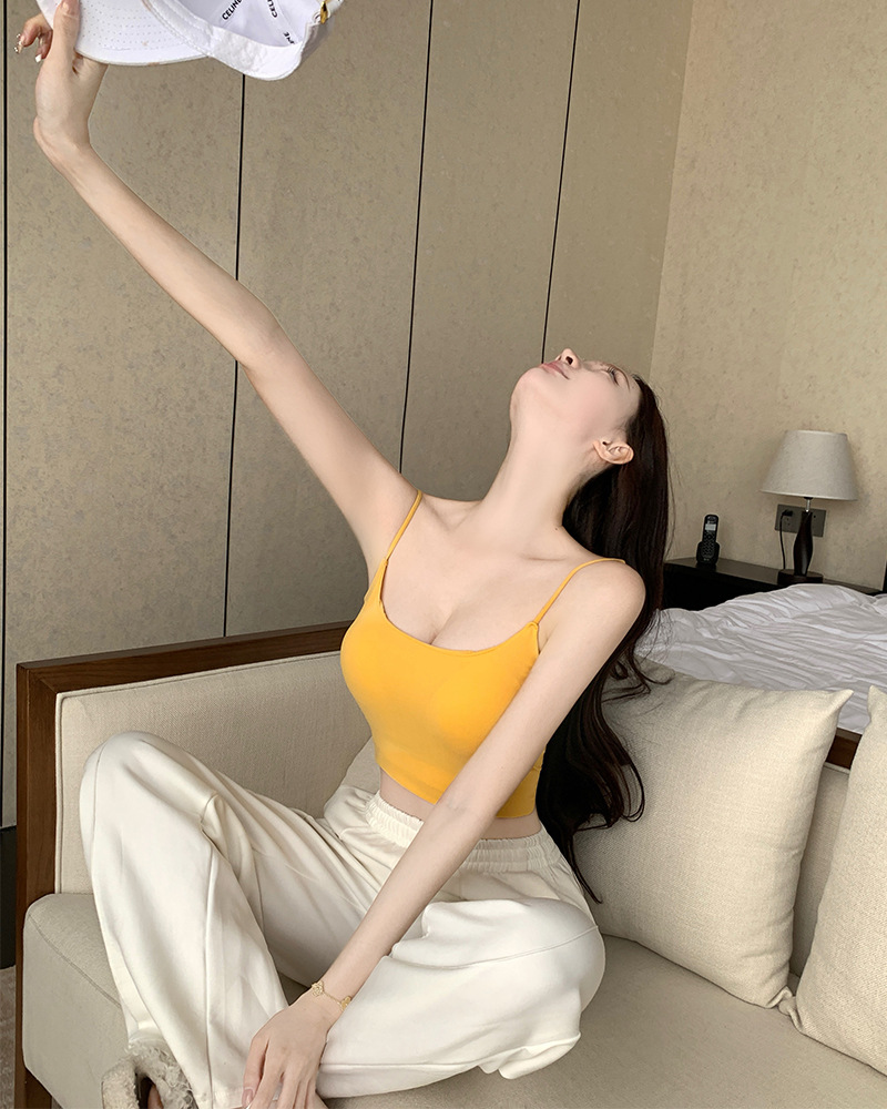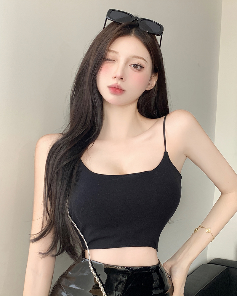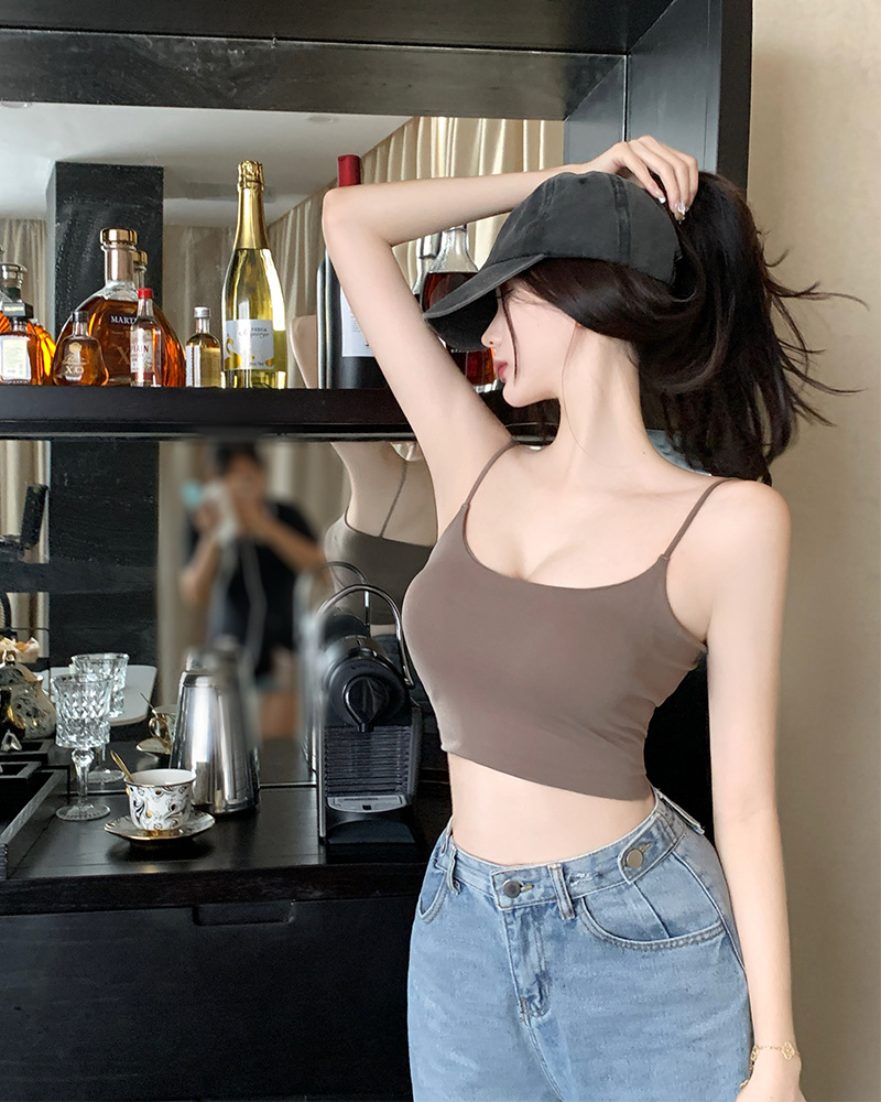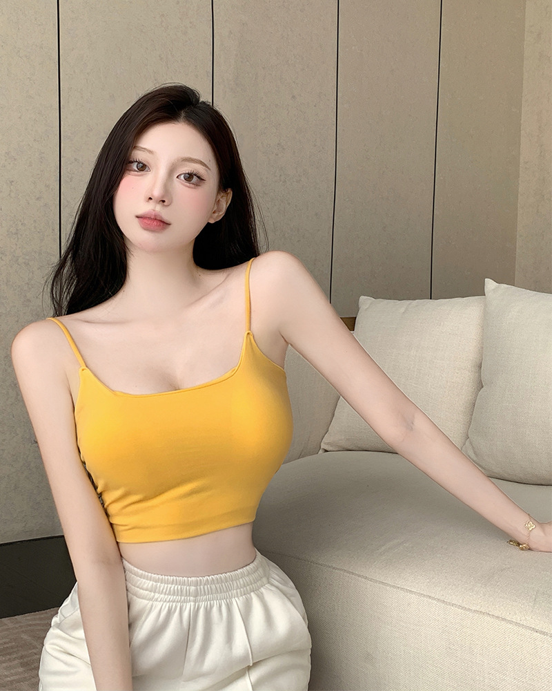 여름 새로운 섹시한 스파이스 걸스 필수 단색 아름다운 백 슬링 여성용 편안한 통기성 자체 포함 가슴 패드