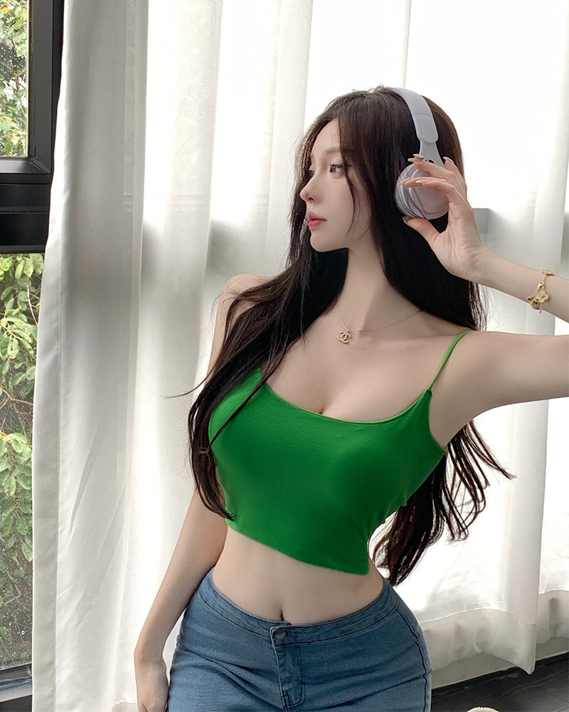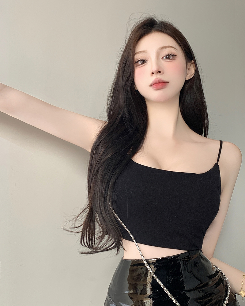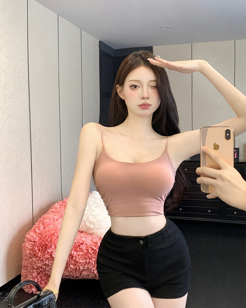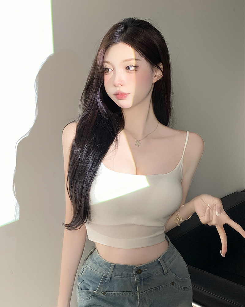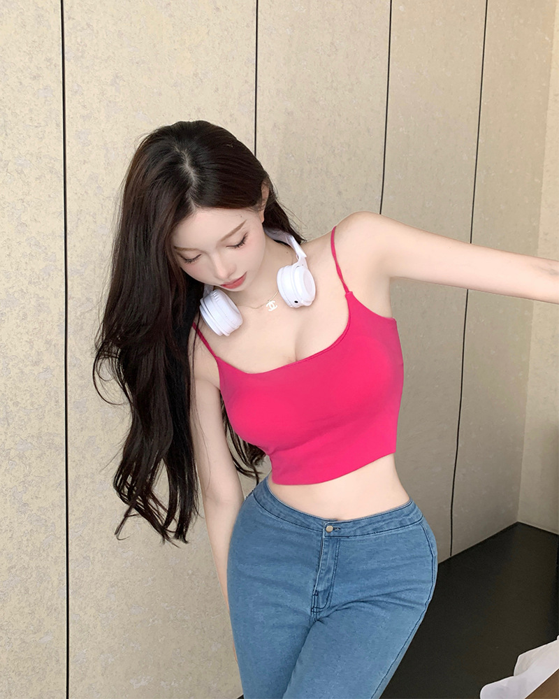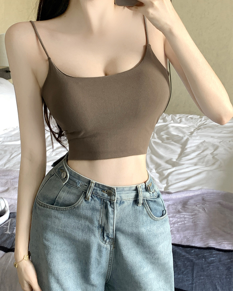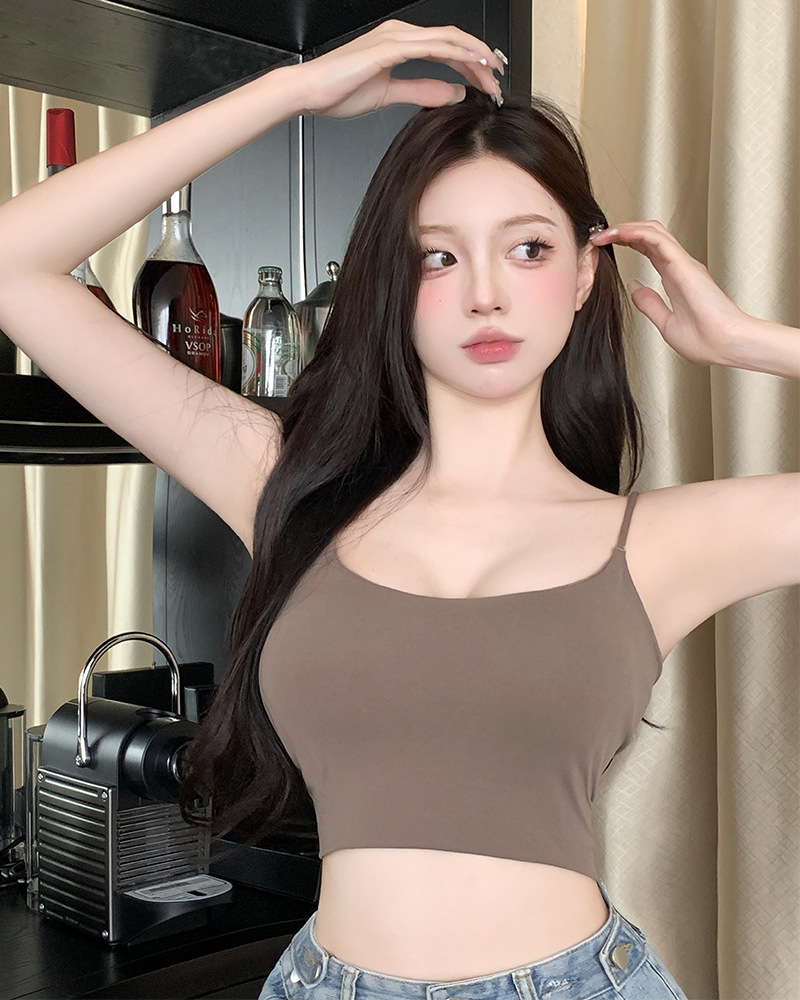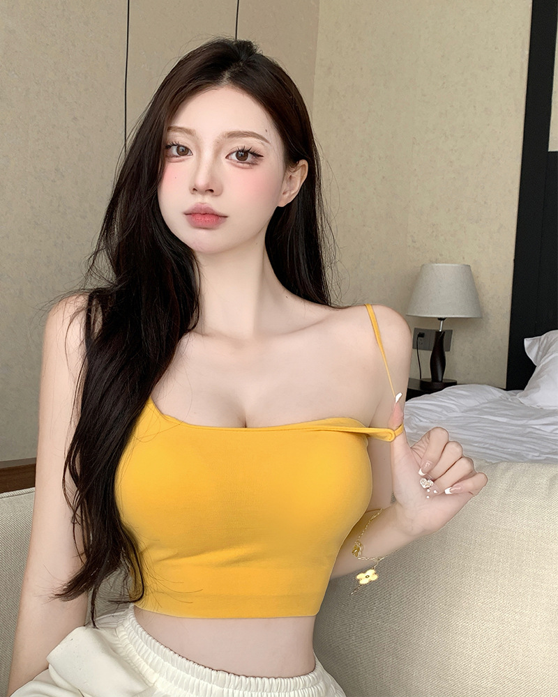 여름 새로운 섹시한 스파이스 걸스 필수 단색 아름다운 백 슬링 여성용 편안한 통기성 자체 포함 가슴 패드