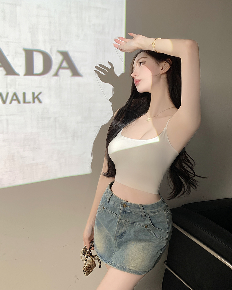 여름 새로운 섹시한 스파이스 걸스 필수 단색 아름다운 백 슬링 여성용 편안한 통기성 자체 포함 가슴 패드스토어 가기
