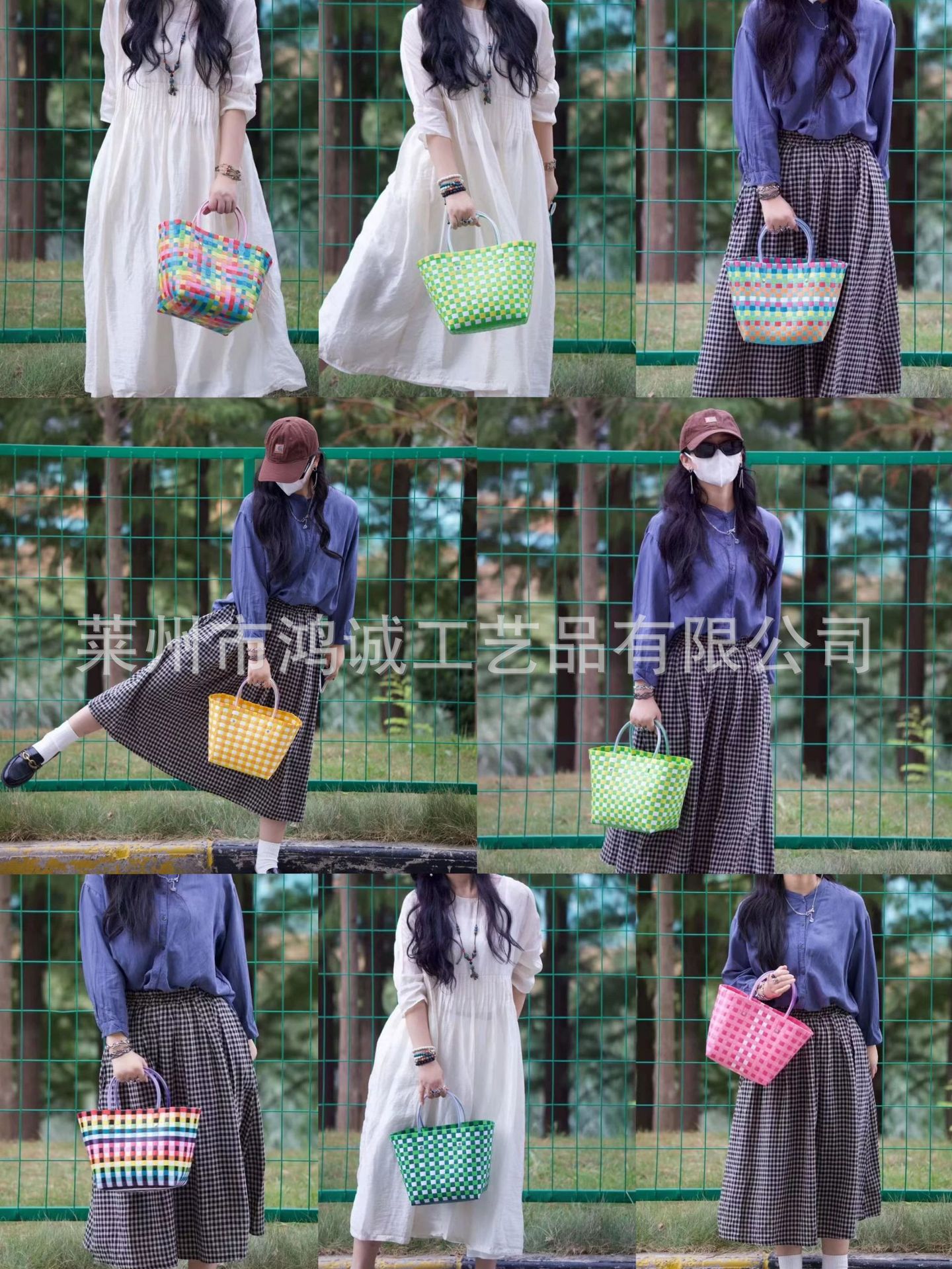 수제 가방 대용량 DIY 야채 바구니 비치백 핸드백 휴일 선물 가방 여성 수제 핸드백스토어 가기