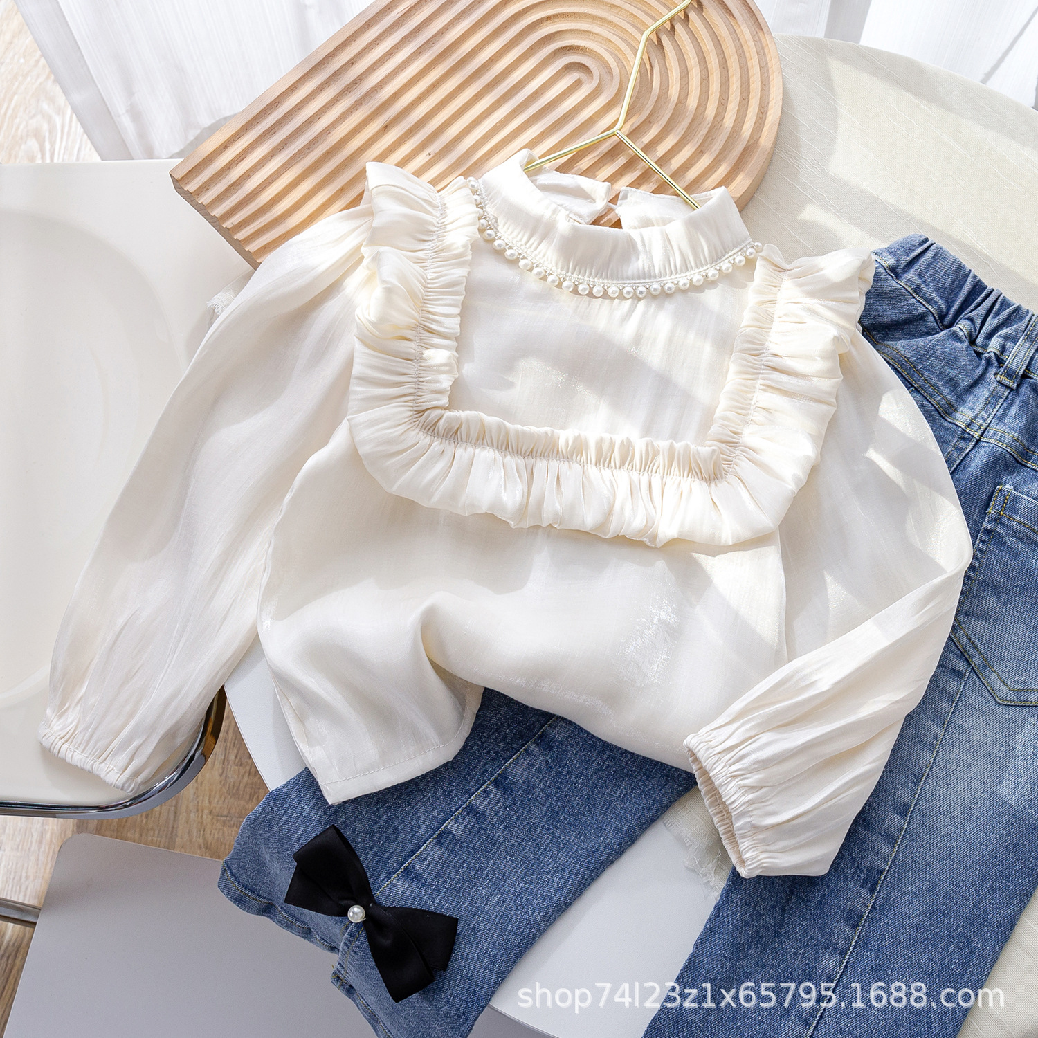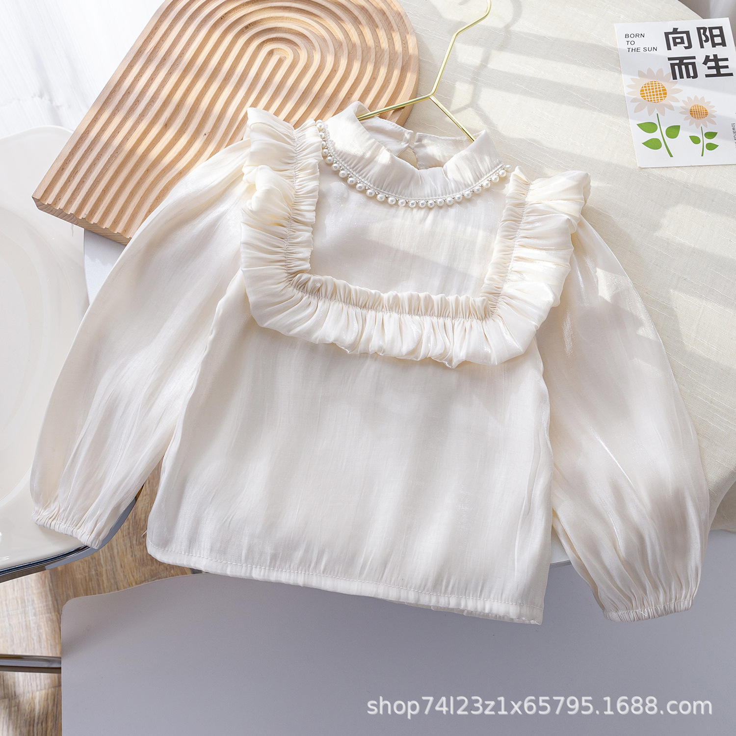 여아 새 셔츠, 패셔너블한 긴팔 아동용 봄, 가을 2024 여아 봄 살구 아우터 상의