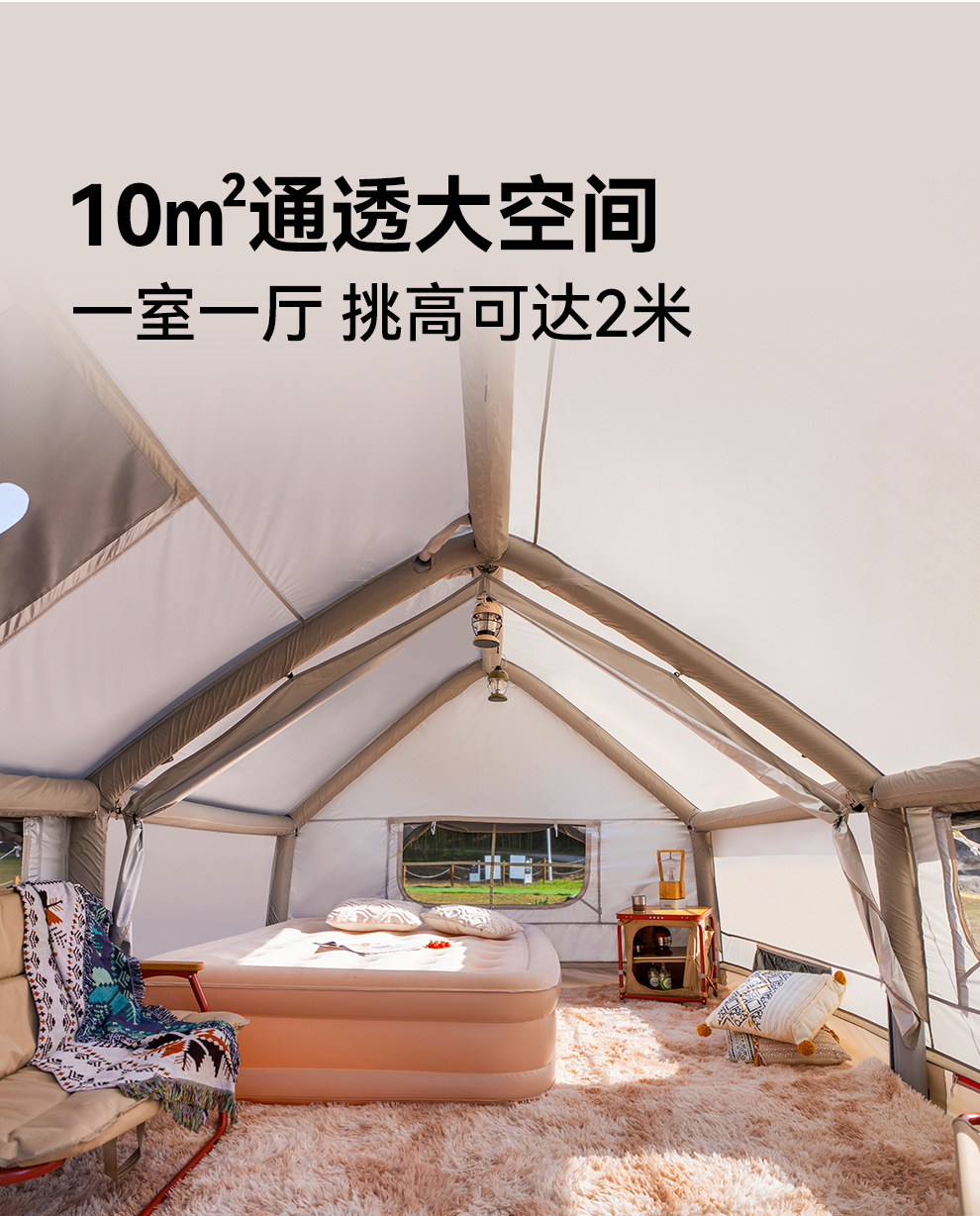 • 10 ㎡ 업그레이드된 원피스 팽창식 텐트 [굴뚝 입 포함]