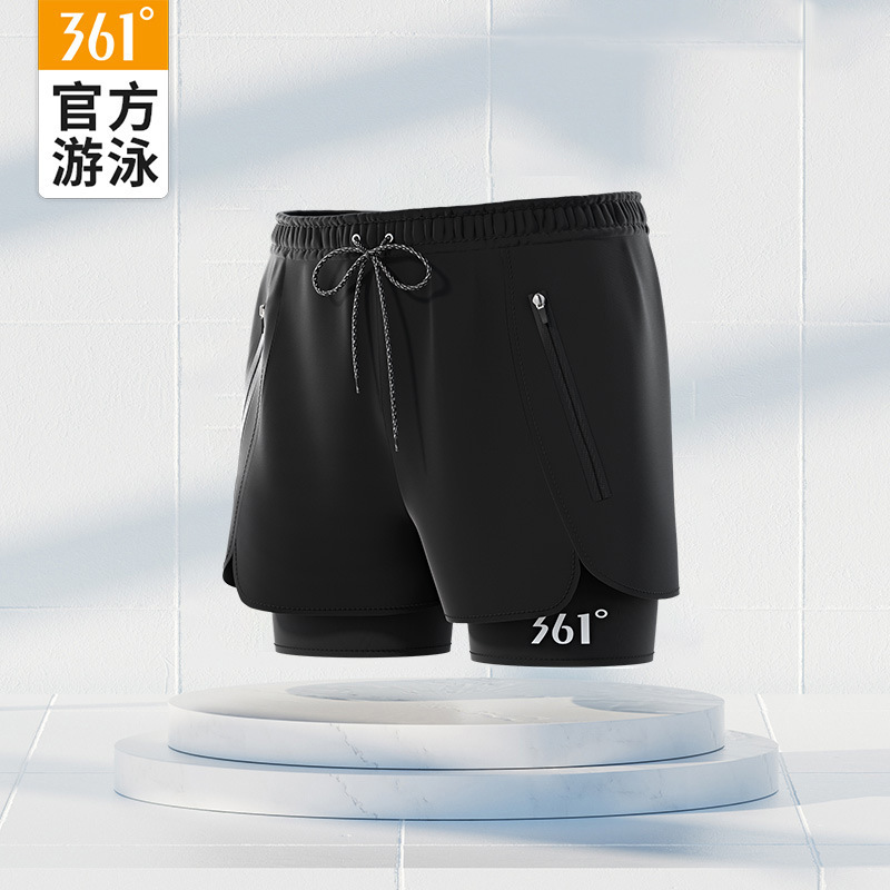 • [더블 레이어 당황 방지 수영 트렁크/비치 팬츠] 블랙 4001