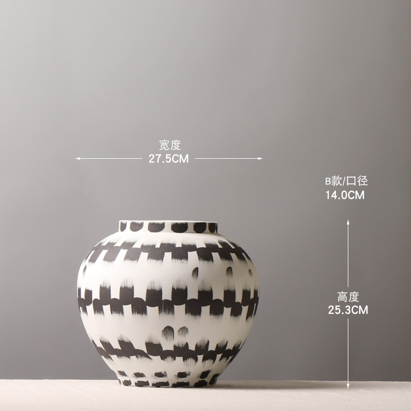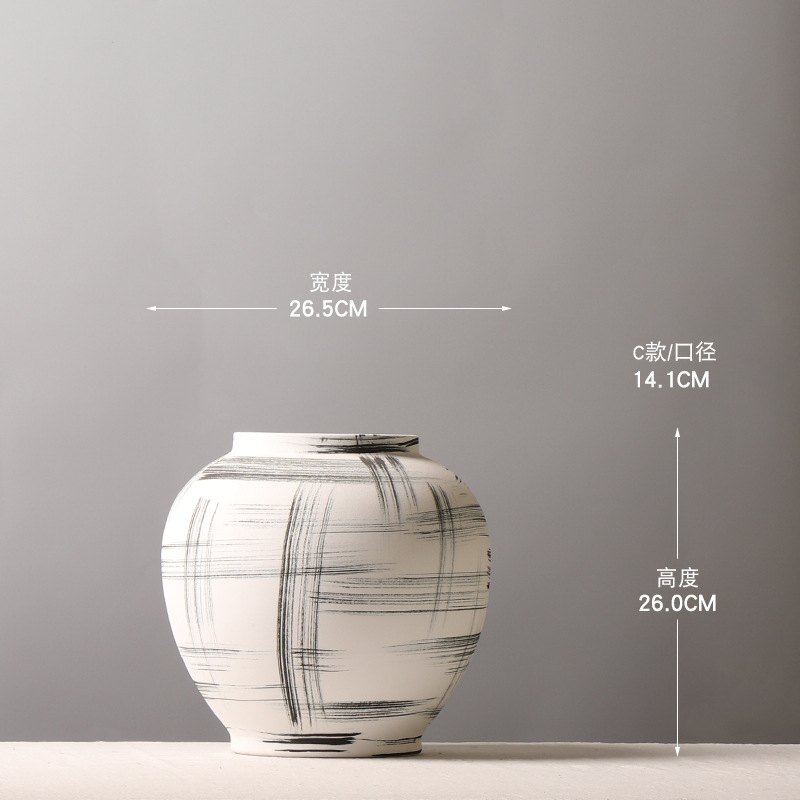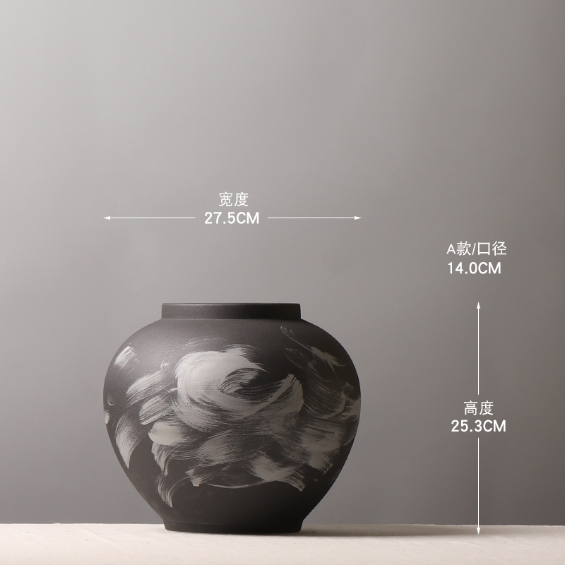 새로운 중국 스타일 세라믹 라운드 항아리 꽃병 손으로 그린 잉크 꽃꽂이 꽃꽂이 거실 꽃꽂이 창조적 인 장식 장식품