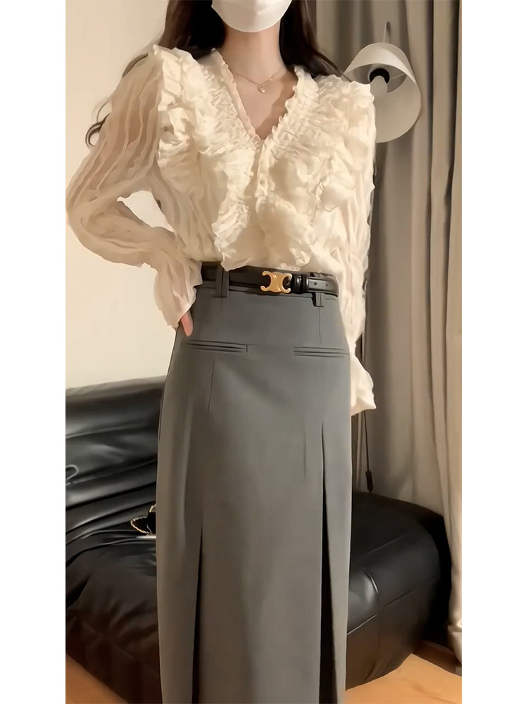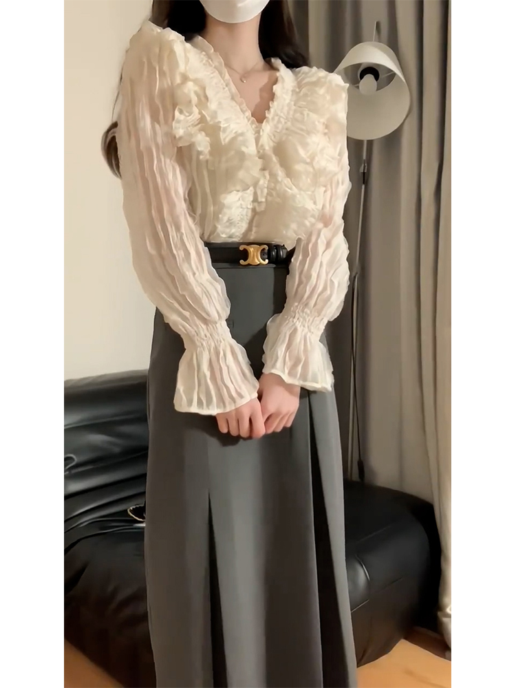 YT99751 2023 이른 가을 새로운 여자의 프랑스 차 세련된 흰색 셔츠 원피스 차 시리즈