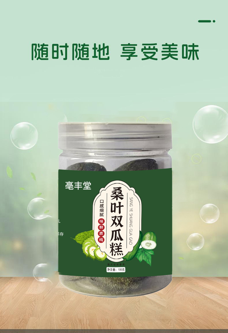 뽕잎과 멜론이 들어간 수제 전통 냉가공 과자 간식 바로 먹을 수 있는 작은 간식 병에 담긴 100g/병
