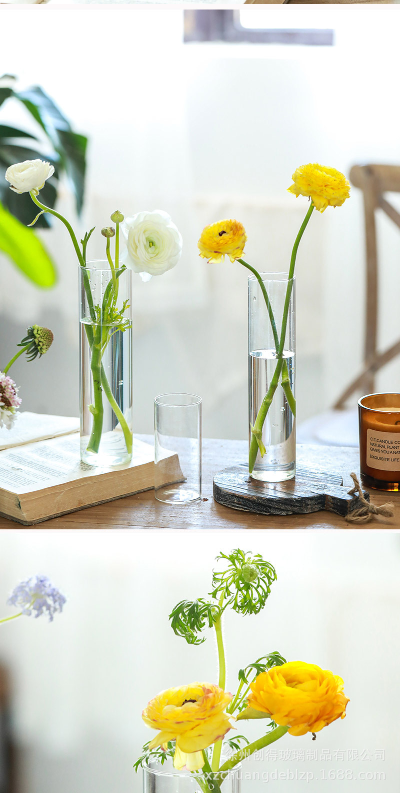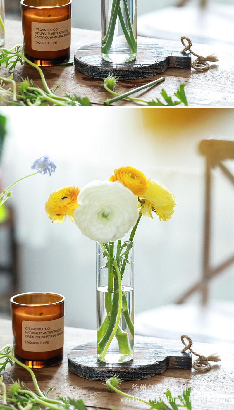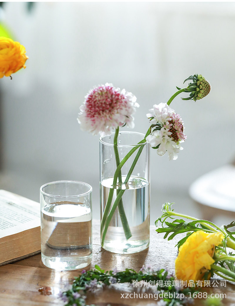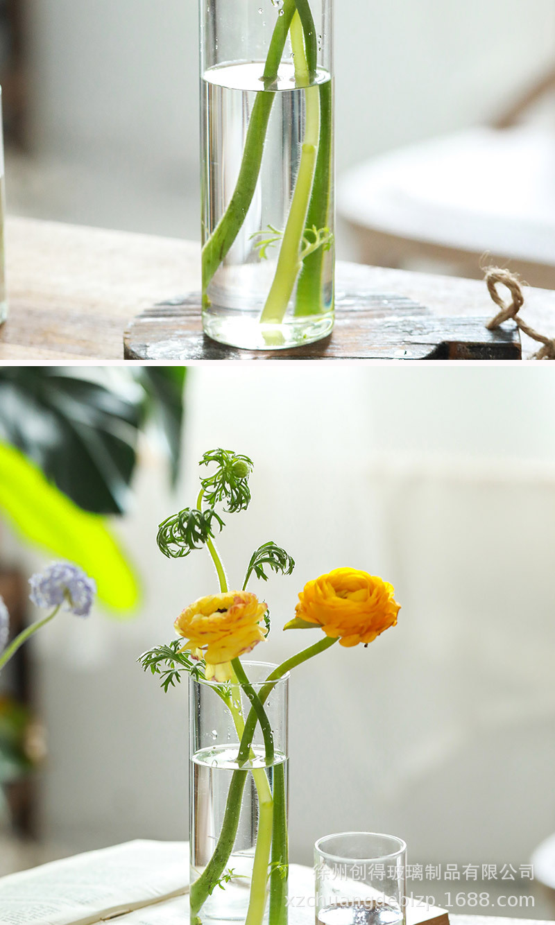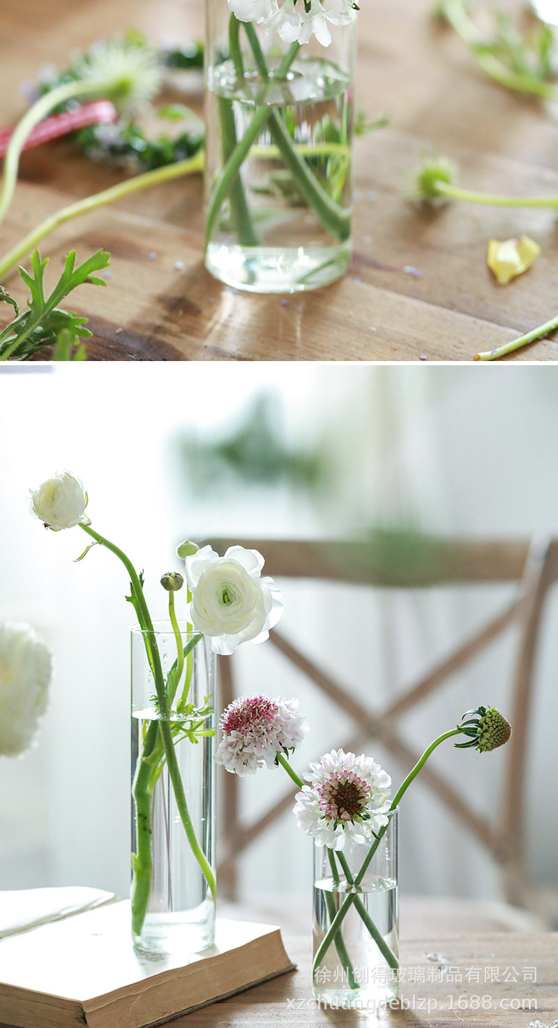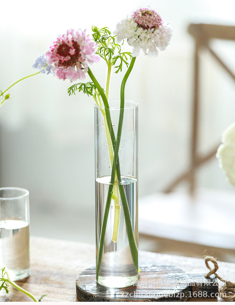 북유럽 유리 꽃병 투명 직선 튜브 수경 식물 꽃 원통형 거실 꽃꽂이 도자기 장식 장식품 도매스토어 가기