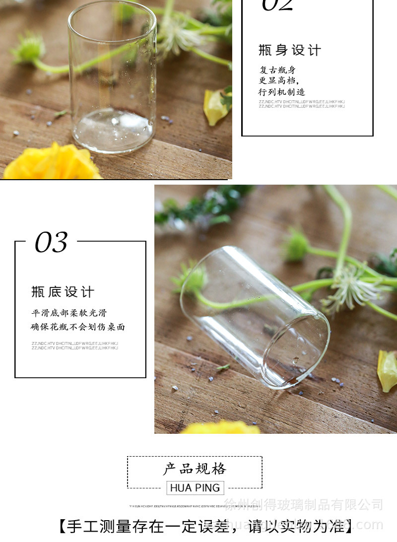 북유럽 유리 꽃병 투명 직선 튜브 수경 식물 꽃 원통형 거실 꽃꽂이 도자기 장식 장식품 도매