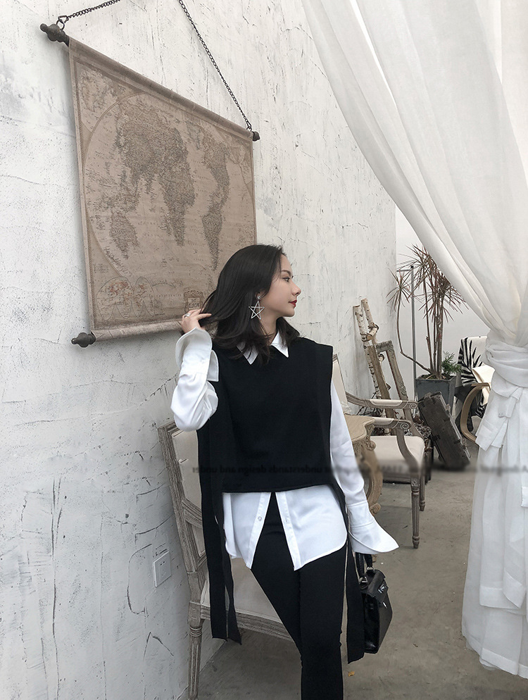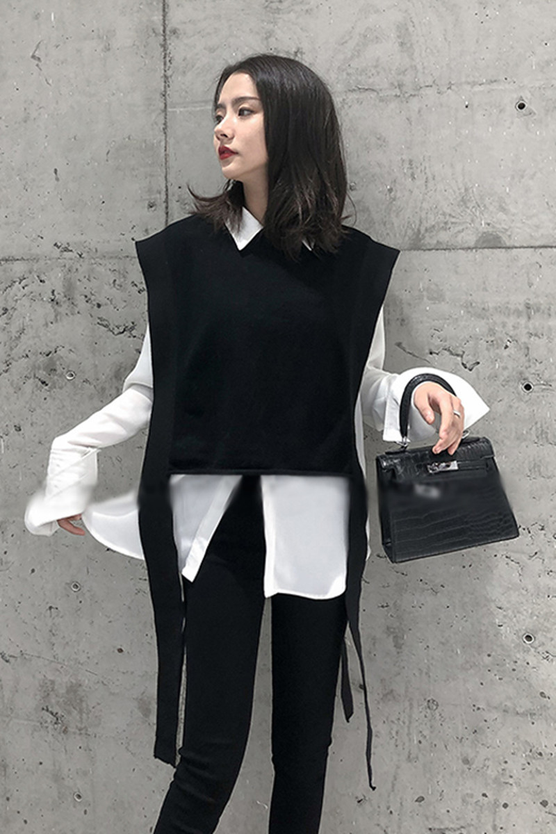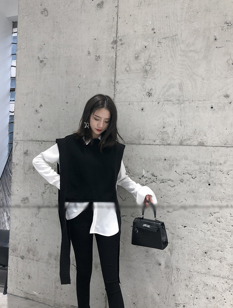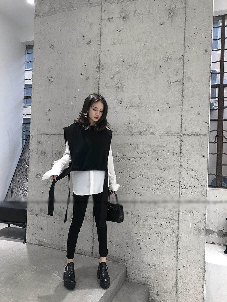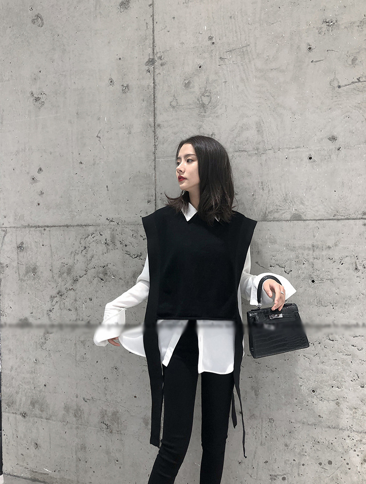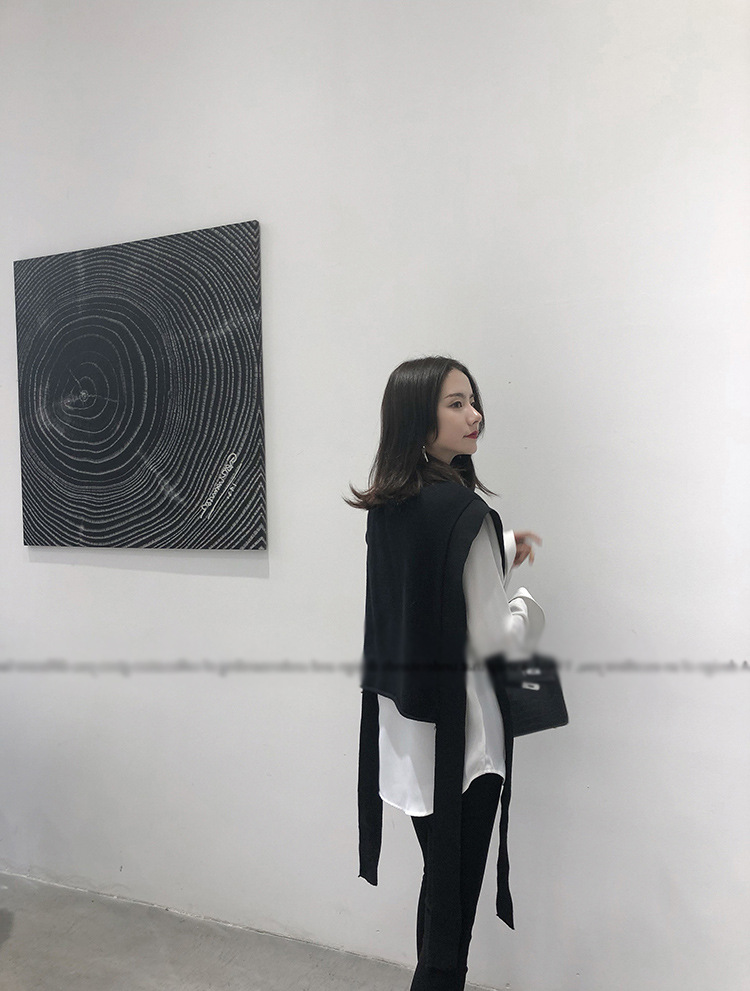 니트 조끼 여성용 봄과 가을 레이스 업 민소매 스웨터 한국식 느슨한 짧은 세련된 울 조끼 트렌디스토어 가기