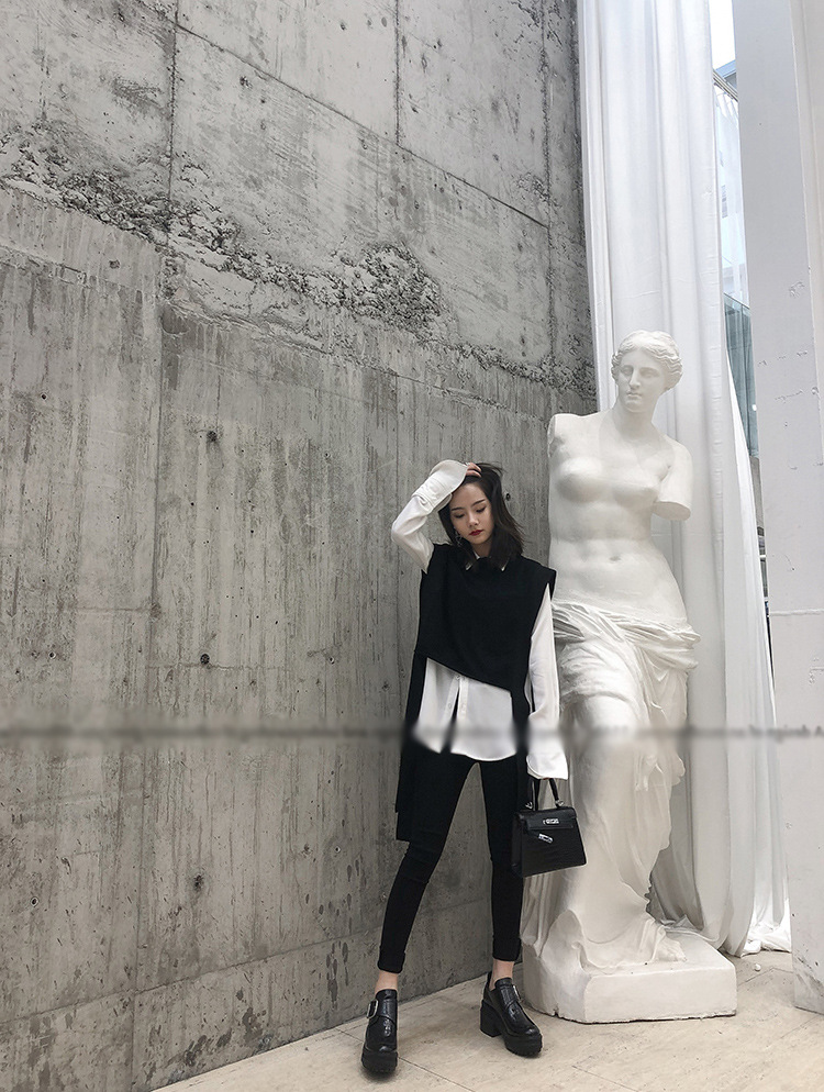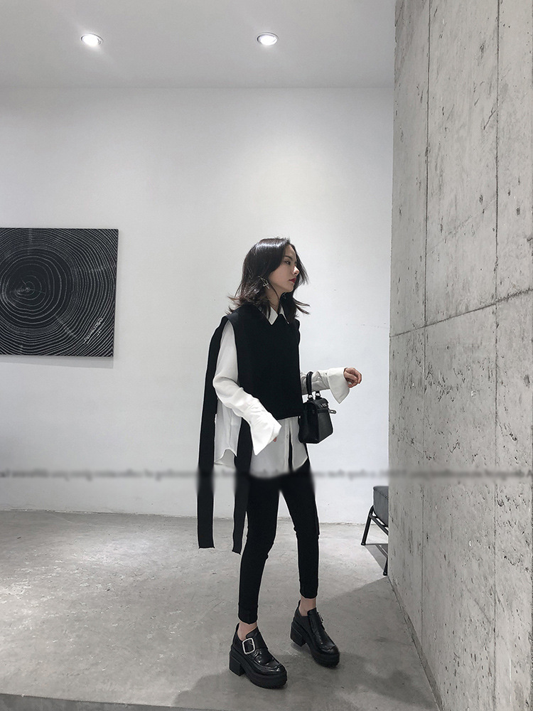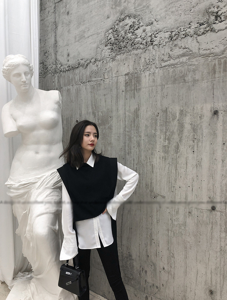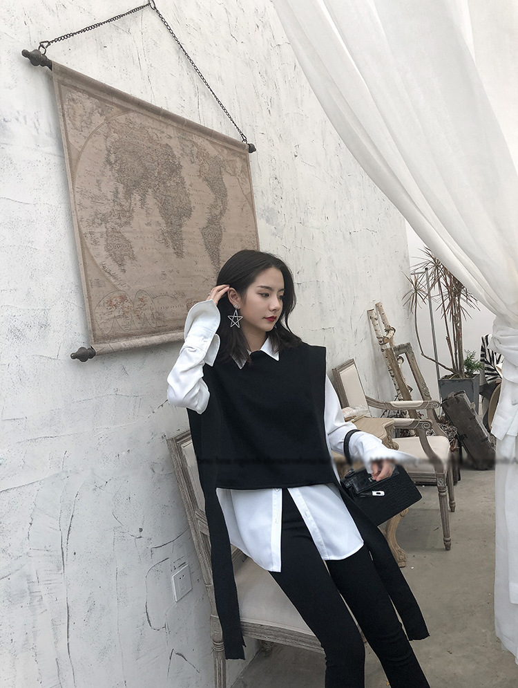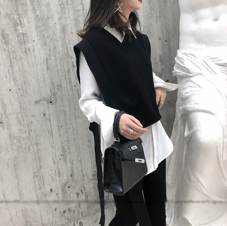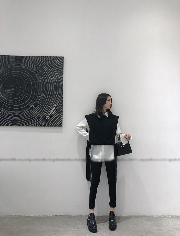 니트 조끼 여성용 봄과 가을 레이스 업 민소매 스웨터 한국식 느슨한 짧은 세련된 울 조끼 트렌디스토어 가기